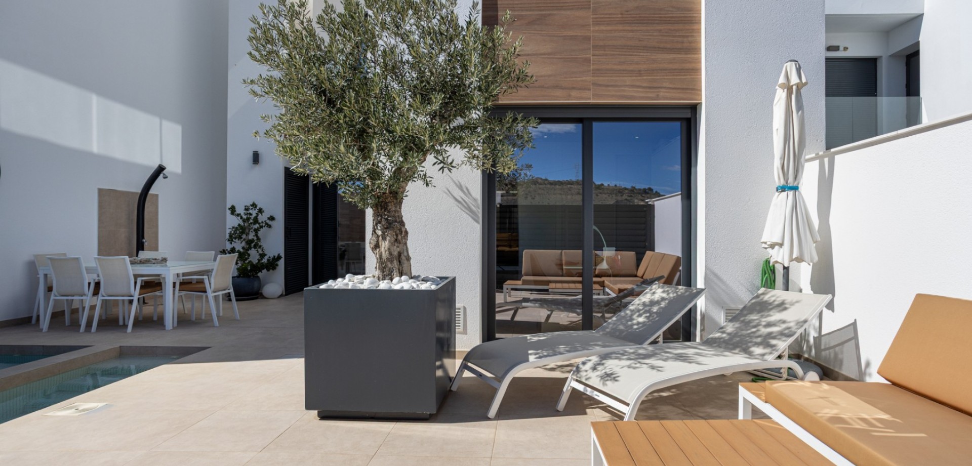 PRACHTIG MODERN RIJTJESHUIS IN BENIJÓFAR: UITZICHT OP HET PARK, LUXUEUS COMFORT EN VOLLEDIG INSTAPKLAAR Gelegen in een van de meest gewilde en snelstgroeiende plaatsen aan de Costa Blanca, biedt dit uitzonderlijke herenhuis, gebouwd in 2018, de perfecte combinatie van modern design, privacy en comfort. De woning ligt op een bevoorrechte locatie tegenover een beschermd natuurgebied en geniet van een panoramisch uitzicht over een rustig, ongerept gebied, wat rust, privacy en een blijvende verbinding met de natuur garandeert. Tegelijkertijd ligt het op loopafstand van het bruisende centrum van Benijófar, met zijn restaurants, cafés, winkels en alle essentiële voorzieningen. De stad heeft ook een charmante school, die wordt beschouwd als een van de beste openbare scholen in de omgeving, waardoor het een ideale locatie is voor gezinnen. Toplocatie met vrij uitzicht Met een beschermd groen park direct tegenover uw woning, zal geen enkele toekomstige bebouwing uw uitzicht kunnen belemmeren. Dit garandeert privacy op lange termijn, een serene omgeving en een onbelemmerd uitzicht – een zeldzaamheid op zo'n centrale locatie. Modern design en moeiteloos comfort Het huis is ontworpen met oog voor stijl en functionaliteit en beschikt over een lichte, open woonkamer die naadloos overgaat in een volledig uitgeruste, moderne keuken. Grote schuifdeuren van glas laten natuurlijk licht binnenstromen en creëren een vloeiende verbinding met het buitenterras en het privé, verwarmde zwembad, dat is uitgerust met een warmtepomp voor plezier het hele jaar door. De woning beschikt over drie volwaardige slaapkamers, elk met een eigen badkamer. Eén kamer is momenteel ingericht als kleedkamer en een andere als kantoor, wat flexibiliteit biedt om aan uw levensstijl aan te passen. Beide kamers kunnen indien nodig eenvoudig worden omgebouwd tot gasten- of familiekamers. Duurzaam en toekomstbestendig Deze woning is zorgvuldig gerenoveerd en voorzien van zonnepanelen en een speciaal laadpunt voor elektrische voertuigen, waardoor modern comfort gecombineerd wordt met energiezuinig wonen. Belangrijkste kenmerken Het ruime dakterras biedt een panoramisch uitzicht en is de ideale plek om te ontspannen of gasten te ontvangen. Andere pluspunten zijn de ruime opbergruimte en het feit dat de woning volledig gemeubileerd wordt verkocht, zoals op de foto's te zien is. Mediterrane woonstijl, direct klaar om in te trekken. Met hoogwaardige afwerking en zorgvuldig onderhoud is dit herenhuis direct klaar om te betrekken. Of u nu op zoek bent naar een permanente woning, een elegant vakantiehuis of een solide investering in een van de meest gewilde gebieden van de Costa Blanca, deze woning biedt alle comfort. Pak gewoon uw koffers uit en begin te genieten van de mediterrane levensstijl. VIDEO OP AANVRAAG BESCHIKBAAR - Stuur ons een aanvraag en we sturen hem je direct toe! Om een bezichtiging (zowel fysiek als virtueel) in te plannen of voor meer informatie, kunt u vandaag nog contact opnemen met Lisa Frain Real Estate Agency.