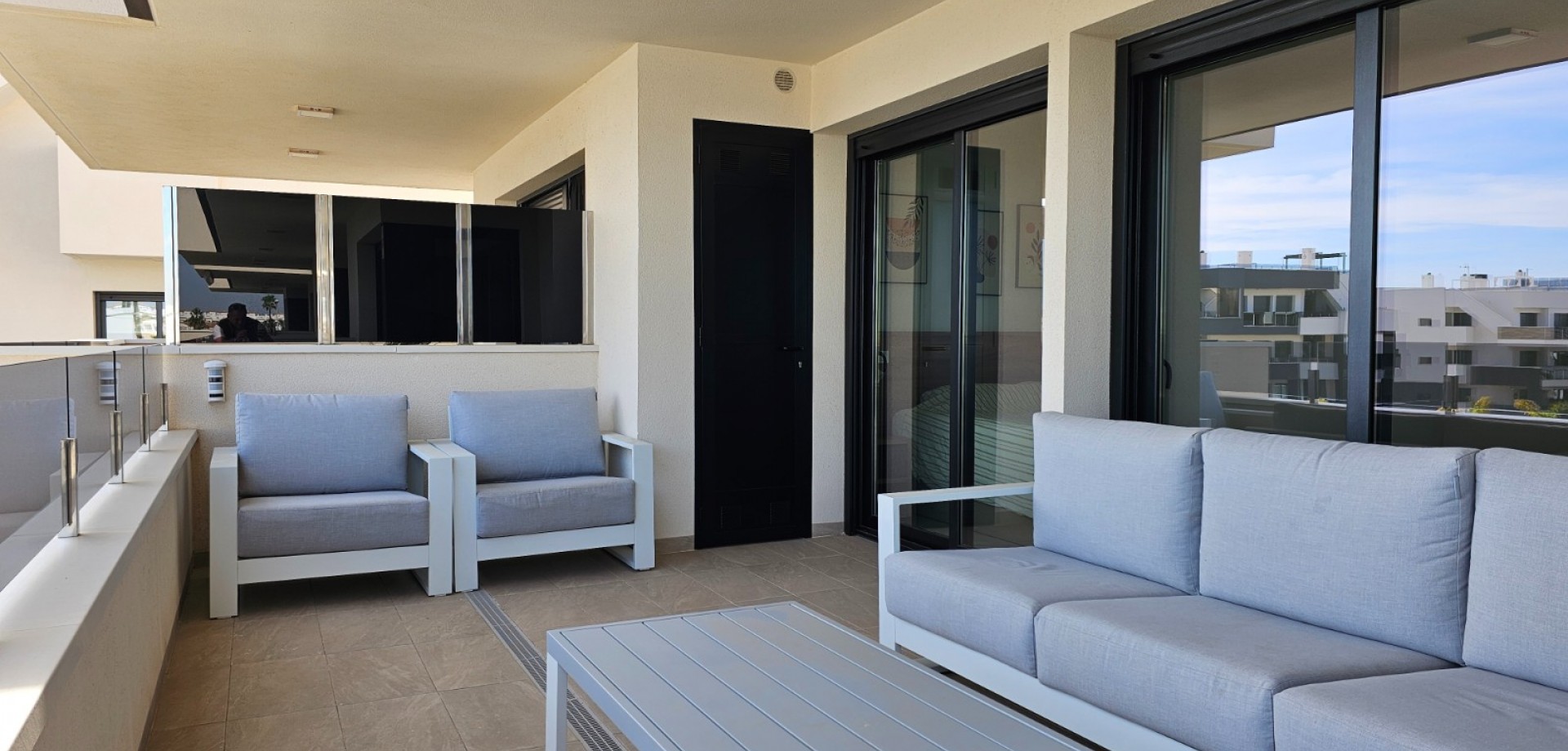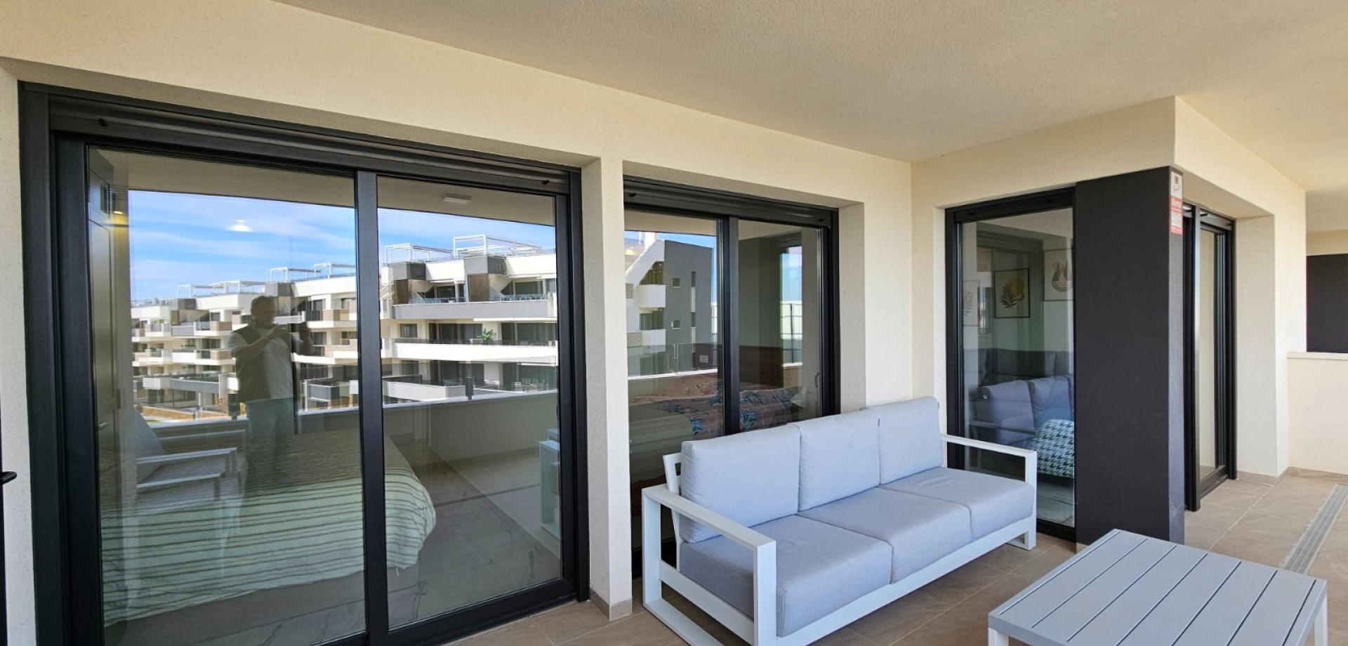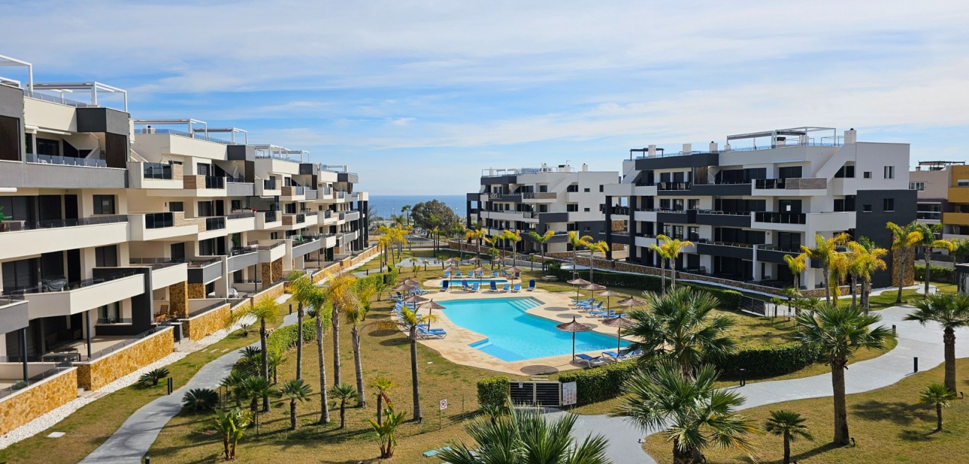 Gelegen in de exclusieve residentie Amanecer Sunrise De Luxe in het geliefde Playa Flamenca, biedt dit prachtige appartement de perfecte combinatie van modern comfort, luxe en een uitstekende ligging aan de Middellandse Zee. Het appartement beschikt over twee ruime slaapkamers en twee stijlvolle badkamers, waarvan één en suite, en werd ontworpen met oog voor licht, ruimte en functionaliteit. De open leefruimte met volledig uitgeruste keuken sluit naadloos aan op het terras, waar u in alle rust kan genieten van het aangename mediterrane klimaat en het buitenleven. De residentie staat bekend om haar hoogwaardige afwerking en uitgebreide voorzieningen, waaronder prachtig aangelegde groene zones, een gemeenschappelijk zwembad, fitnessruimte met sauna en ontspanningsruimtes, wat zorgt voor een exclusieve en comfortabele woonervaring. Bovendien beschikt het appartement over een eigen autostaanplaats en berging, waardoor praktisch comfort gegarandeerd is. Dankzij de uitstekende ligging bevindt u zich op wandelafstand van de zee en het strand, evenals van talrijke winkels, restaurants en gezellige bars, wat deze woning ideaal maakt zowel als permanente woonst, tweede verblijf of investering. Dit appartement is de perfecte keuze voor wie op zoek is naar een stijlvolle en zorgeloze woonervaring onder de Spaanse zon, in een van de meest gegeerde regio’s van de Costa Blanca. Contacteer ons alvast voor meer informatie of een bezichtiging.