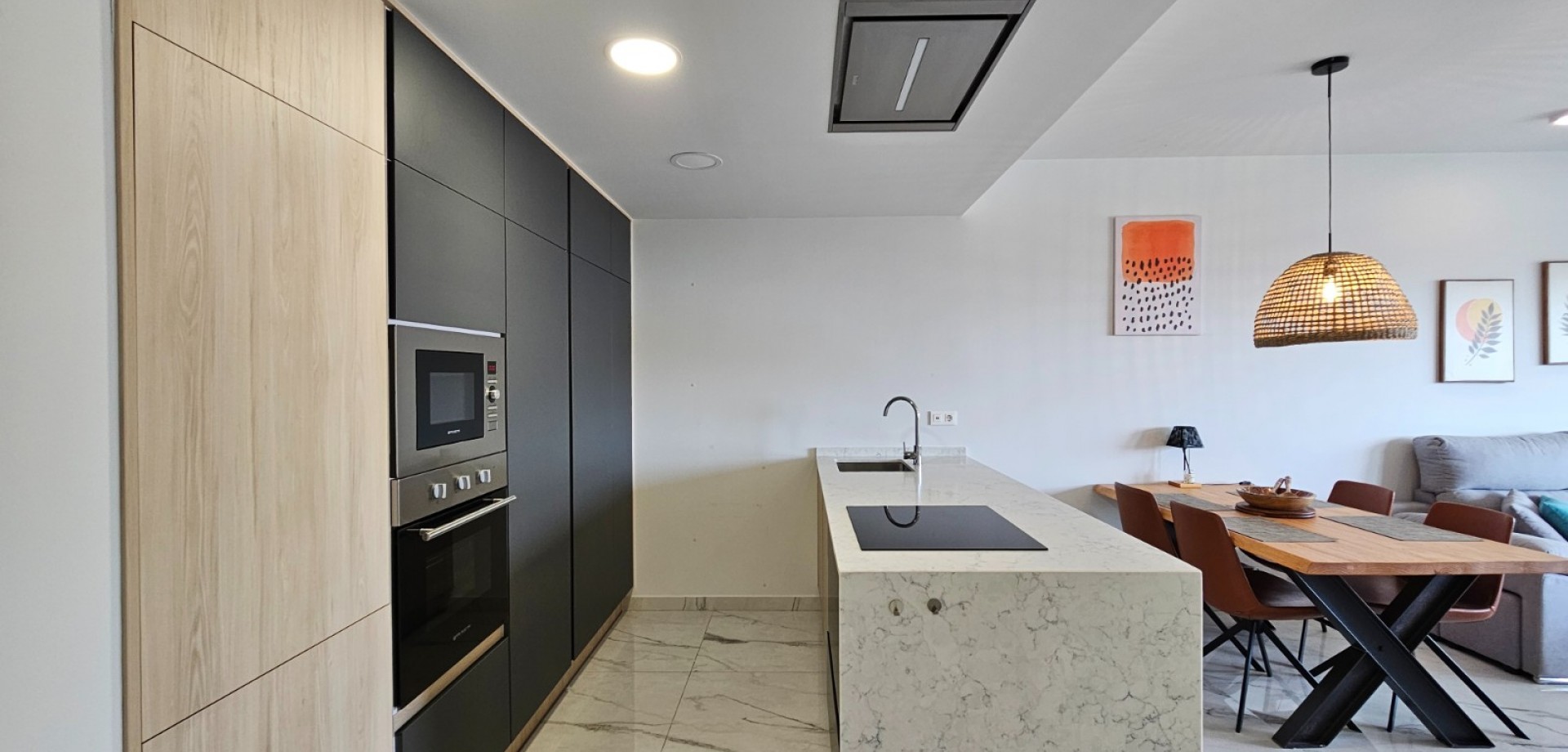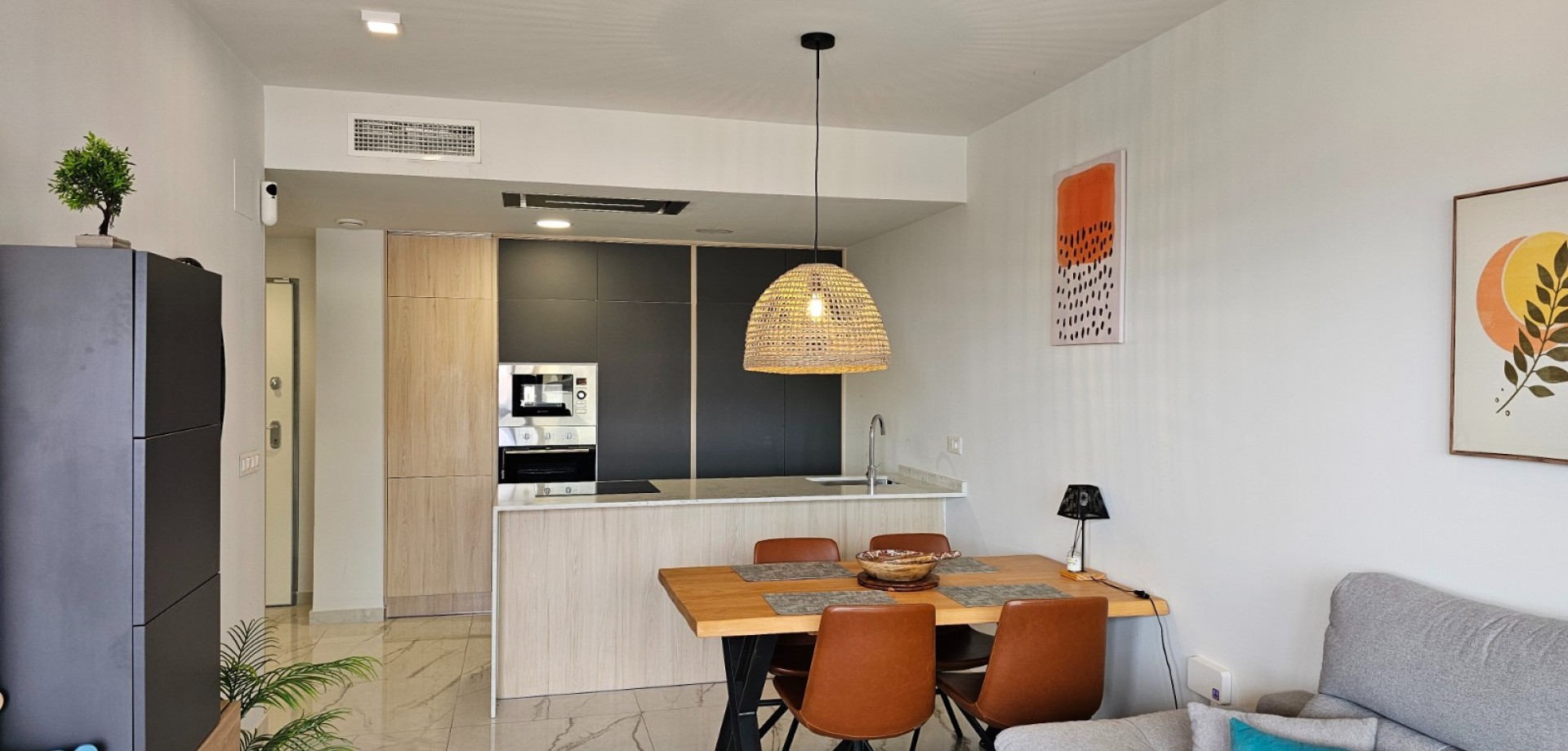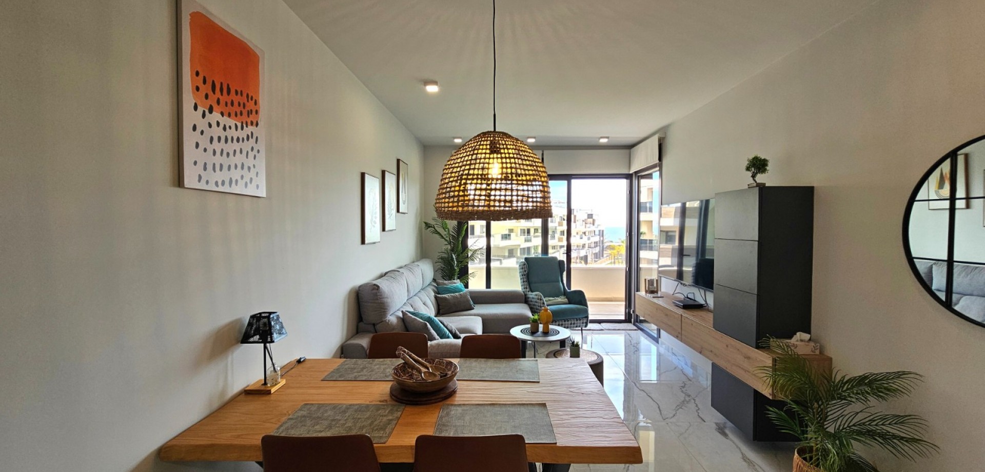 Gelegen in de exclusieve residentie Amanecer Sunrise De Luxe in het geliefde Playa Flamenca, biedt dit prachtige appartement de perfecte combinatie van modern comfort, luxe en een uitstekende ligging aan de Middellandse Zee. Het appartement beschikt over twee ruime slaapkamers en twee stijlvolle badkamers, waarvan één en suite, en werd ontworpen met oog voor licht, ruimte en functionaliteit. De open leefruimte met volledig uitgeruste keuken sluit naadloos aan op het terras, waar u in alle rust kan genieten van het aangename mediterrane klimaat en het buitenleven. De residentie staat bekend om haar hoogwaardige afwerking en uitgebreide voorzieningen, waaronder prachtig aangelegde groene zones, een gemeenschappelijk zwembad, fitnessruimte met sauna en ontspanningsruimtes, wat zorgt voor een exclusieve en comfortabele woonervaring. Bovendien beschikt het appartement over een eigen autostaanplaats en berging, waardoor praktisch comfort gegarandeerd is. Dankzij de uitstekende ligging bevindt u zich op wandelafstand van de zee en het strand, evenals van talrijke winkels, restaurants en gezellige bars, wat deze woning ideaal maakt zowel als permanente woonst, tweede verblijf of investering. Dit appartement is de perfecte keuze voor wie op zoek is naar een stijlvolle en zorgeloze woonervaring onder de Spaanse zon, in een van de meest gegeerde regio’s van de Costa Blanca. Contacteer ons alvast voor meer informatie of een bezichtiging.