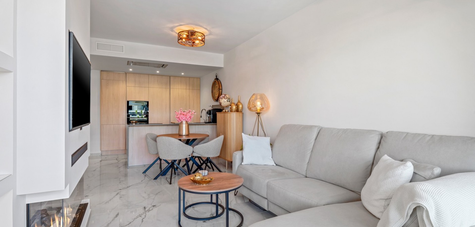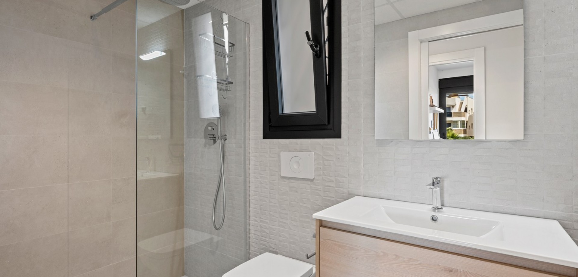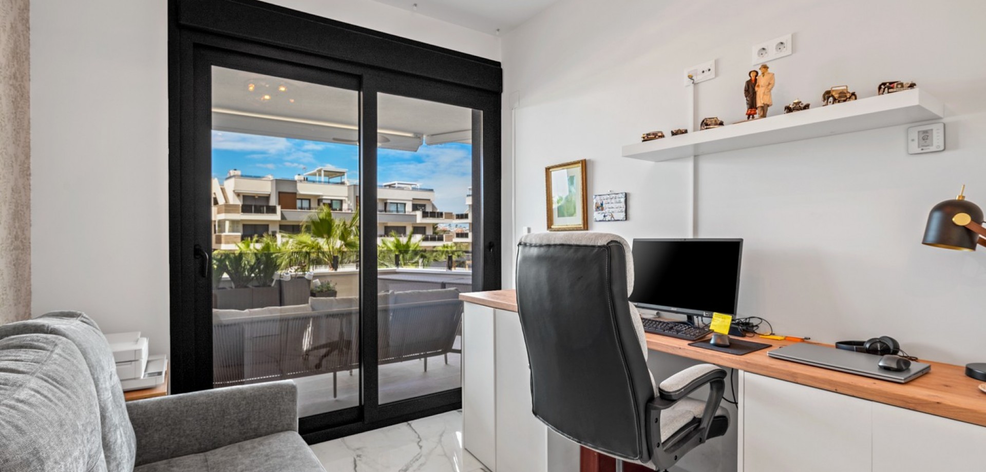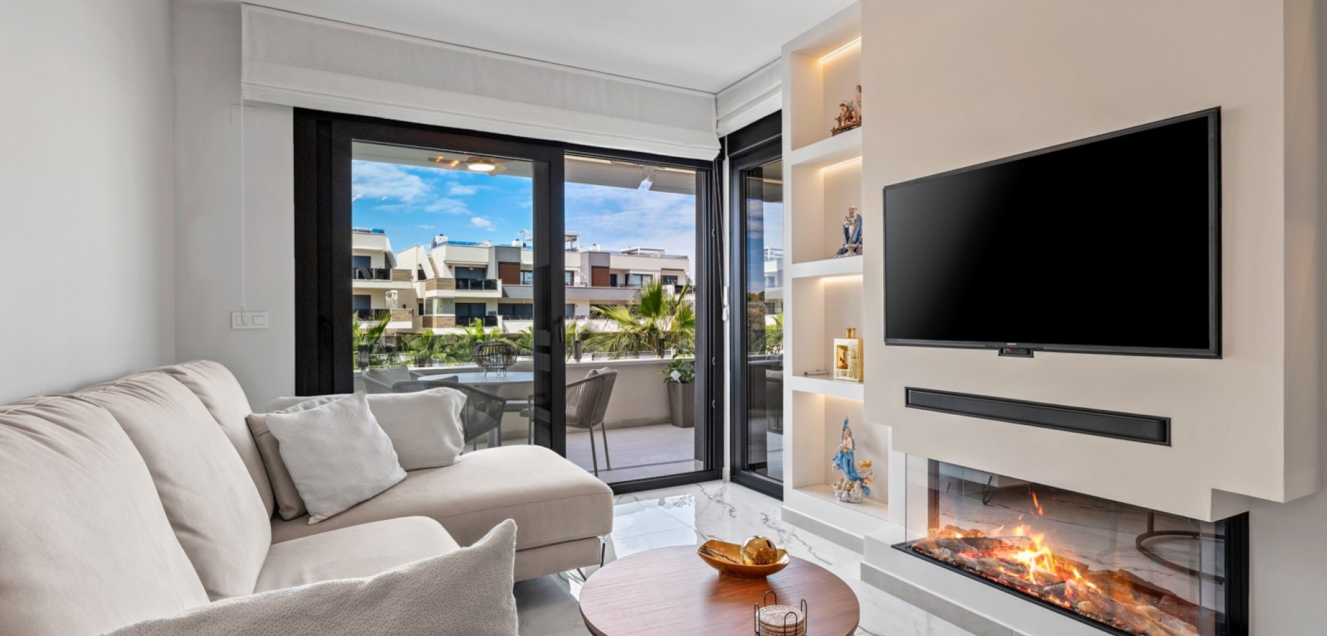 Luxe appartement in Resort Amanecer X, gelegen in de populaire wijk Los Altos in Orihuela Costa. Dit stijlvolle en eigentijdse appartement werd opgeleverd in 2024 en vormt een uitstekende kans zowel als vakantieverblijf, permanente woning of investering met een sterke verhuurpotentie. Het appartement beschikt over een lichte, open woonkamer met keuken en eetgedeelte, ontworpen om optimaal gebruik te maken van de ruimte en het natuurlijke licht. Grote ramen zorgen voor een luchtige sfeer en geven direct toegang tot een ruim privéterras, waardoor binnen en buiten naadloos in elkaar overgaan. De keuken is volledig uitgerust met moderne apparaten en afgewerkt in een strakke, eigentijdse stijl, die moeiteloos aansluit bij de leefruimte. Er zijn twee ruime slaapkamers, beide voorzien van inbouwkasten en gesitueerd aan de terraszijde van het appartement, plus twee moderne badkamers die afgewerkt zijn op hoog niveau. Het appartement wordt volledig gemeubileerd opgeleverd en heeft een totale oppervlakte van 65 m², met een praktische en uitgebalanceerde indeling. Een van de opvallendste kenmerken is het royale privéterras van maar liefst meer dan 25 m², met uitzicht op de aangelegde tuinen en het gemeenschappelijke zwembad. Dankzij de zuidwestelijke ligging geniet het terras van uitstekende zon, wat het ideaal maakt om te ontspannen of buiten te eten. Het appartement bevindt zich op de eerste verdieping van een gebouw nummer 8 met lift en beschikt over een ondergrondse parkeerplaats en een privéberging. Het is uitgerust met airconditioning, een Airzone-klimaatregelsysteem, vloerverwarming in de badkamers en elektrische rolluiken, wat zorgt voor het hele jaar door comfort. Het appartement wordt opgeleverd in perfecte staat, volledig gemeubileerd en klaar om in te trekken! Bewoners van Amanecer X genieten van een resortachtige omgeving met toegang tot een groot gemeenschappelijk zwembad, een peuterbad, een volledig uitgeruste fitnessruimte, en ook een jacuzzi en sauna. Dit alles wordt omringd door prachtig onderhouden tropische tuinen met aangepaste buitentoegang voor mensen met een beperkte mobiliteit. De locatie is bijzonder praktisch: restaurants, cafés en supermarkten liggen op loopafstand, en La Zenia Boulevard bevindt zich op slechts een paar minuten rijden. Voor golfliefhebbers biedt de omgeving een ruime keuze aan nabijgelegen banen, waaronder Villamartín Golf op slechts 5 minuten, Real Club de Golf Campoamor en Las Ramblas Golf op ongeveer 10 minuten, en de prestigieuze Las Colinas Golf & Country Club op ongeveer 15 minuten van het appartement. De zandstranden van Orihuela Costa, zoals La Zenia Beach, Playa Flamenca, Cabo Roig en Campoamor, liggen allemaal op maximaal 10 minuten rijden. Het appartement ligt ideaal tussen twee grote luchthavens en biedt uitstekende verbindingen: Alicante Airport ligt op ongeveer 45 minuten en Murcia International Airport op circa 35 tot 40 minuten rijden.