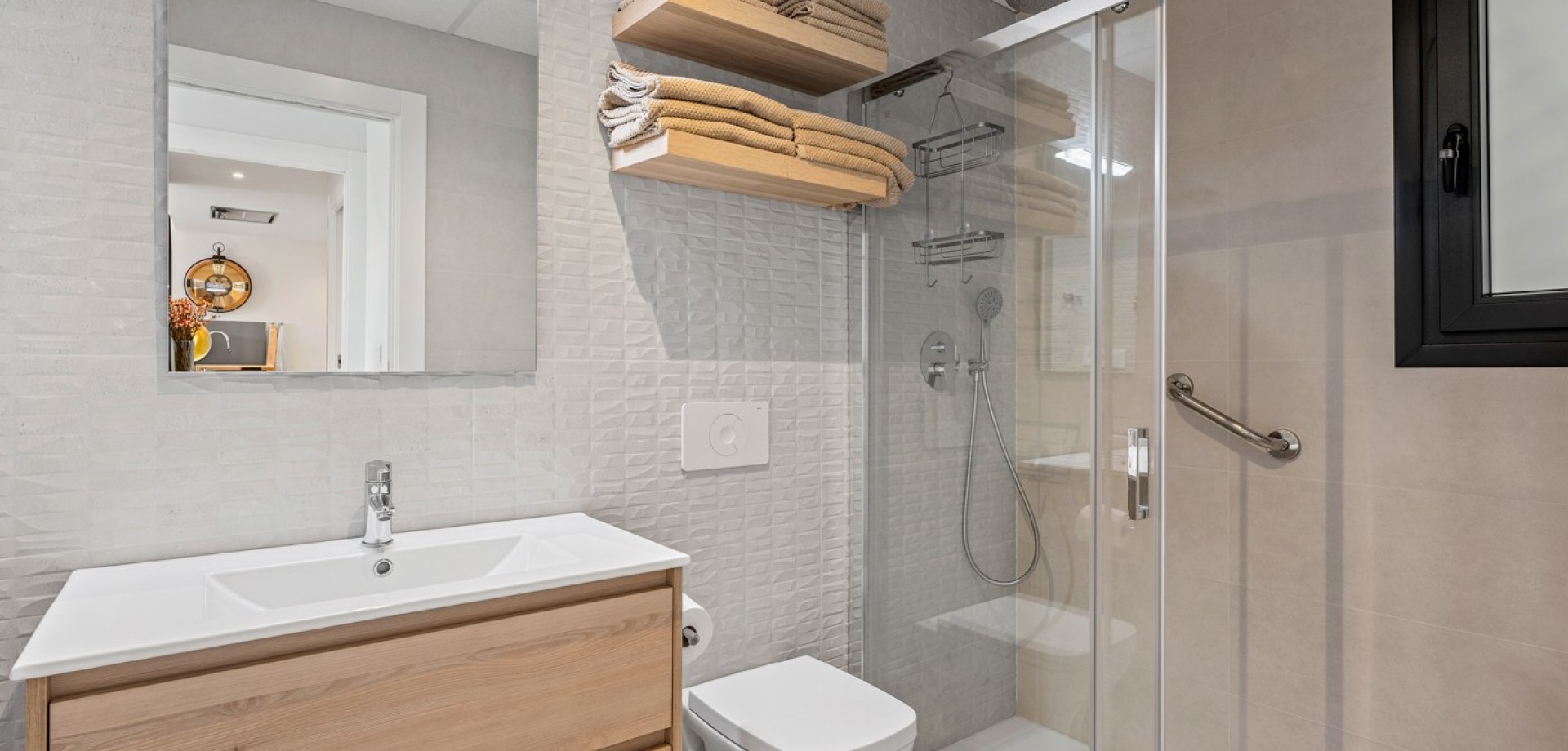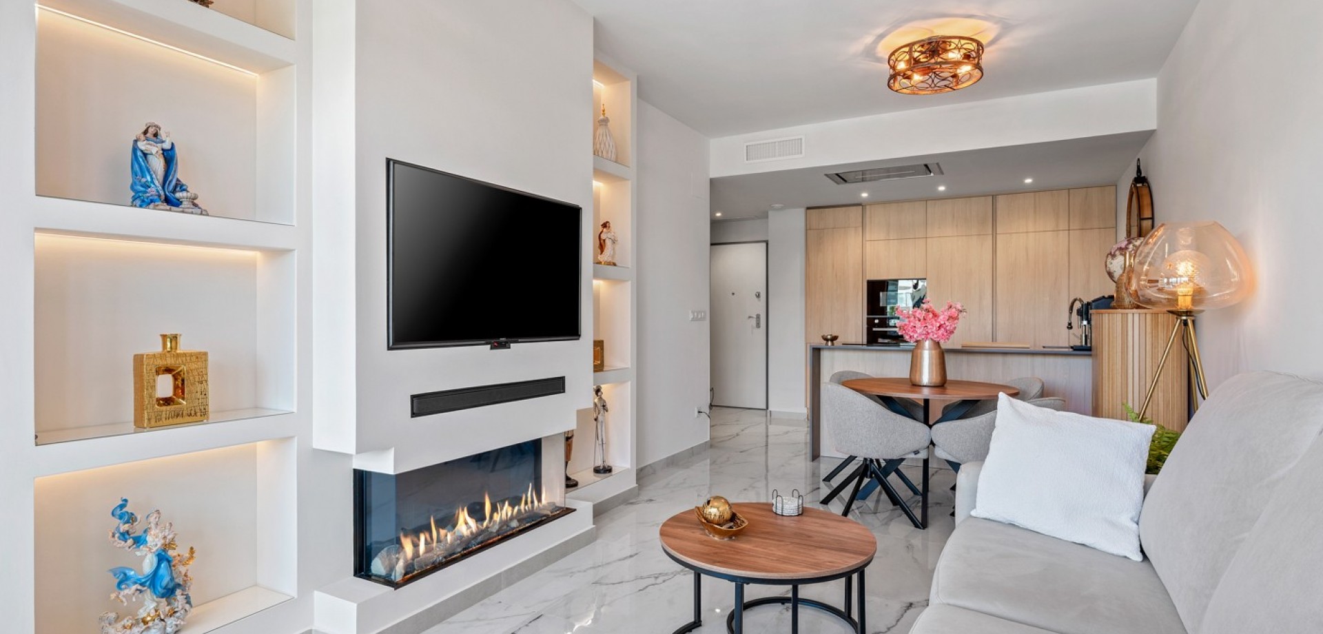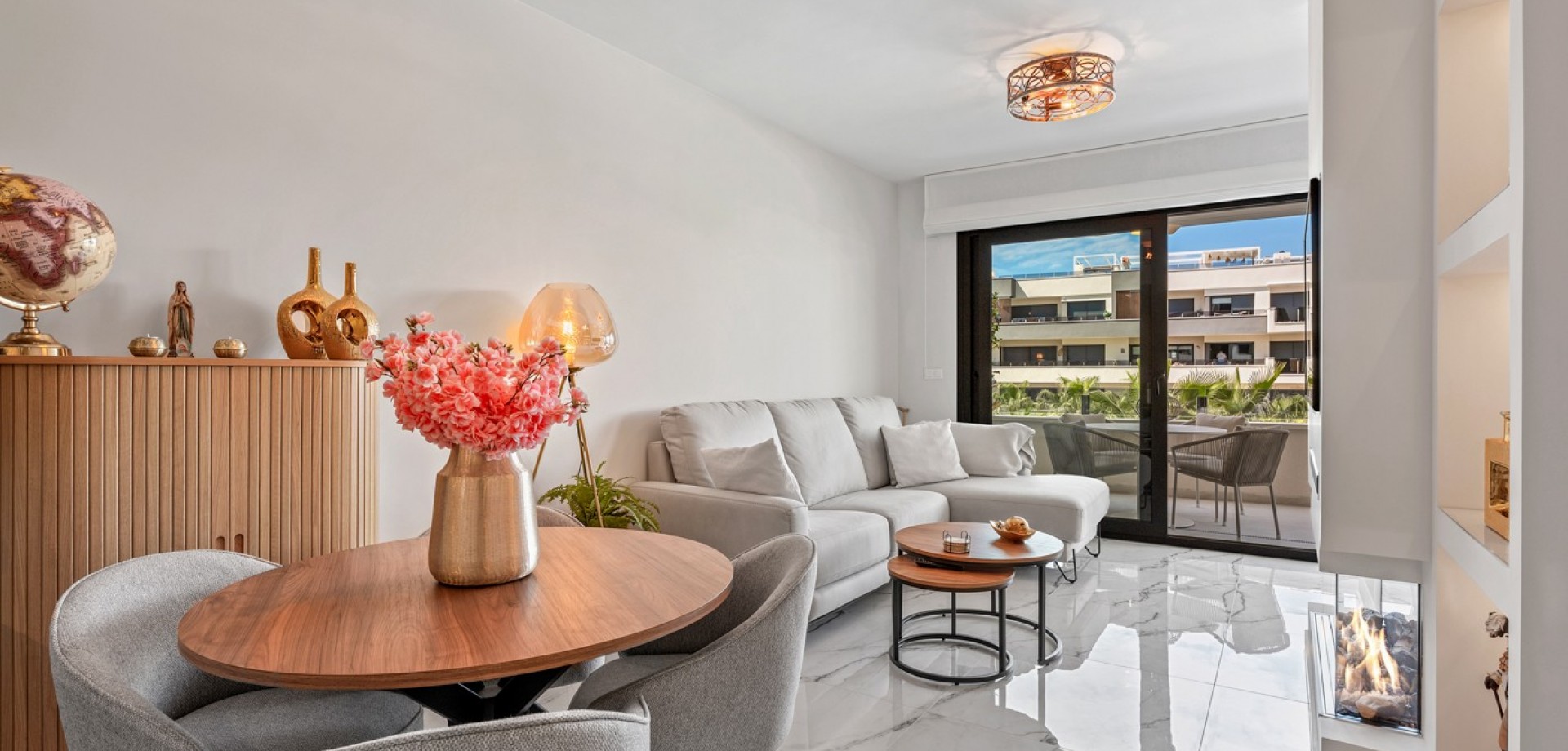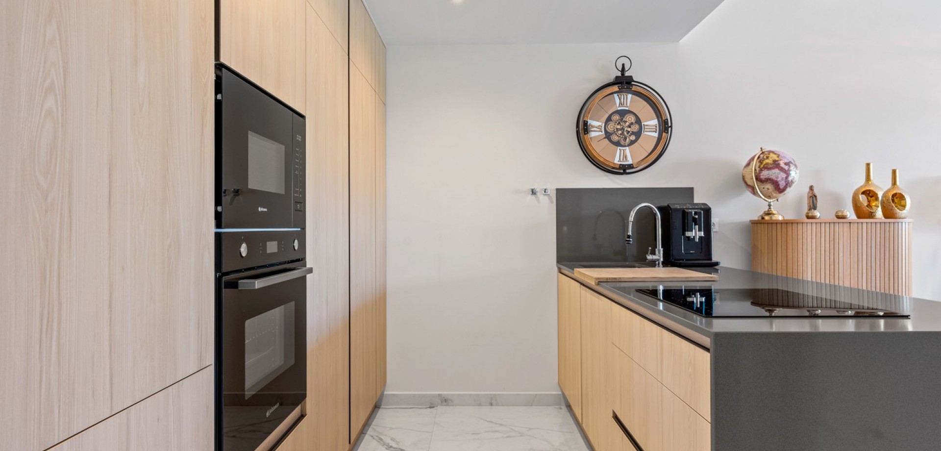Luxe appartement in Resort Amanecer X, gelegen in de populaire wijk Los Altos in Orihuela Costa. Dit stijlvolle en eigentijdse appartement werd opgeleverd in 2024 en vormt een uitstekende kans zowel als vakantieverblijf, permanente woning of investering met een sterke verhuurpotentie. Het appartement beschikt over een lichte, open woonkamer met keuken en eetgedeelte, ontworpen om optimaal gebruik te maken van de ruimte en het natuurlijke licht. Grote ramen zorgen voor een luchtige sfeer en geven direct toegang tot een ruim privéterras, waardoor binnen en buiten naadloos in elkaar overgaan. De keuken is volledig uitgerust met moderne apparaten en afgewerkt in een strakke, eigentijdse stijl, die moeiteloos aansluit bij de leefruimte. Er zijn twee ruime slaapkamers, beide voorzien van inbouwkasten en gesitueerd aan de terraszijde van het appartement, plus twee moderne badkamers die afgewerkt zijn op hoog niveau. Het appartement wordt volledig gemeubileerd opgeleverd en heeft een totale oppervlakte van 65 m², met een praktische en uitgebalanceerde indeling. Een van de opvallendste kenmerken is het royale privéterras van maar liefst meer dan 25 m², met uitzicht op de aangelegde tuinen en het gemeenschappelijke zwembad. Dankzij de zuidwestelijke ligging geniet het terras van uitstekende zon, wat het ideaal maakt om te ontspannen of buiten te eten. Het appartement bevindt zich op de eerste verdieping van een gebouw nummer 8 met lift en beschikt over een ondergrondse parkeerplaats en een privéberging. Het is uitgerust met airconditioning, een Airzone-klimaatregelsysteem, vloerverwarming in de badkamers en elektrische rolluiken, wat zorgt voor het hele jaar door comfort. Het appartement wordt opgeleverd in perfecte staat, volledig gemeubileerd en klaar om in te trekken! Bewoners van Amanecer X genieten van een resortachtige omgeving met toegang tot een groot gemeenschappelijk zwembad, een peuterbad, een volledig uitgeruste fitnessruimte, en ook een jacuzzi en sauna. Dit alles wordt omringd door prachtig onderhouden tropische tuinen met aangepaste buitentoegang voor mensen met een beperkte mobiliteit. De locatie is bijzonder praktisch: restaurants, cafés en supermarkten liggen op loopafstand, en La Zenia Boulevard bevindt zich op slechts een paar minuten rijden. Voor golfliefhebbers biedt de omgeving een ruime keuze aan nabijgelegen banen, waaronder Villamartín Golf op slechts 5 minuten, Real Club de Golf Campoamor en Las Ramblas Golf op ongeveer 10 minuten, en de prestigieuze Las Colinas Golf & Country Club op ongeveer 15 minuten van het appartement. De zandstranden van Orihuela Costa, zoals La Zenia Beach, Playa Flamenca, Cabo Roig en Campoamor, liggen allemaal op maximaal 10 minuten rijden. Het appartement ligt ideaal tussen twee grote luchthavens en biedt uitstekende verbindingen: Alicante Airport ligt op ongeveer 45 minuten en Murcia International Airport op circa 35 tot 40 minuten rijden.
