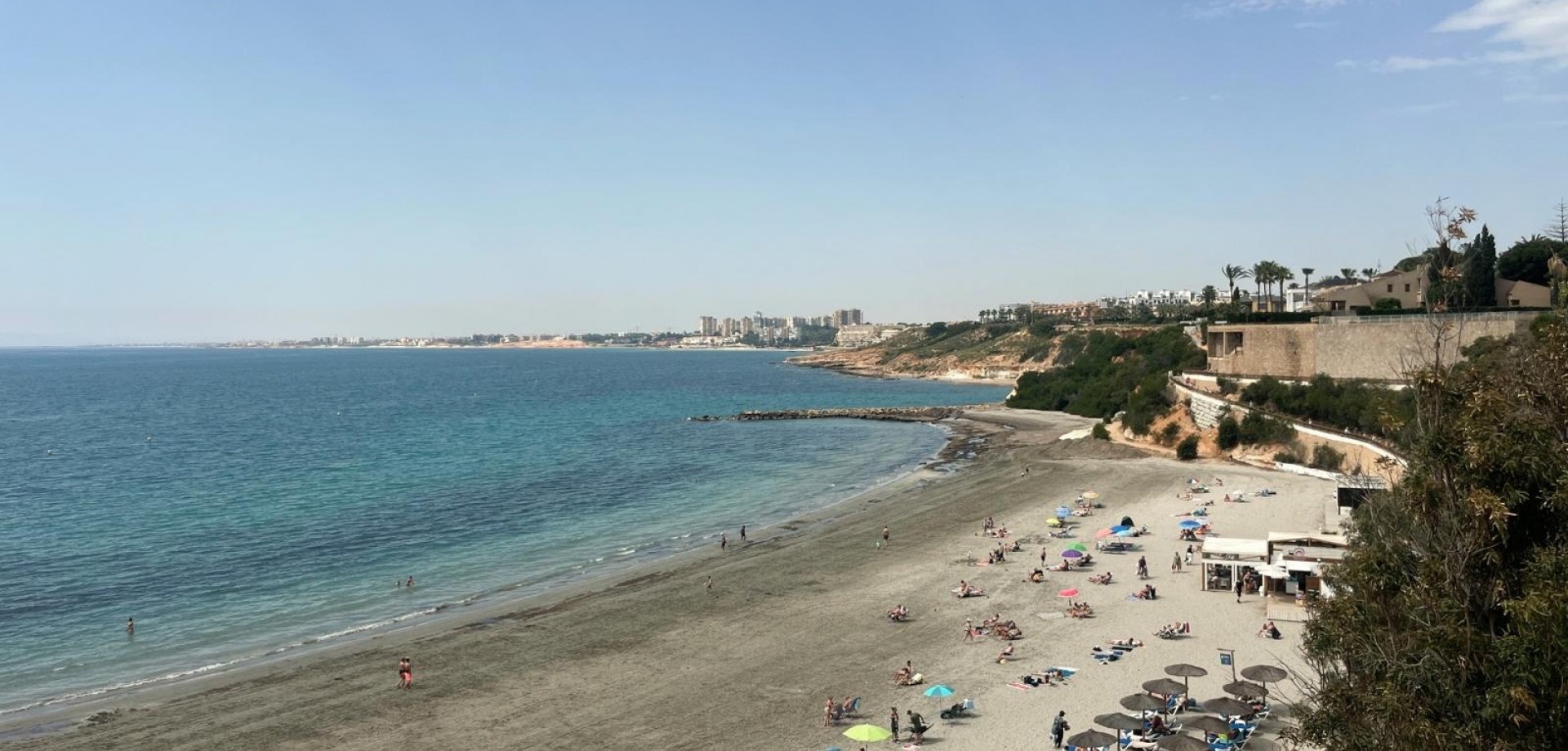Dit goed gepresenteerde appartement is gelegen nabij de stranden van Cabo Roig en biedt een praktische indeling met aangename uitzichten op de gemeenschappelijke ruimtes. De woning beschikt over een lichte woonkamer met open haard, met dubbele deuren die uitkomen op een overdekt terras, groot genoeg voor een tafel, stoelen en een gezellige zithoek. Vanuit hier geniet het appartement van uitzicht op de gemeenschappelijke zwembaden en aangelegde tuinen, die ook een buiten douche ruimte omvatten. Er zijn twee tweepersoons slaapkamers, beide met airconditioning en inbouwkasten. De hoofdslaapkamer kijkt uit op het terras, terwijl de tweede slaapkamer profiteert van dubbele deuren die leiden naar een klein privébalkon. Het appartement omvat een gezinsbadkamer, uitgerust met een bad en overhead douche, bidet en standaard sanitaire voorzieningen. Daarnaast is er een volledig ingerichte onafhankelijke keuken, samen met een separate bijkeuken die is uitgerust met een wastafel, een boiler voor warm water en aansluitingen voor een wasmachine. De woning is ideaal gelegen binnen handbereik van lokale voorzieningen en slechts een korte afstand van de stranden van Cabo Roig, waardoor het geschikt is als een vakantiewoning, permanente residentie of verhuurinvestering aan de Costa Blanca.
