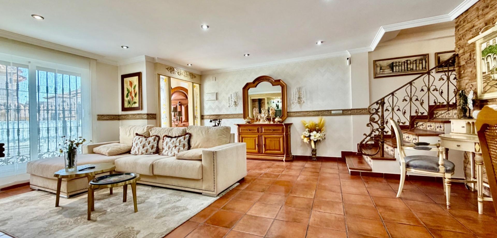 Prachtige halfvrijstaande villa (geschakeld aan één buurwoning) gelegen in het gewilde gebied La Zenia, op slechts 7 minuten van het strand en 4 minuten van La Zenia Boulevard. De woning heeft een uitstekende ligging met alle voorzieningen in de buurt, waaronder bars, restaurants en winkels op slechts 2 minuten loopafstand.~~De villa beschikt over 4 ruime slaapkamers en 4 badkamers, ontworpen voor comfort en functionaliteit, ideaal als permanente woning of luxe vakantiewoning.~~De woning biedt een privé verwarmd zwembad en een overdekte parkeerplaats.~~Binnen is de villa zeer gezellig en uitstekend onderhouden, met onder andere:~~* Volledig gemeubileerd~* Airconditioning in elke kamer~* Oliegestookte verwarming~* Ruime opbergruimtes~~De woning verkeert in uitstekende staat, is zeer goed onderhouden en direct instapklaar.~~Een perfecte combinatie van comfort, locatie en levensstijl in een van de meest gewilde gebieden van de Costa Blanca.