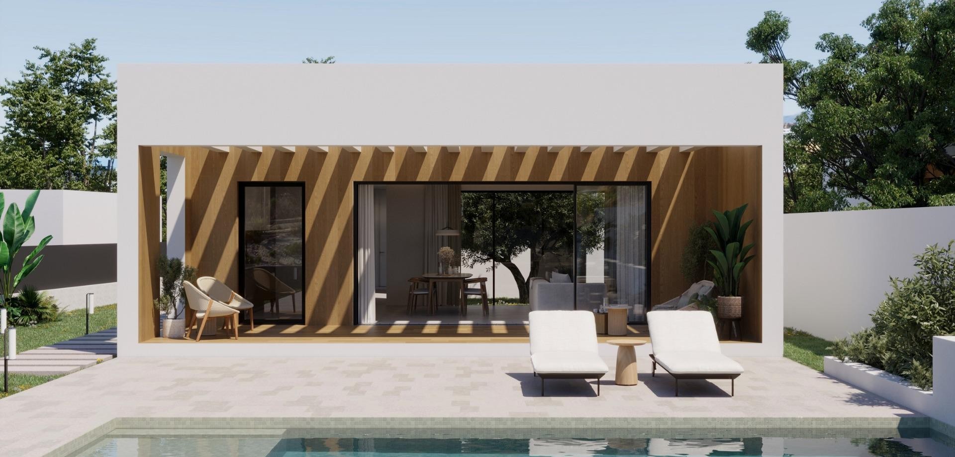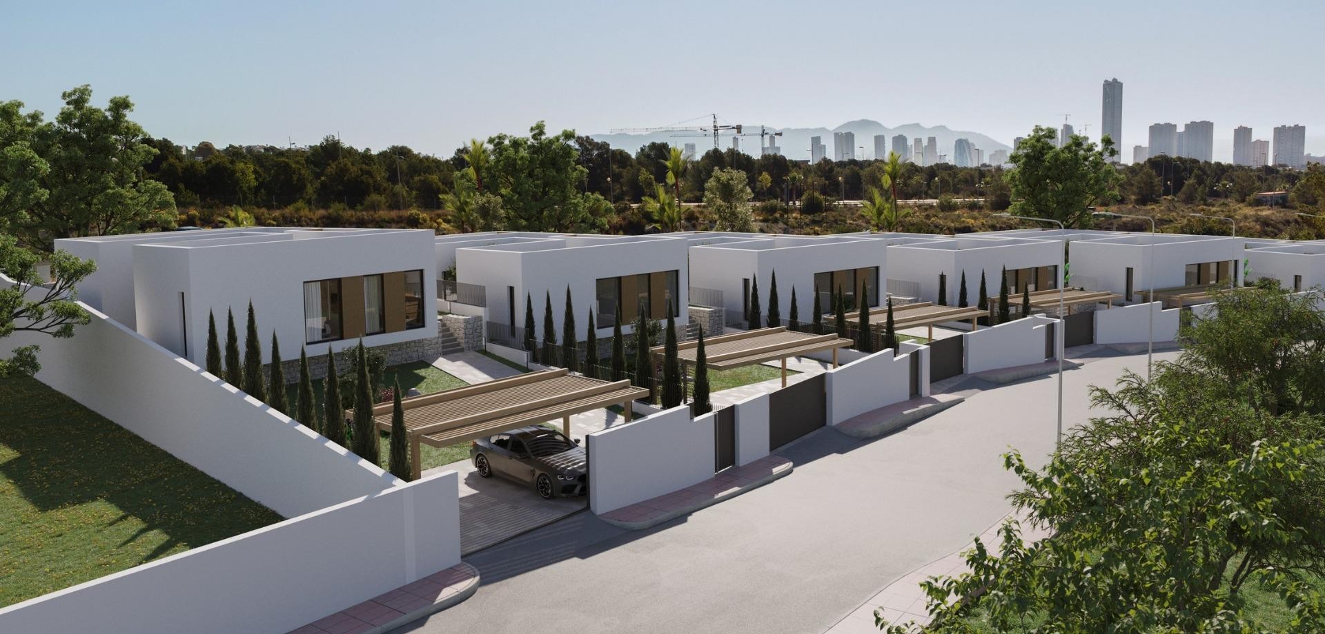 Moderne enetasjes villaer med privat basseng i Finestrat – roen møter livet ved kysten Eksklusive nybyggede villaer på romslige tomter Oppdag en eksklusiv samling av 7 nybyggede villaer i Finestrat, hver nøye designet i én etasje med 3 soverom, 2 bad og 1 gjestetoalett. Disse eiendommene ligger på sjenerøse tomter på over 600 m² og tilbyr en ideell blanding av plass, privatliv og eleganse. Omgitt av frodig middelhavslandskap og fjellutsikt, tilbyr disse hjemmene en rolig livsstil bare noen minutter fra den livlige kysten av Benidorm. Elegant design og førsteklasses uteområder Hver villa er utformet som en fredelig oase med moderne arkitektur og naturlige elementer. Inngangen ønsker deg velkommen med en bred, elegant oppkjørsel og en overbygd carport. En anlagt hage fylt med innfødte planter og blomstrende trær setter tonen for en rolig livsstil. I midten av huset gir en privat gårdsplass ekstra sjarm og naturlig lys, mens den store hagen har et vakkert privat basseng omgitt av grøntområder og solplasser. Dette utendørs fristedet er perfekt for å underholde gjester eller bare slappe av under middelhavssolen. Høy kvalitet og komfort Disse villaene er bygget etter høye standarder, med førsteklasses finish og gjennomtenkte detaljer, blant annet: Doble vinduer i aluminium med termisk barriere for energieffektivitet Fullt utstyrte bad med møbler, speil og dusjkabinetter med skjermer Forhåndsinstallert for sentral klimaanlegg for klimakontroll hele året Motorisert port Privat basseng og anlagt hage Elegant, moderne kjøkken og åpen stue fylt med naturlig lys Førsteklasses beliggenhet i Finestrat, nær Benidorm og kysten Disse villaene ligger i den pittoreske byen Finestrat og har utmerket tilgang til tjenester og fasiliteter: Strendene i Benidorm: mindre enn 3 km La Marina kjøpesenter: 1 km Puig Campana Golf: 3 km Benidorm gamleby og underholdningsområde: 4 km Alicante internasjonale lufthavn: 55 km (ca. 40 minutter med bil) Enkel tilgang til motorveien A7 for rask transport til Alicante, Valencia og videre Denne beliggenheten tilbyr roen i naturlige omgivelser med rask tilgang til butikker, restauranter, golfbaner og Middelhavskysten. Opplev luksus, komfort og natur i perfekt harmoni. Kontakt oss nå for å avtale et besøk eller be om mer informasjon om disse unike villaene i Finestrat.