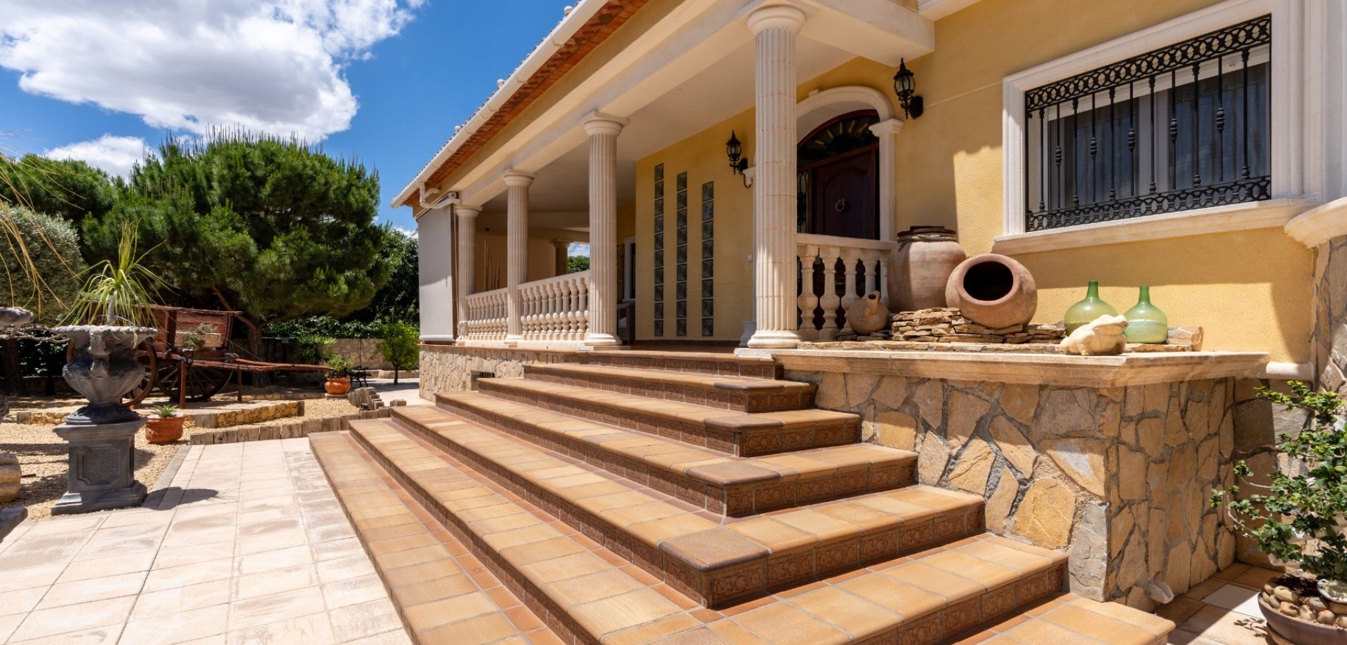 Ditt paradis i San Vicente del Raspeig venter på deg! Vi er stolte av å kunne presentere denne fantastiske og eksklusive villaen i San Vicente del Raspeig, hvor komfort, plass og design kombineres for å tilby deg et virkelig innbydende hjem. Denne spektakulære eiendommen på 450 m² ligger på en omhyggelig vedlikeholdt tomt på 2050 m², og er omgitt av trær, palmer og uteområder som er ideelle for å nyte det solfylte klimaet i Alicante. Ved siden av det fantastiske svømmebassenget med fontene og boblebad, finner du et koselig bord som er perfekt for frokoster under åpen himmel. På den andre siden inviterer furutrær og trebord deg til å dele uforglemmelige stunder med familie og venner. Utenfor er det et hus med en stor spisestue, grill og vedfyrt ovn. Luksuriøst og funksjonelt interiør Når du kommer inn, blir du møtt av en vakker terrasse som fører til en romslig stue-spisestue, designet med unike detaljer. Det uavhengige kjøkkenet, utstyrt med alt du trenger, har tilgang til terrassen. Denne etasjen inneholder også et komplett bad og et kontor. I første etasje finner du to soverom. Det første har en privat terrasse med panoramautsikt over tomten. Hovedsoverommet har egen balkong, eget bad med boblebad og et stort omkledningsrom. Kjelleren har en stor stue med bar, vinkjeller, tre soverom med garderober, vaskerom og et fullt utstyrt bad.Kvalitet og komfort Denne unike eiendommen er bygget med materialer av topp kvalitet, og tilbyr den beste varmeisolasjonen. Den har doble vinduer, motoriserte persienner, oppvarming med radiatorer og flytende plattform og porselensteingulv. Videre er denne fantastiske eiendommen perfekt kommunisert med byen og strendene, og har alle nødvendige tjenester innen gangavstand. Ta kontakt med oss! Ikke gå glipp av muligheten til å bo i denne eksklusive eiendommen i San Vicente del Raspeig. Kontakt oss, Costa Blanca Eiendom-teamet vil med glede hjelpe deg med å gjøre drømmen din til virkelighet.