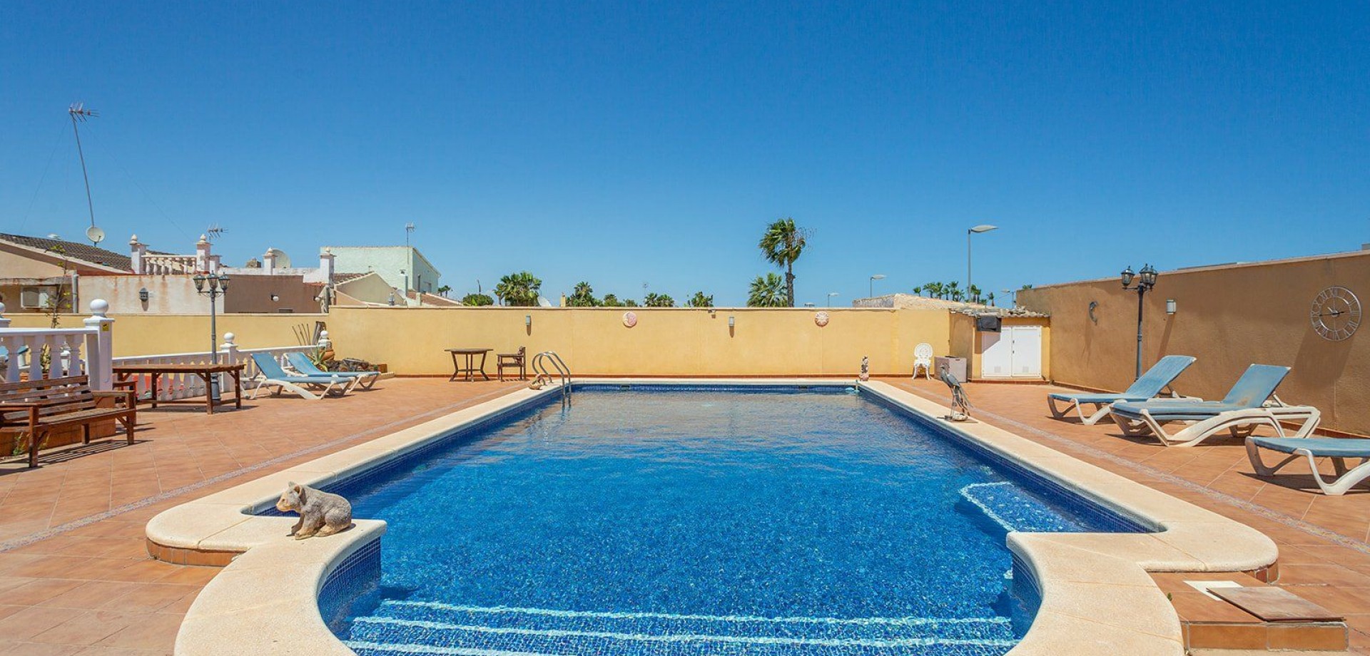 Esentya Estate har gleden av å presentere en meget flott eiendom i en av de mest eksklusive områdene i Torrevieja, Los Balcones. Tomten er på hele 1100 kvadratmeter med eget basseng. Selve bygningen er på 340 kvadratmeter fordelt på 2 etasjer og kjeller. Når du kommer inn møter du stuen med eget ildsted, kombinert kjøkken og spisestue, 2 soverom med eget bad, 1 bad og 1 bod. I andre etasje finner du 2 soverom med eget bad, en stor terrasse og egen takterrasse med utsikt mot saltsjøen. Kjelleren kan også benyttes til opphold med stue og soverom. Vi trekker fram at første etasje har en egen inngang, dette oppleves privat og gir mulighet for utleie. Vi trekker frem følgende: Parkering for 56 biler Videoovervåkning Sikkerhetskameraer AC i alle rom Elektrisk port Doble glassvinduer Stengulv Ta kontakt for å avtale visning!