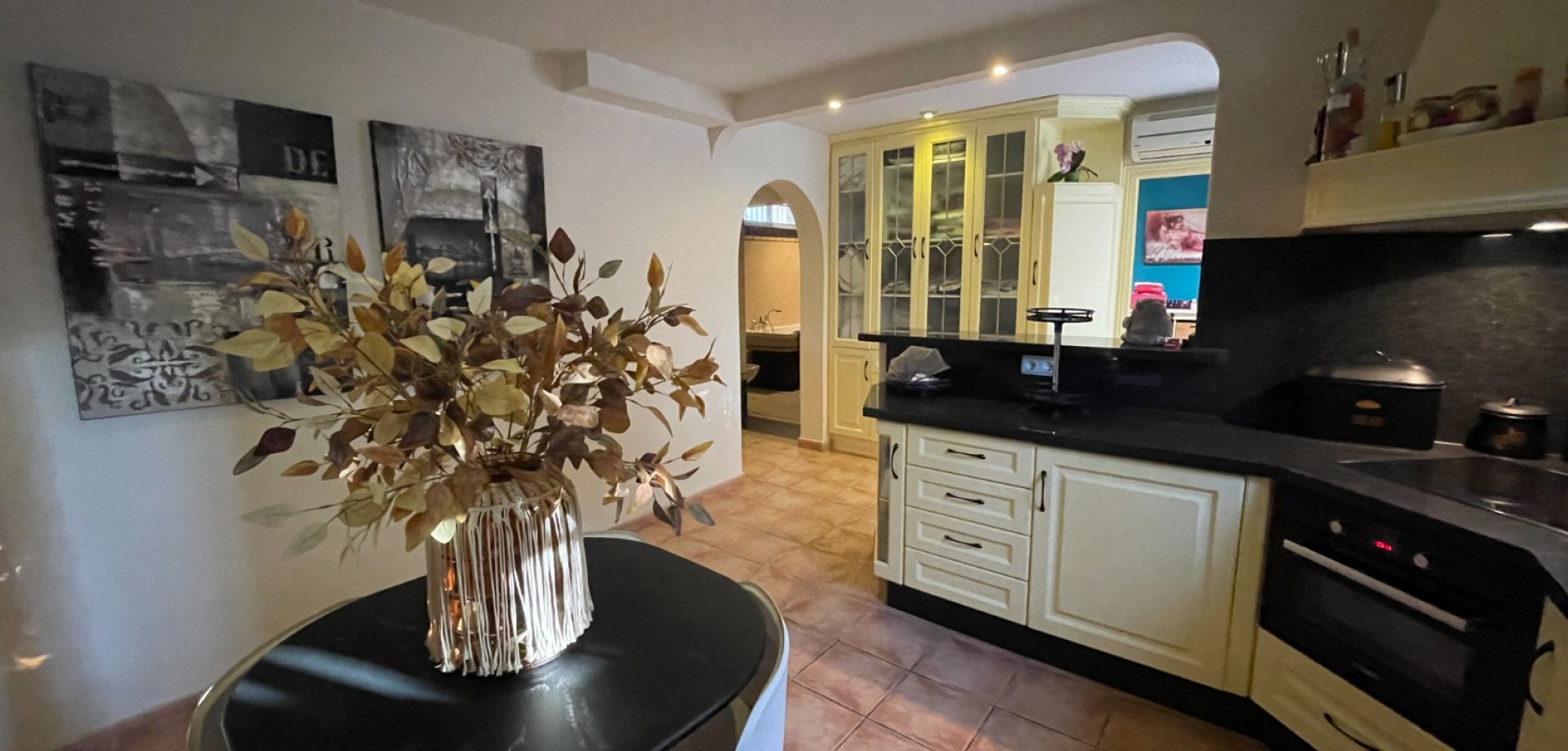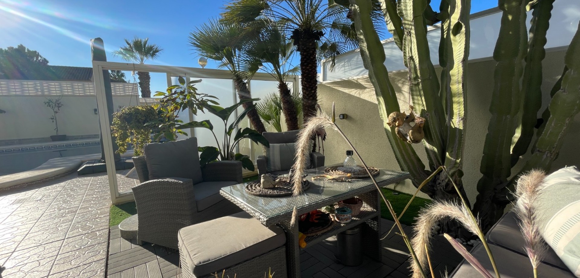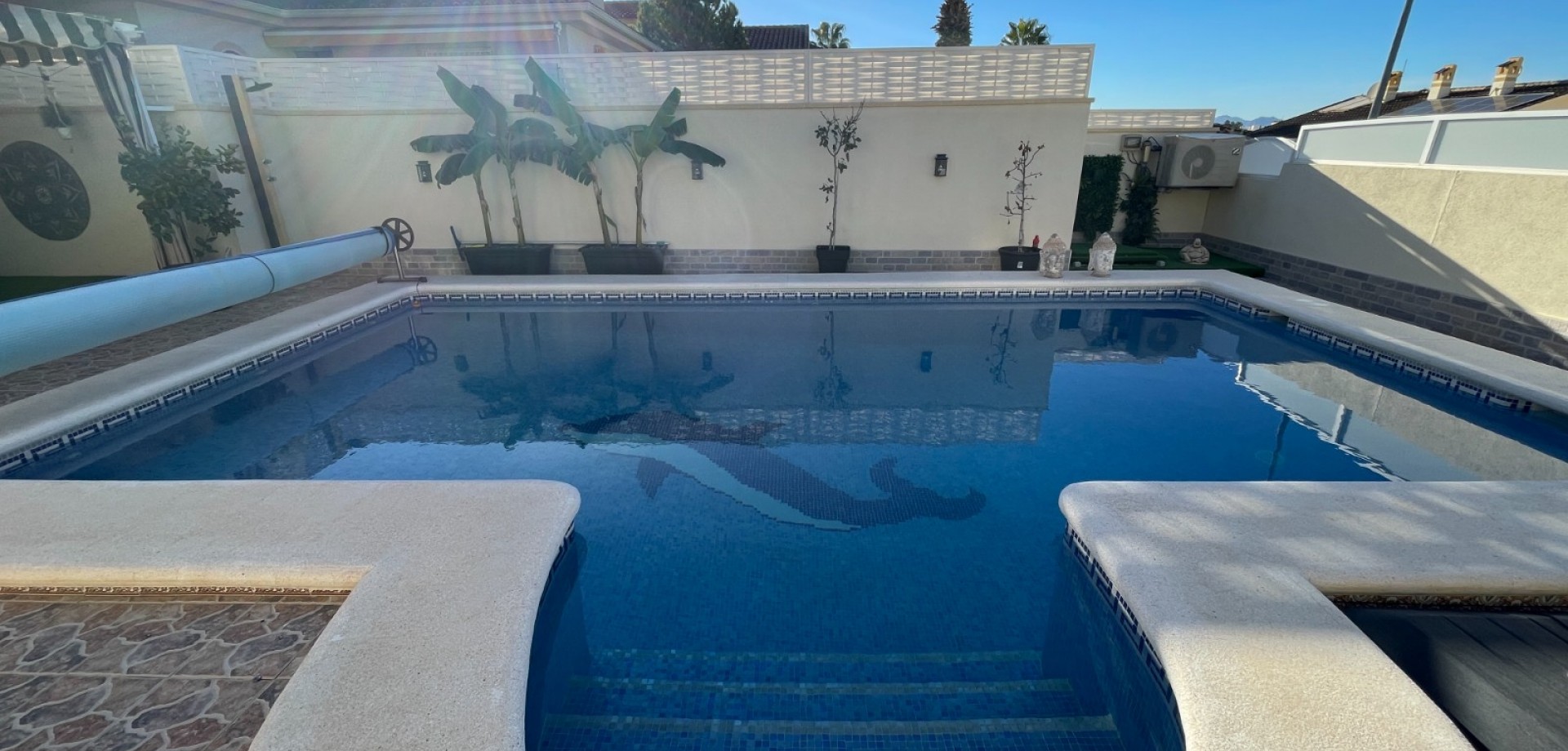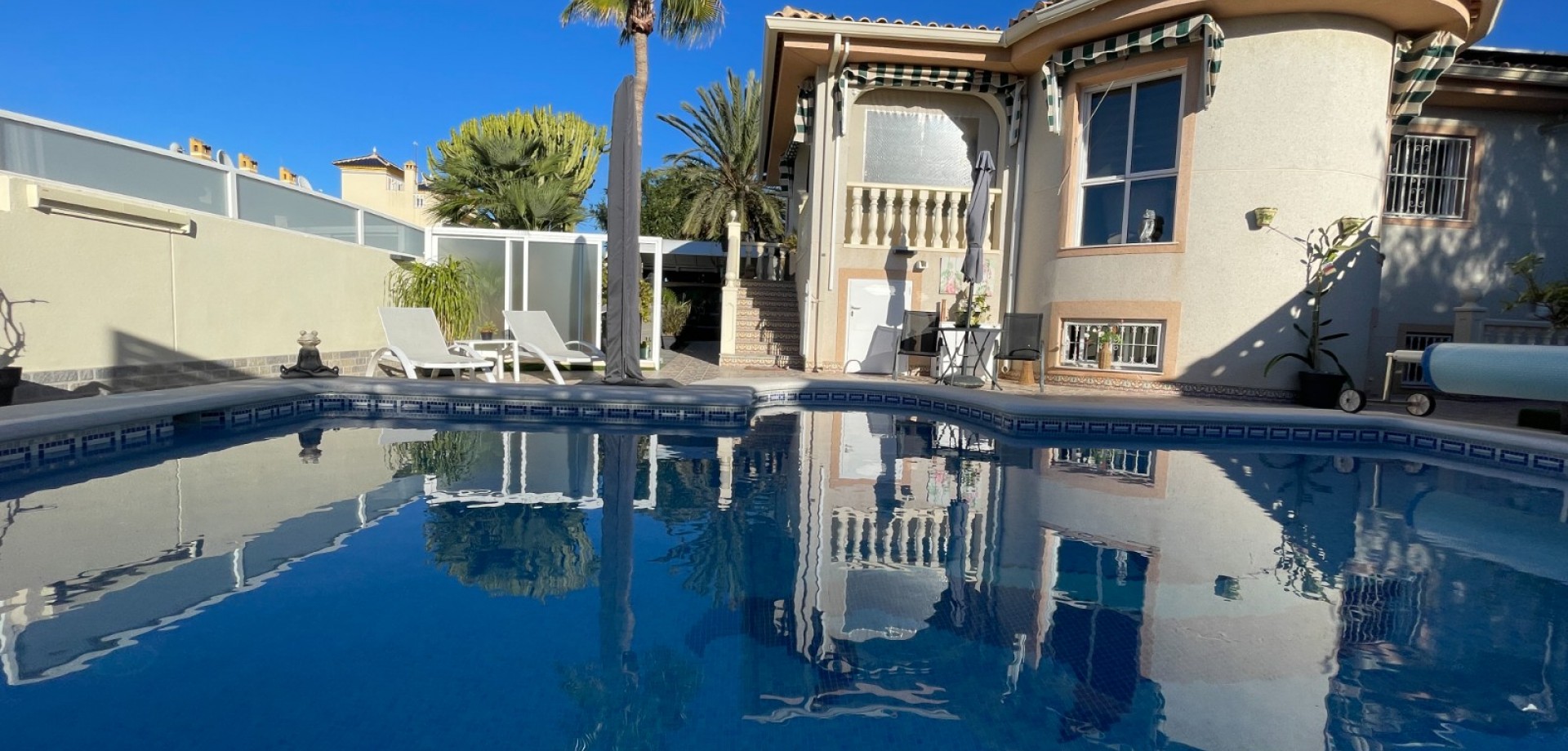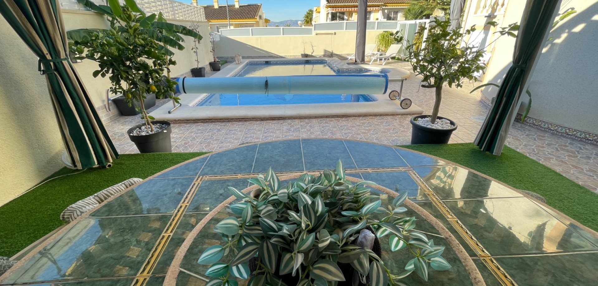 Sjarmerende villa i Benijófar Ligger i et rolig og populært område mellom Rojales og Ciudad Quesada, og denne villaen på to etasjer står på en tomt på 500 m². Øverste etasje har entre, stue, kjøkken med spisestue, to soverom og to bad (ett av dem en suite) med en koselig terrasse. Nederste etasje har ekstra stue/soverom, kjøkken, tre soverom og ett bad, totalt 5 soverom.Eiendommen har svømmebasseng, flere patioer, utendørs kjøkken med spiseområde, hage og parkeringsplass — perfekt for familier.Eiendommen har solcellepaneler for energieffektivitet, samt en varmepumpe til bassenget, perfekt for å nyte vannet året rundt.Benijófar er en autentisk spansk landsby med alle nødvendige tjenester: restauranter, apotek, bank og frisør, samt fritidsaktiviteter som golf og turstier. Stranden og Torrevieja ligger kun 15 minutter med bil.Perfekt for de som søker et romslig, velholdt hjem med en vakker hage. Velkommen hjem.