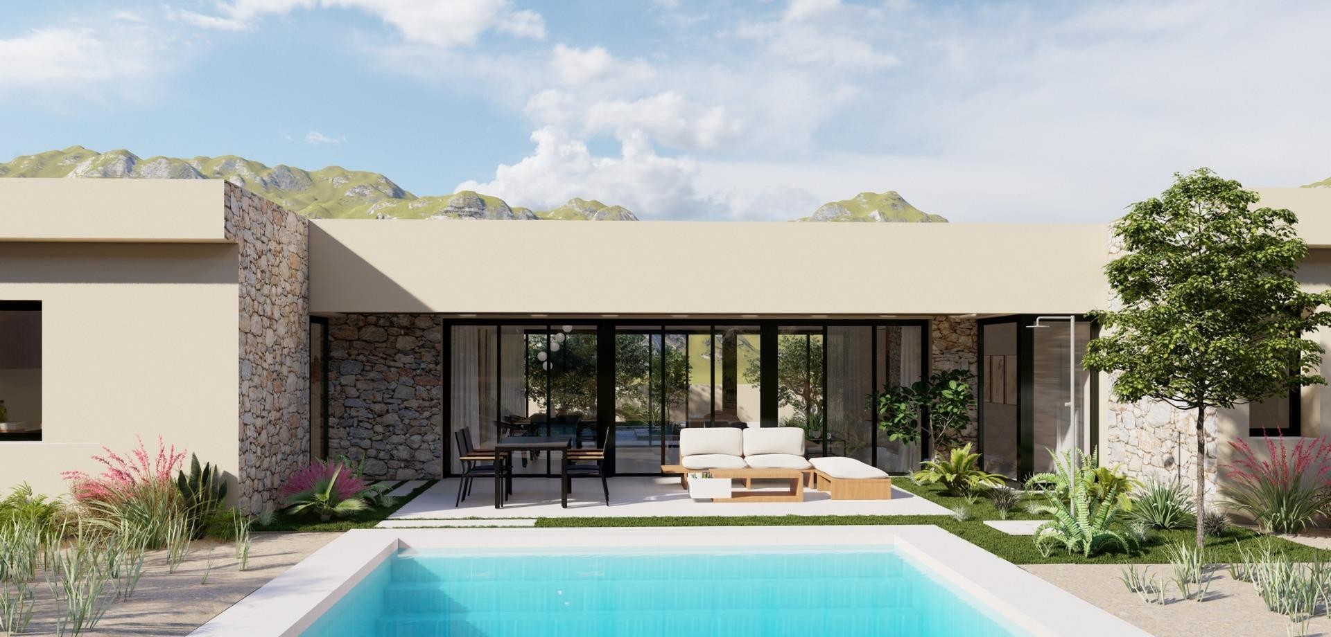 NYBYGG VILLA I YECLA, MURCIA Nybygg eksklusiv luksusvilla som ligger i en vakker vingård i Yecla, Murcia. Prosjektet tilbyr moderne villaer i gårdsstil bygget på tomter på 20 000 m2, med oliventrær og en vingård med en produksjon på opptil 10 000 kg druer, som gjør det mulig å produsere din egen vin. Ulike distribusjonsmodeller tilbys, men det er også mulig å lage et helt personlig design. Standardmodellene presenterer et romslig hus i én etasje med 6 soverom, 5 bad, åpne rom fulle av liv, hvor «interiør» og «eksteriør» smelter perfekt sammen og naturlig lys dominerer. Dagområdet har åpen utforming, kombinerer kjøkken, spisestue og stue i en stor plass med store vindusflater som gir utgang til uteområdet med store terrasser, hagen og det private bassenget. Den indre terrassen i midten av huset representerer den perfekte integreringen av arkitekturen med det naturlige miljøet. Hele huset inkluderer materialer av høy kvalitet i stil med et tradisjonelt spansk gårdshus med et moderne preg; fremhever en høy termisk og akustisk isolasjon og energieffektivitet A, edle og naturlige materialer, som tre og naturstein, i kombinasjon med stukkatur, betong og glass for en perfekt integrering i det naturlige miljøet. I tillegg inkluderer det 2 parkeringsplasser, et svømmebasseng og en tilpassbar hage i henhold til m2 og type høsting. Et hus som tilpasser seg alle og er svært bærekraftig med tanke på blant annet vannbruk, energiforbruk (solcellepaneler) og varmeisolasjon. En unik beliggenhet med mye privatliv som lar deg være i direkte kontakt med naturen og nyte en sunn og øko-bærekraftig livsstil, men kun 15 minutter med bil fra Yecla sentrum. En av de viktigste byene i provinsen Murcia, som har alle nødvendige tjenester for det daglige livet, samt et bredt kulturelt og gastronomisk tilbud. Det er det ideelle miljøet for turgåere, terrengsyklister og andre friluftsentusiaster. Området er veldig godt forbundet med vei, og kan nå Murcia og Alicante på litt over 1 time. Yecla, en av de mest eksepsjonelle destinasjonene i regionen, ligger helt i nord, eller bedre sagt, helt i nordøst. Dette er et land med fjell, god vin, historie, kultur og legender. Det er ikke rart at spanske forfattere som Azorín eller Pío Baroja ble fascinert etter å ha blitt kjent med den.