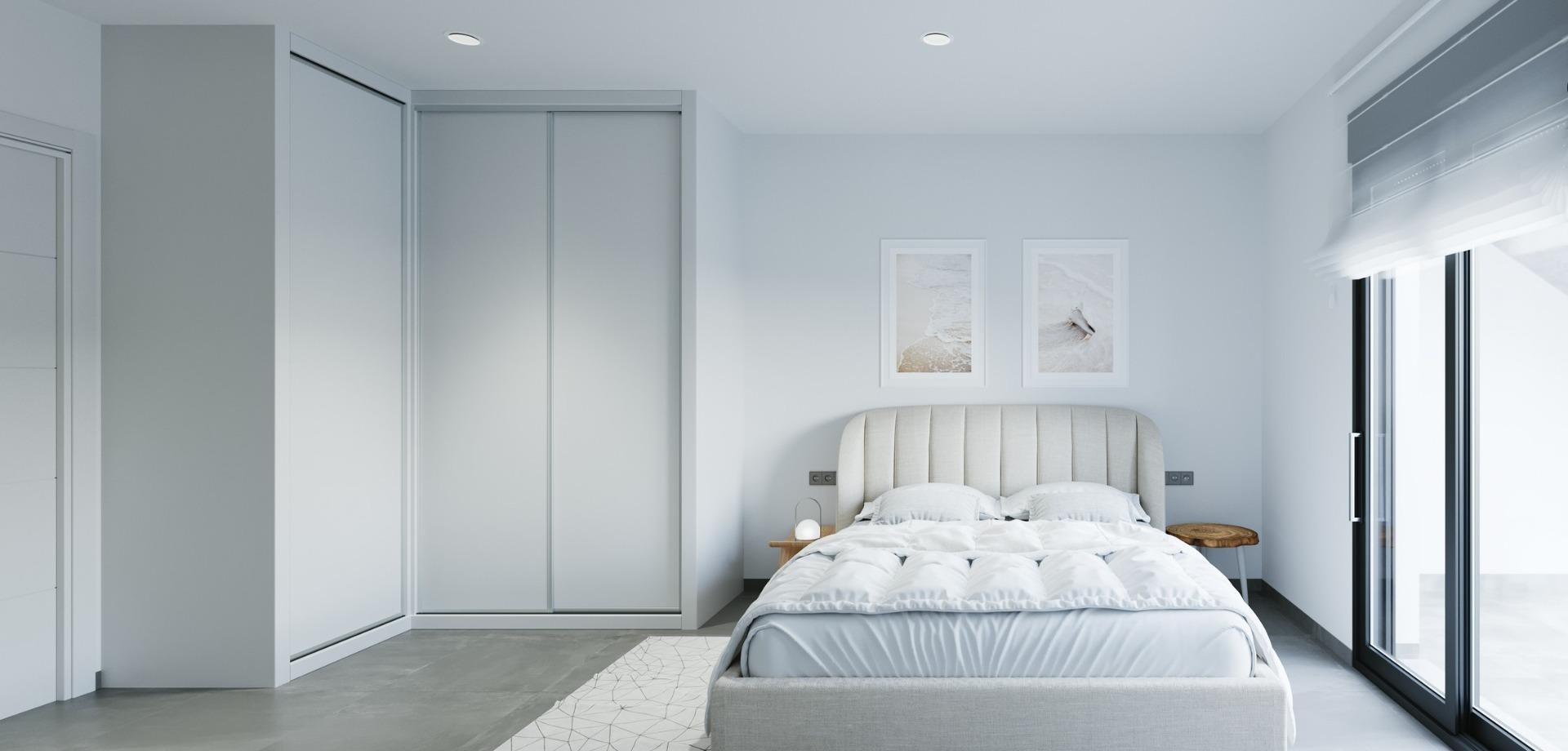 Moderne boliger med 2 soverom og 2 bad, åpen kjøkkenløsning med stue, garderober, terrasse, privat solarium, hage med basseng og parkeringsplass.