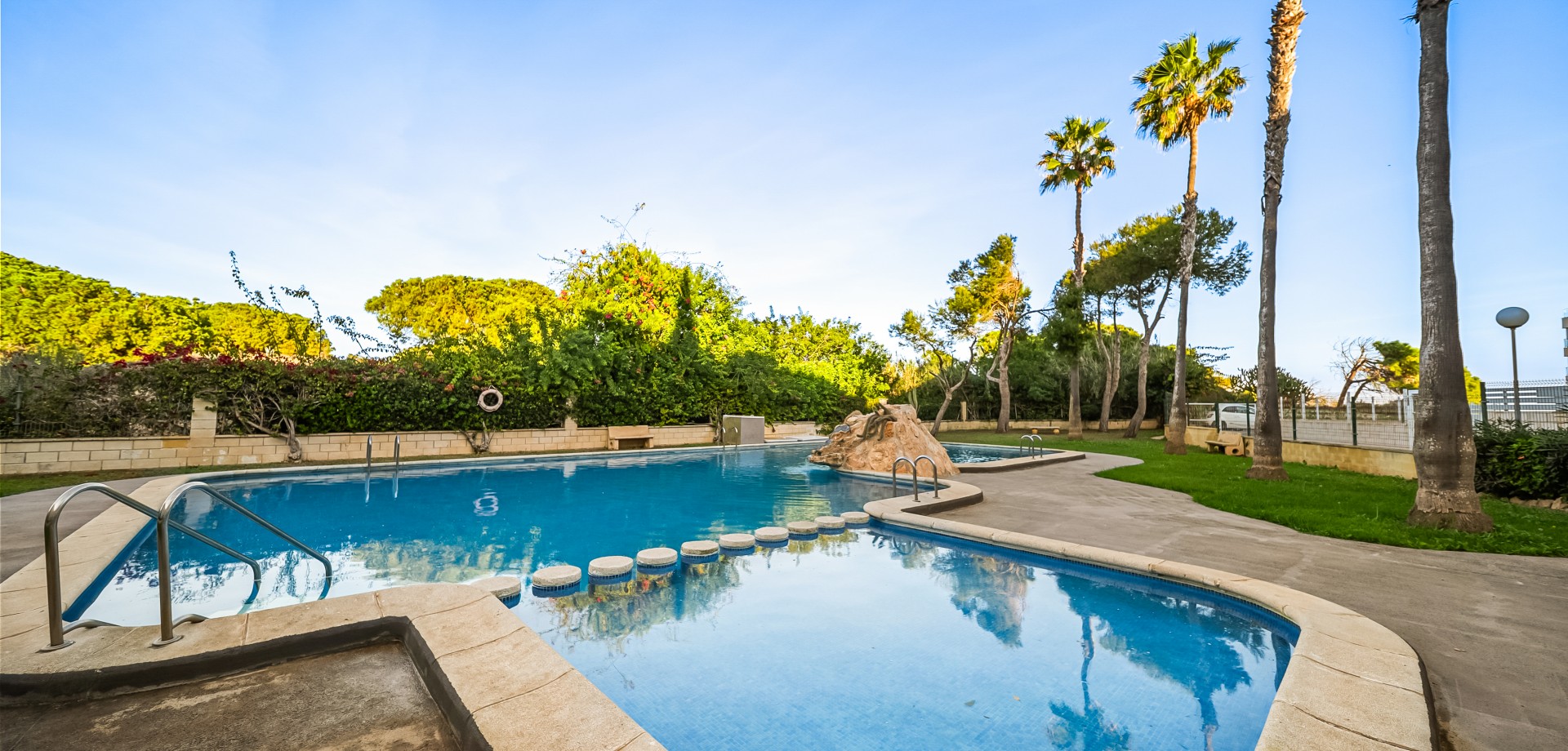 Ligger i et velholdt boligkompleks med fellesbasseng, nær strandpromenaden, barer og restauranter.