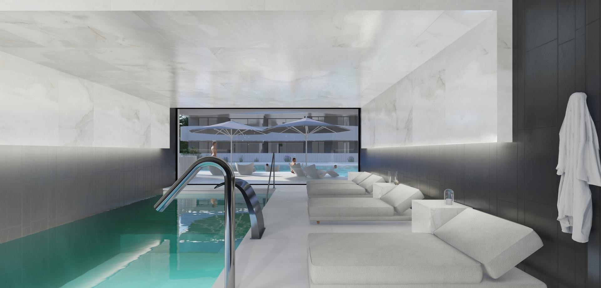 NYBYGDE BOLIGER I EL RASO, GUARDAMAR DEL SEGURA Nybygget privat boligkompleks bestående av førsteklasses leiligheter med 2 soverom og toppleiligheter med 2 eller 3 soverom med privat fellesområde og luksuriøse fasiliteter. Disse moderne designleilighetene ligger i et beskyttet parkområde med sitrushager og saltsjøer, og tilbyr den ultimate livskvaliteten som følger med nærhet til naturen og høyteknologisk livsstil. Moderne urbanisering, bygget med komfort i tankene. Vår elegante design, uovertrufne byggekvalitet og sans for detaljer gjør dine spanske drømmer til virkelighet. Den nyeste teknologien gjør at du kan holde hjemmet ditt klart fra telefonen. Smart alarm, kameraer, intercom, hvitevarer, klimaanlegg osv. Nyt endeløs sommermoro med et stort saltvannsbasseng i ditt eget nabolag! Du trenger ikke å reise, det glitrende bassenget vårt gir plass til svømming, soling og avslapning. Dykk ned i paradiset, rett under huset ditt. Gjør deg klar for en hole-in-one opplevelse! Tenk deg å ha en minigolfbane rett under huset ditt! Endeløs underholdning for alle aldre. Enten du vil perfeksjonere svingen eller bare vil ha en morsom aktivitet å gjøre sammen med venner og familie, har minigolfbanen vår det du trenger. Å ha et kontorfellesskap og et kaffehjørne rett under hjemmet ditt er svært fleksibelt. Det gir deg et dedikert område for arbeid og produktivitet, adskilt fra distraksjonene og avslapningen hjemme. Dette kan være spesielt gunstig for deg som jobber hjemmefra. Unn deg luksusen av en spa-opplevelse i nærmiljøet. Slapp av og foryng deg i komfort! Nyt luksuriøse spatjenester som massasje, ansiktsbehandlinger og kroppsbehandlinger uten å måtte reise. Kom sammen med venner eller møt nye mennesker i vårt eksklusive felles spa. El Raso er en del av Guardamar del Segura. Guardamar del Segura er en by som ligger på Costa Blanca sør. Byen har en 11 kilometer lang naturstrand og en stor furuskog. Guardamar del Segura har en stor havn med aktiviteter hele året, et stort sportssenter med paddle-tennis, tennis, fotball og et stort oppvarmet svømmebasseng som er åpent hele året. Her finnes også et bibliotek med gratis wi-fi og datamaskiner. Guardamar del Segura ligger bare 20 km fra flyplassen Alicante - Elche (El Altet), hvor det går mange fly hver dag med forbindelser til de største europeiske byene på grunn av etterspørselen etter turister på Costa Blanca.