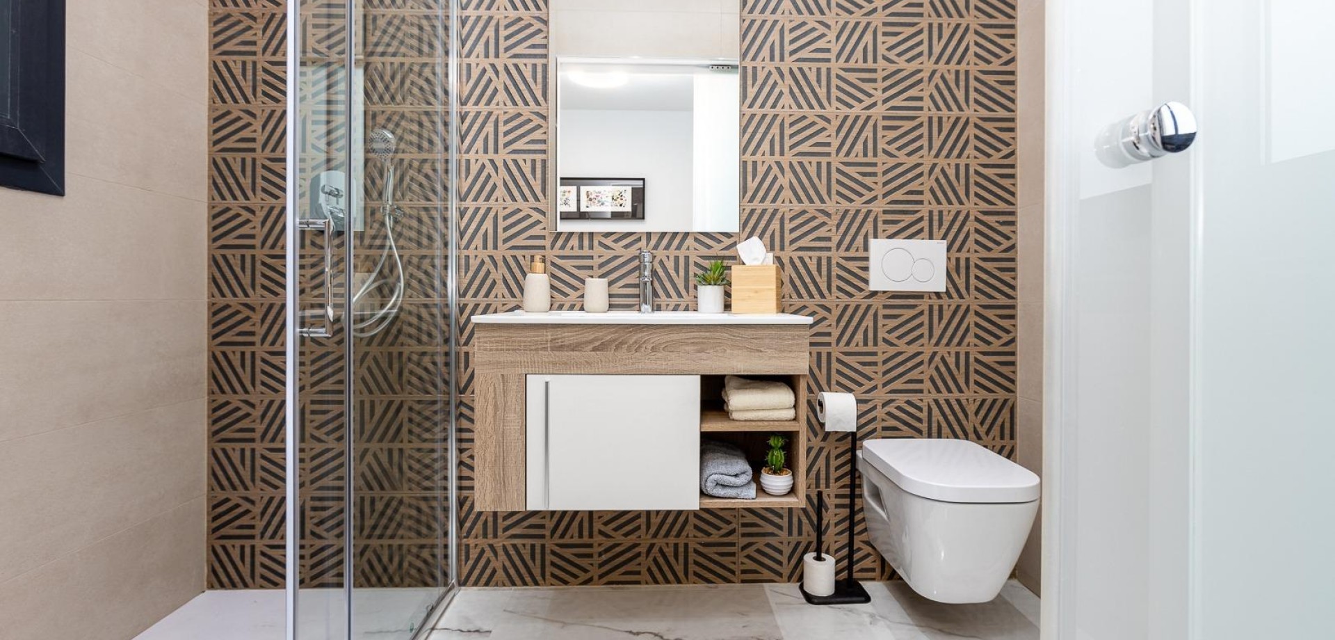 Villaer: Uavhengige eiendommer med tre soverom og tre bad, tilgjengelige i en eller to etasjer. Hver villa har et privat basseng, et solarium og parkering på tomten. Kjeller er også tilgjengelig som tilvalg.