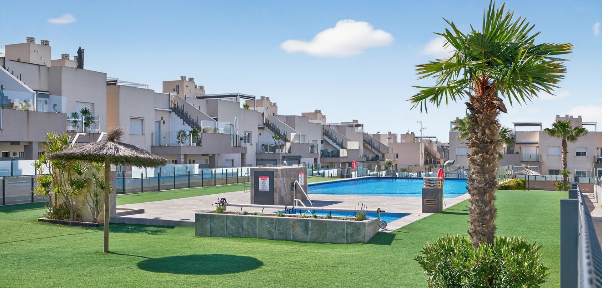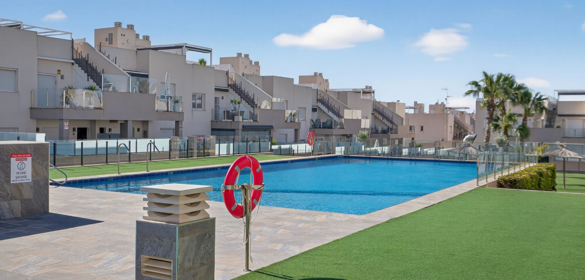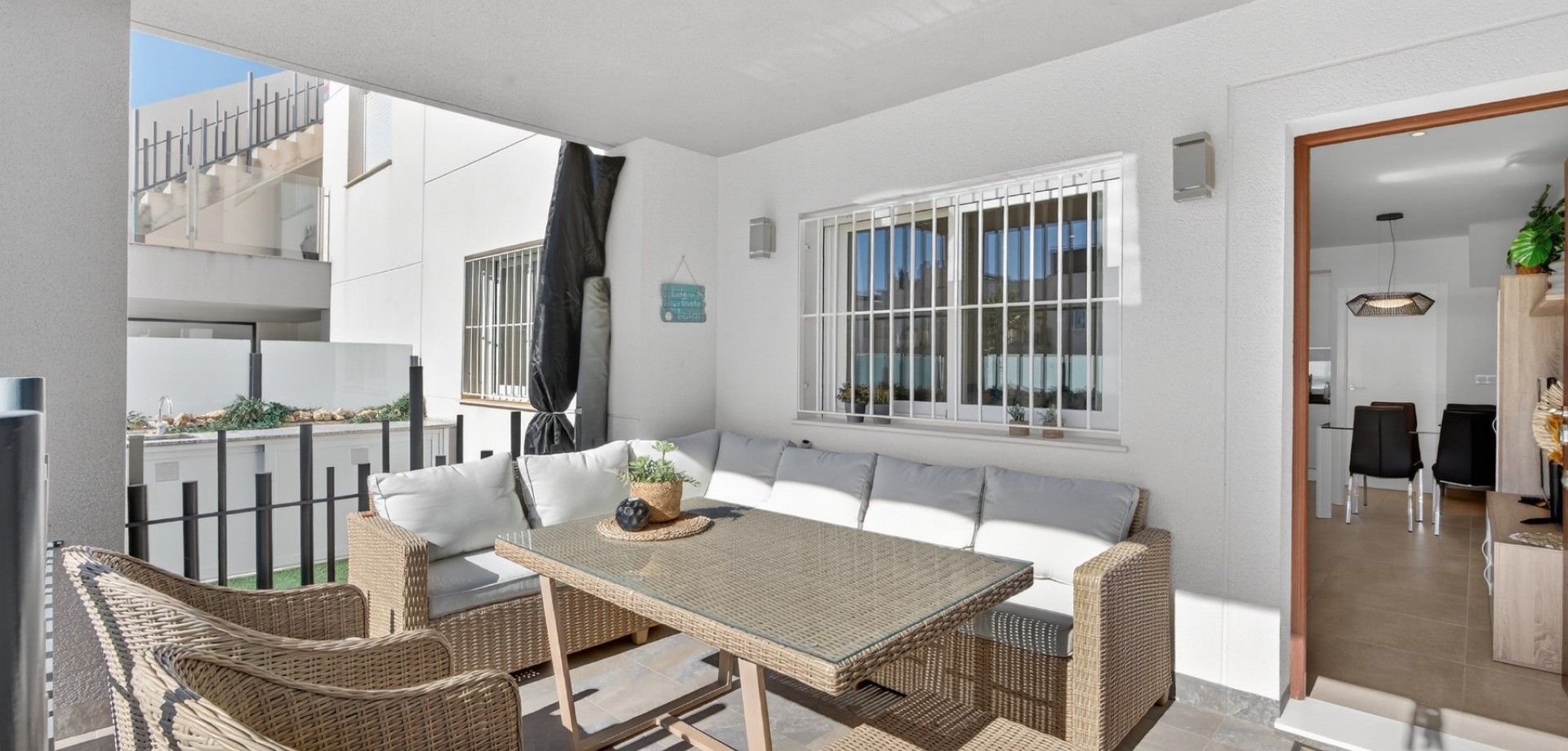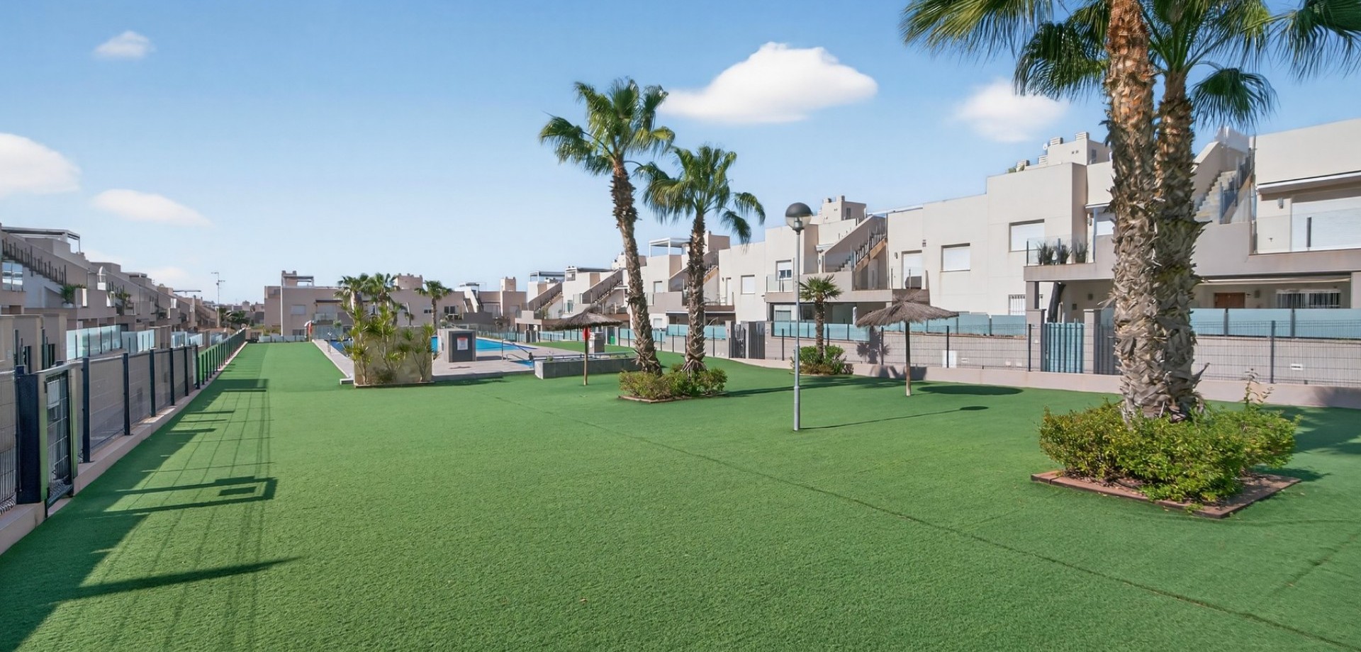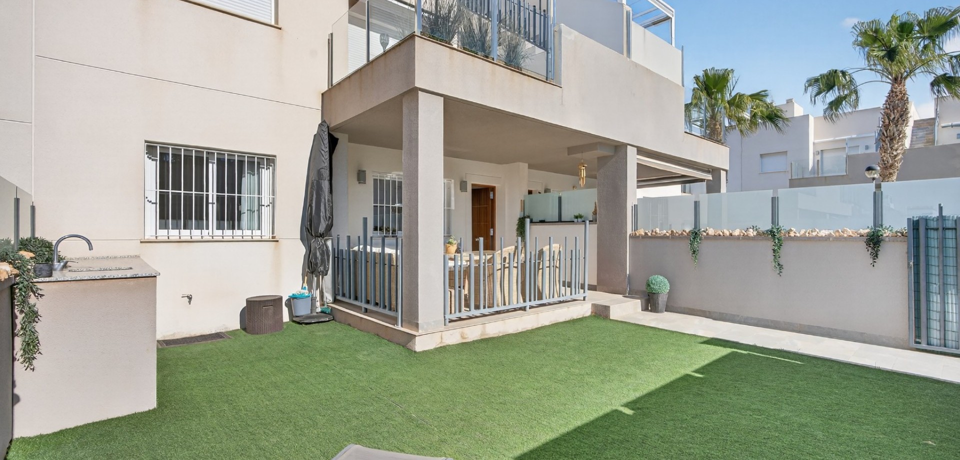 Plettfri leilighet i første etasje med privat hage og parkering Eiendommen:Opplev den perfekte blandingen av innendørs og utendørs liv i denne fantastiske leiligheten i første etasje med 3 soverom og 2 bad, som ligger i det prestisjefylte Sol Park-utviklingsprosjektet Aguas Nuevas. Dette hjemmet er i god stand og selges fullt møblert, noe som gjør det til en nøkkelferdig mulighet for permanent opphold eller et førsteklasses feriested. Interiøret er lyst og romslig, men det virkelige høydepunktet er uteområdet: en veldig stor, velholdt privat hage og en vakker terrasse som er perfekt for utendørs servering og å nyte den spanske solen. Urbanisering og fasiliteter:Sol Park er kjent for sin høye standard og uberørte fellesområder. Beboerne har tilgang til et stort, glitrende svømmebasseng omgitt av vidstrakt, velstelt eiendom med frodig kunstgress og tropiske palmer. For optimal bekvemmelighet inkluderer eiendommen en sikker, underjordisk parkeringsplass. Beliggenheten:Beliggende i hjertet av Aguas Nuevas, er du perfekt posisjonert for å nyte det beste av kysten.Bekvemmelighet: Bare en kort spasertur til lokale fasiliteter, inkludert supermarkeder, kafeer og restauranter.Fritid: Den gylne sanden på stranden ligger bare minutter unna.Atmosfære: Et rent, rolig og ettertraktet samfunn som tilbyr en feriestedfølelse året rundt. Viktige funksjoner:3 romslige soverom,Stor privat hage og terrasse,Selges fullt møblert,Kjørbar parkering inkludert,Utsøkt felles svømmebasseng og hager,Førsteklasses beliggenhet nær fasiliteter og sjø. Kontakt oss i dag for en avtale om å se denne flotte leiligheten selv