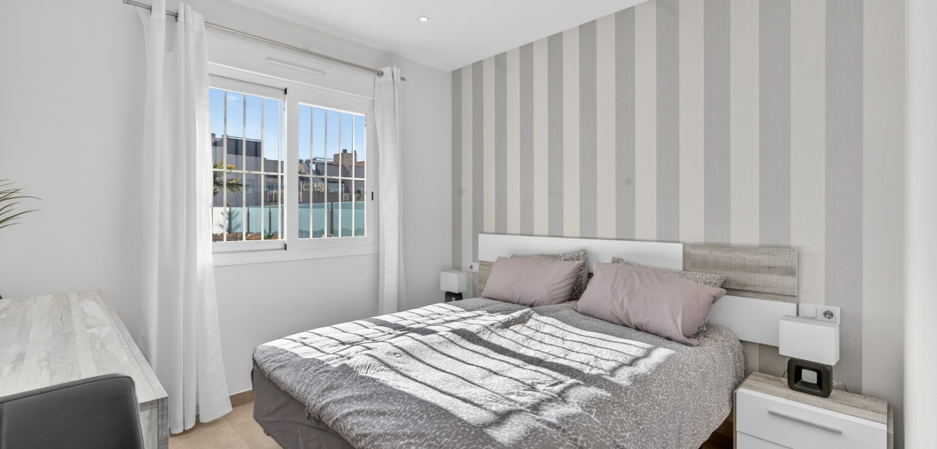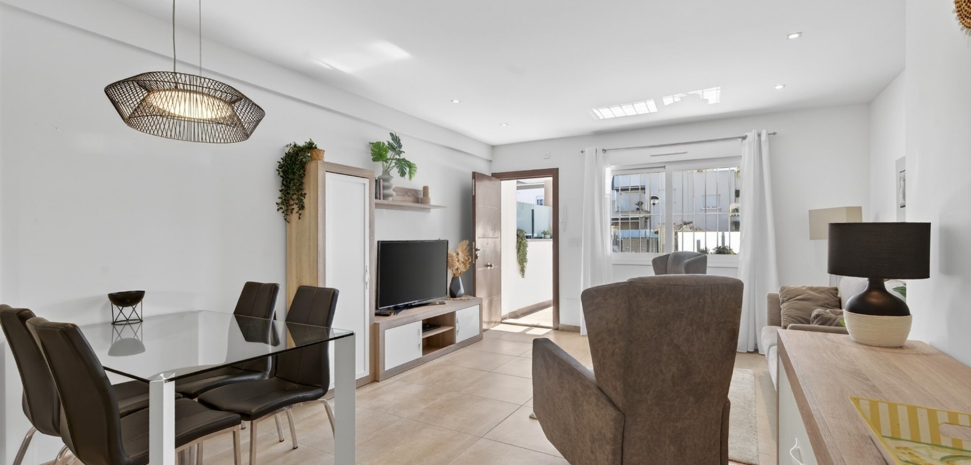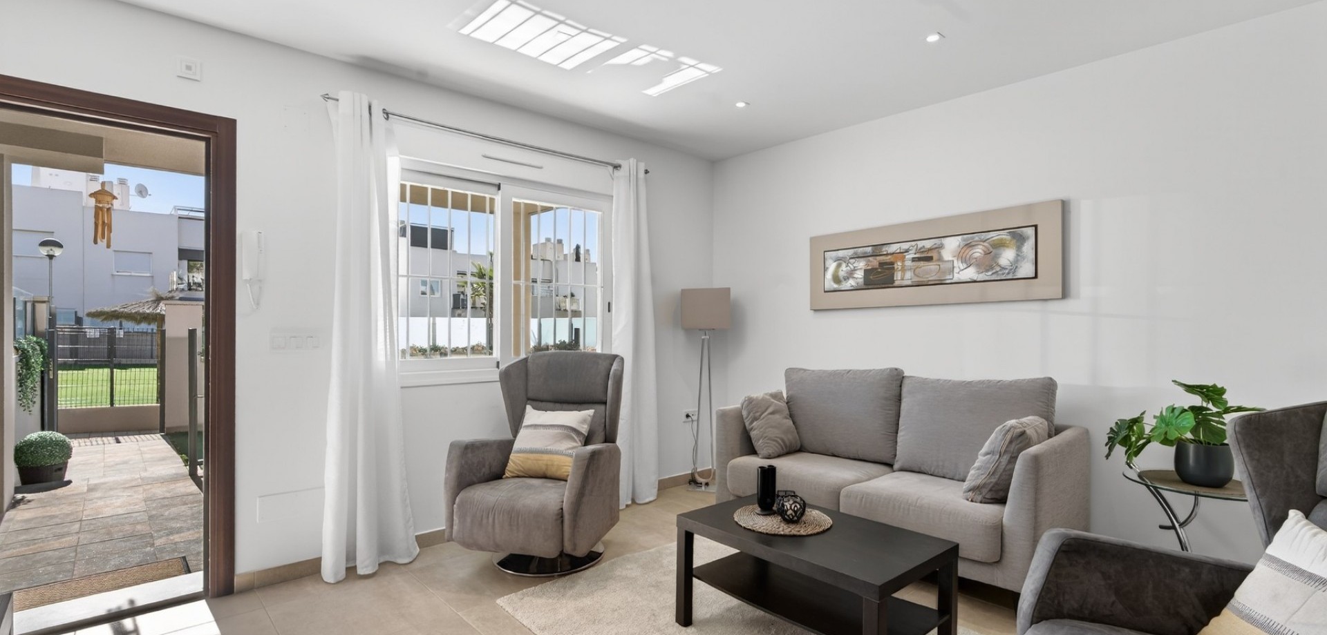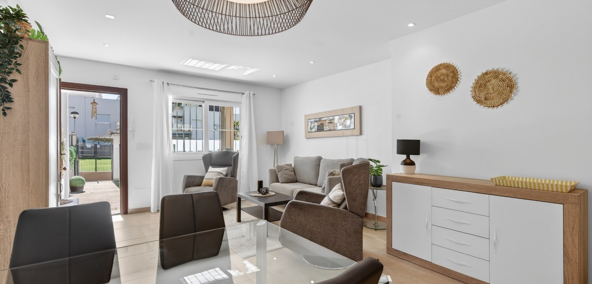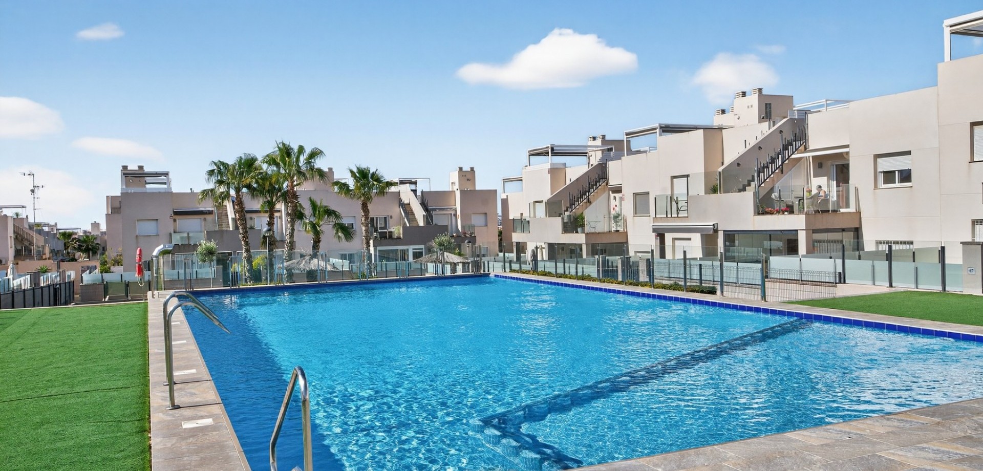 Plettfri leilighet i første etasje med privat hage og parkering Eiendommen:Opplev den perfekte blandingen av innendørs og utendørs liv i denne fantastiske leiligheten i første etasje med 3 soverom og 2 bad, som ligger i det prestisjefylte Sol Park-utviklingsprosjektet Aguas Nuevas. Dette hjemmet er i god stand og selges fullt møblert, noe som gjør det til en nøkkelferdig mulighet for permanent opphold eller et førsteklasses feriested. Interiøret er lyst og romslig, men det virkelige høydepunktet er uteområdet: en veldig stor, velholdt privat hage og en vakker terrasse som er perfekt for utendørs servering og å nyte den spanske solen. Urbanisering og fasiliteter:Sol Park er kjent for sin høye standard og uberørte fellesområder. Beboerne har tilgang til et stort, glitrende svømmebasseng omgitt av vidstrakt, velstelt eiendom med frodig kunstgress og tropiske palmer. For optimal bekvemmelighet inkluderer eiendommen en sikker, underjordisk parkeringsplass. Beliggenheten:Beliggende i hjertet av Aguas Nuevas, er du perfekt posisjonert for å nyte det beste av kysten.Bekvemmelighet: Bare en kort spasertur til lokale fasiliteter, inkludert supermarkeder, kafeer og restauranter.Fritid: Den gylne sanden på stranden ligger bare minutter unna.Atmosfære: Et rent, rolig og ettertraktet samfunn som tilbyr en feriestedfølelse året rundt. Viktige funksjoner:3 romslige soverom,Stor privat hage og terrasse,Selges fullt møblert,Kjørbar parkering inkludert,Utsøkt felles svømmebasseng og hager,Førsteklasses beliggenhet nær fasiliteter og sjø. Kontakt oss i dag for en avtale om å se denne flotte leiligheten selv