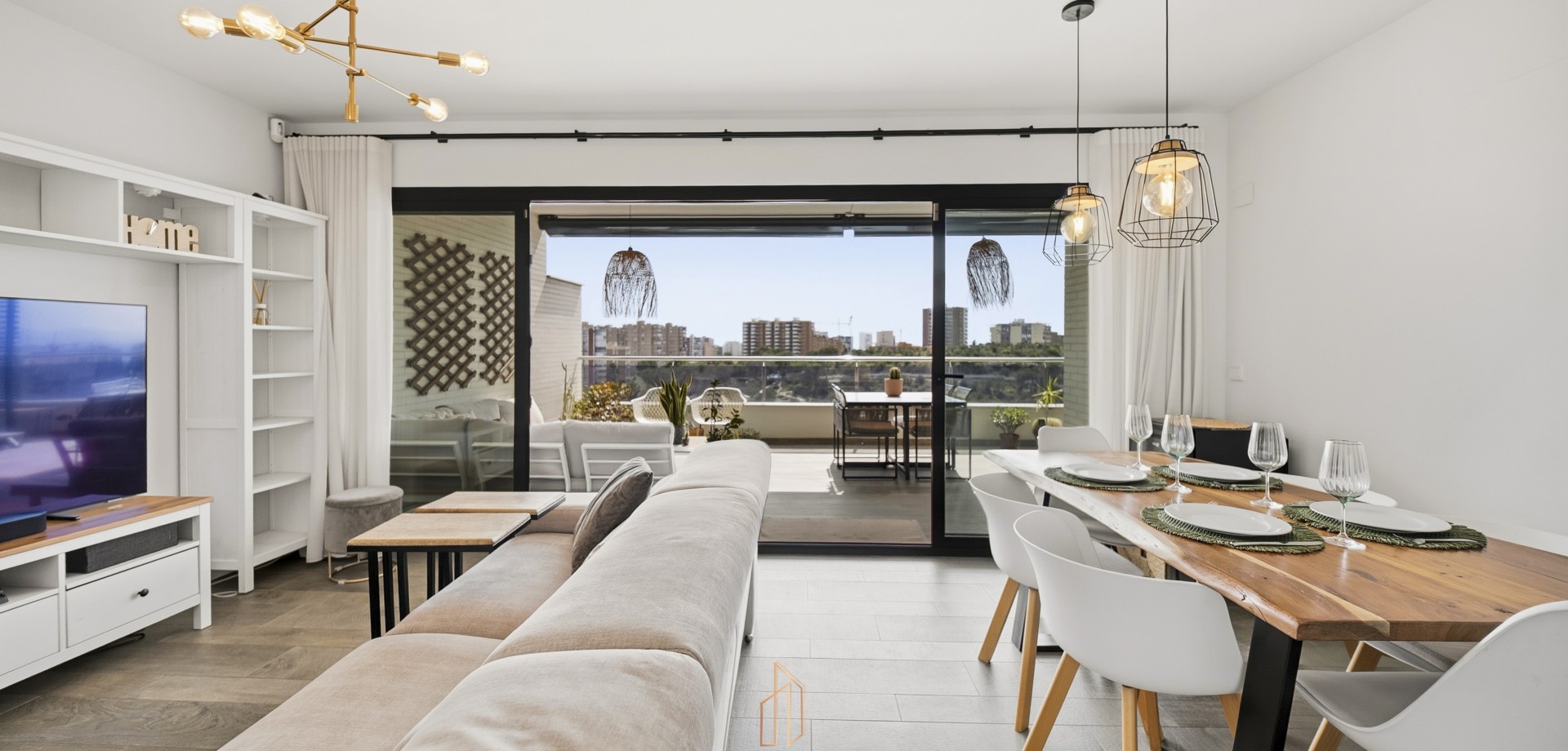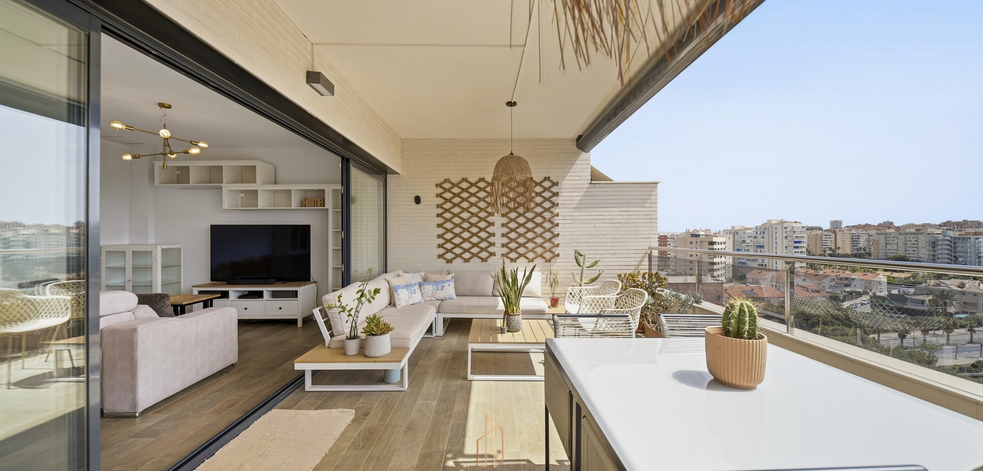 Penthouse med privat takterrasse og åpen utsikt i Albufereta, Alicante. Unik toppleilighet bygget i 2019 med totalt 251,73 m², sjelden på markedet i området. Boligen har 79,73 m² innvendig, terrasse på 36 m² og en stor privat takterrasse på 136 m² med åpen utsikt mot havet, fjellene og Albufereta-området. Den har 3 soverom, 2 bad og walk-in garderobe, med rikelig naturlig lys. Takterrassen har innebygd grill og gir et romslig og privat uteområde. Beliggende i et komplett boligkompleks med fellesområder og nær tjenester, transport og strand. Kvaliteter 3 soverom 2 bad 79,73 m² boareal 251,73 m² totalt 36 m² terrasse 136 m² privat takterrasse Øst-sørvendt Byggeår: 2019 Utsikt mot hav, fjell og Albufereta Walk-in garderobe Mye naturlig lys Innebygd grill Privatliv Ekstra bred parkeringsplass (bil + motorsykkel) Bod inkludert Fellesområder: Felles svømmebasseng med tropiske hager Padelbane Treningsrom Lekeområde for barn Sosiale områder Beliggenhet: 10–15 min gange til Albufereta-stranden 8–12 min til Mercadona 5–10 min til TRAM Lucentum / La Isleta 7–10 min til golfbaner Nær tospråklige skoler Årlige kostnader: IBI: €610 Felleskostnader: €1.800