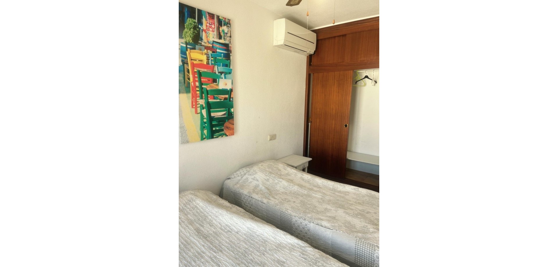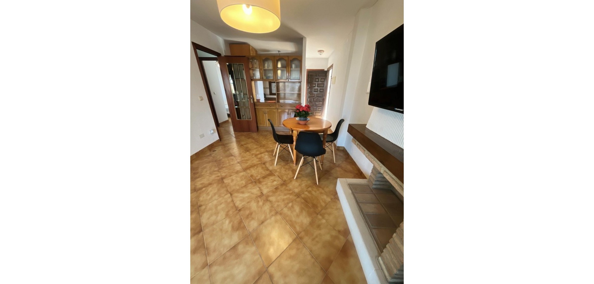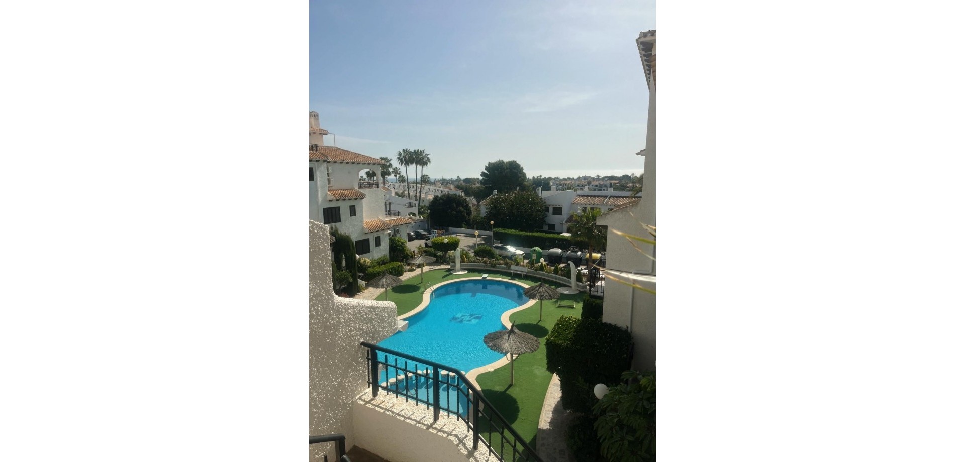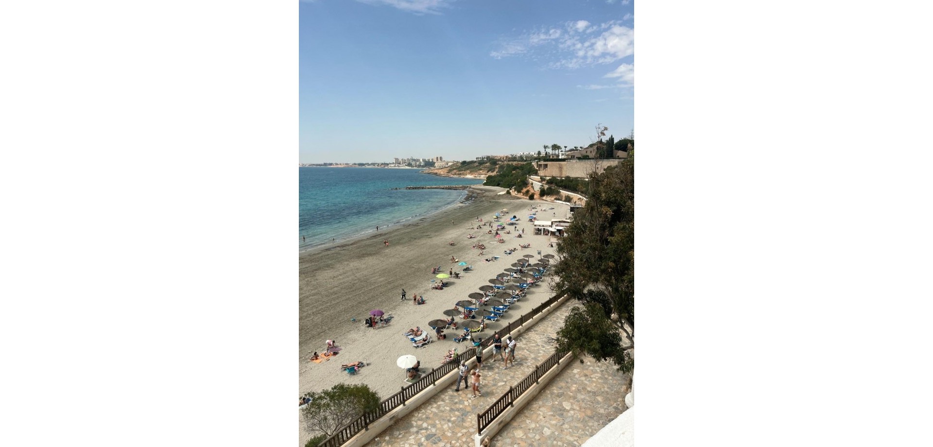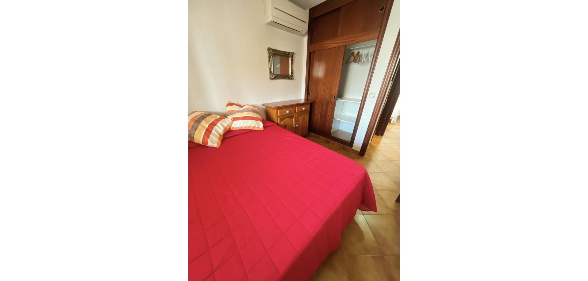 Denne velpresenterte leiligheten ligger nær strendene i Cabo Roig og tilbyr en praktisk planløsning med hyggelig utsikt over fellesområdene. Eiendommen har et lyst oppholdsrom med peis, med doble dører som fører ut til en dekket terrasse, stor nok for et bord, stoler og et avslappet sitteområde. Herfra nyter leiligheten utsikt over felles svømmebasseng og anlagte hager, som også inkluderer et utendørs dusjområde. Det er to doble soverom, begge med klimaanlegg og innebygde garderober. Hovedsoverommet har utsikt over terrassen, mens det andre soverommet har dobbeldører som åpner mot en liten privat balkong. Leiligheten inkluderer et familiebad, utstyrt med badekar og dusj over, bidet og standard sanitærutstyr. Det finnes også et komplett utstyrt separat kjøkken, sammen med et separat vaskerom utstyrt med vask, varmtvannstank og rørleggerarbeid for vaskemaskin. Eiendommen er ideelt plassert innen kort gangavstand til lokale fasiliteter og bare en kort avstand fra strendene i Cabo Roig, noe som gjør den egnet som feriebolig, fast bosted eller utleieinvestering på Costa Blanca.