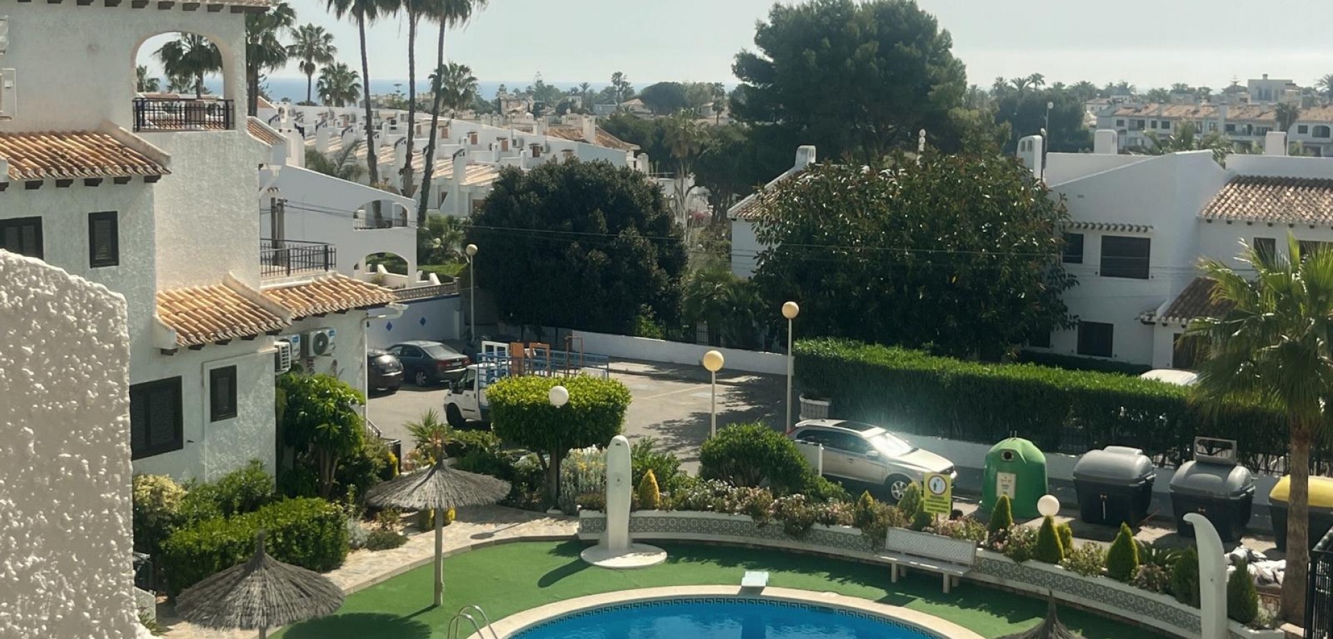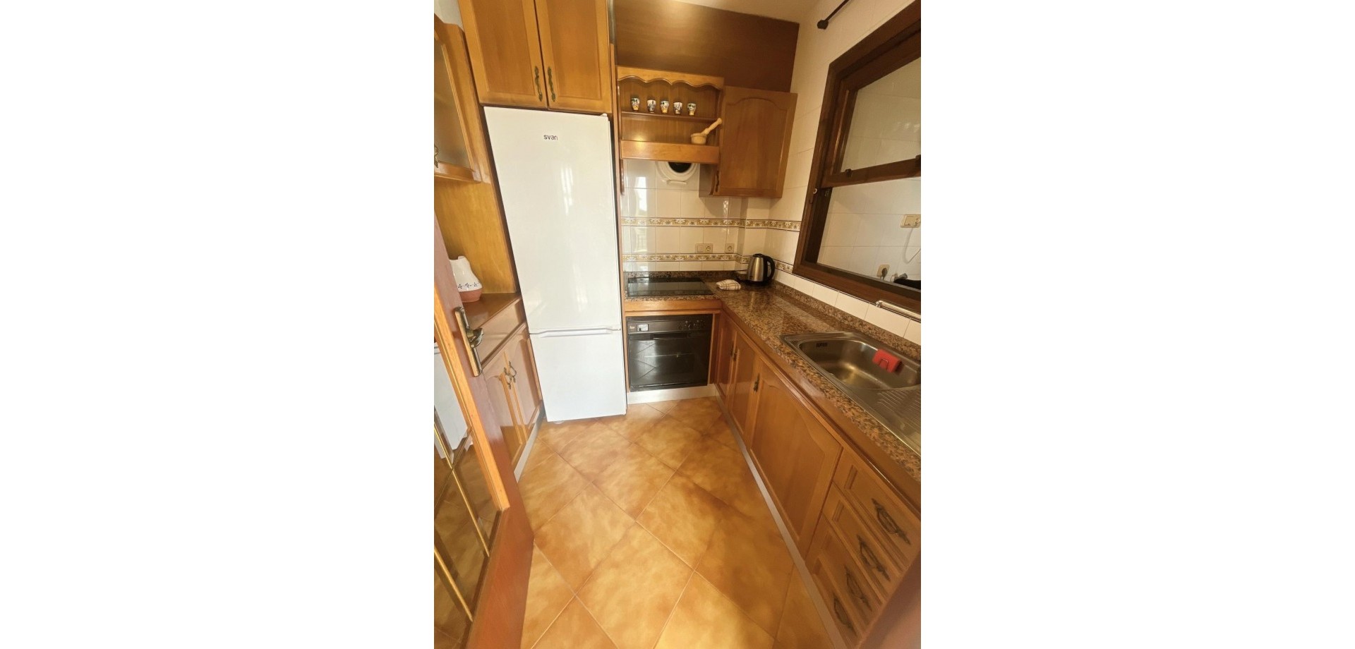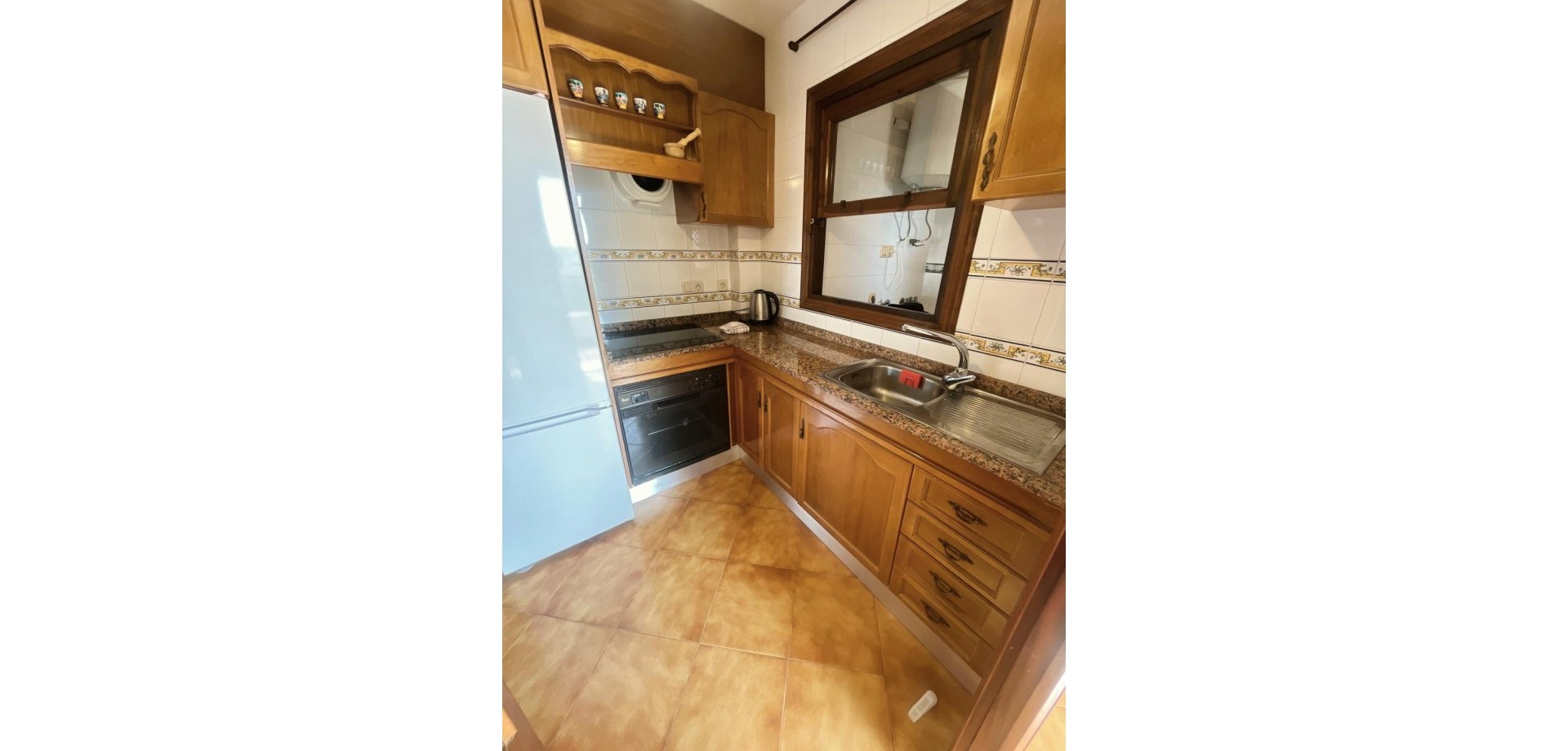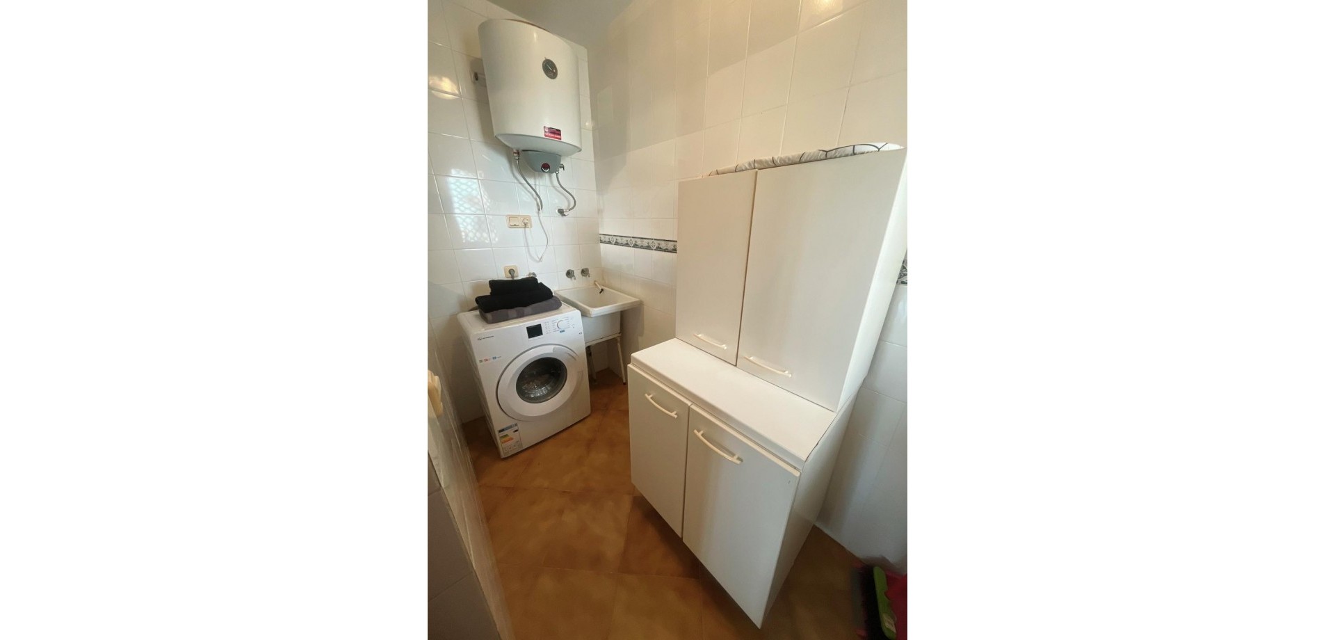 Denne velpresenterte leiligheten ligger nær strendene i Cabo Roig og tilbyr en praktisk planløsning med hyggelig utsikt over fellesområdene. Eiendommen har et lyst oppholdsrom med peis, med doble dører som fører ut til en dekket terrasse, stor nok for et bord, stoler og et avslappet sitteområde. Herfra nyter leiligheten utsikt over felles svømmebasseng og anlagte hager, som også inkluderer et utendørs dusjområde. Det er to doble soverom, begge med klimaanlegg og innebygde garderober. Hovedsoverommet har utsikt over terrassen, mens det andre soverommet har dobbeldører som åpner mot en liten privat balkong. Leiligheten inkluderer et familiebad, utstyrt med badekar og dusj over, bidet og standard sanitærutstyr. Det finnes også et komplett utstyrt separat kjøkken, sammen med et separat vaskerom utstyrt med vask, varmtvannstank og rørleggerarbeid for vaskemaskin. Eiendommen er ideelt plassert innen kort gangavstand til lokale fasiliteter og bare en kort avstand fra strendene i Cabo Roig, noe som gjør den egnet som feriebolig, fast bosted eller utleieinvestering på Costa Blanca.