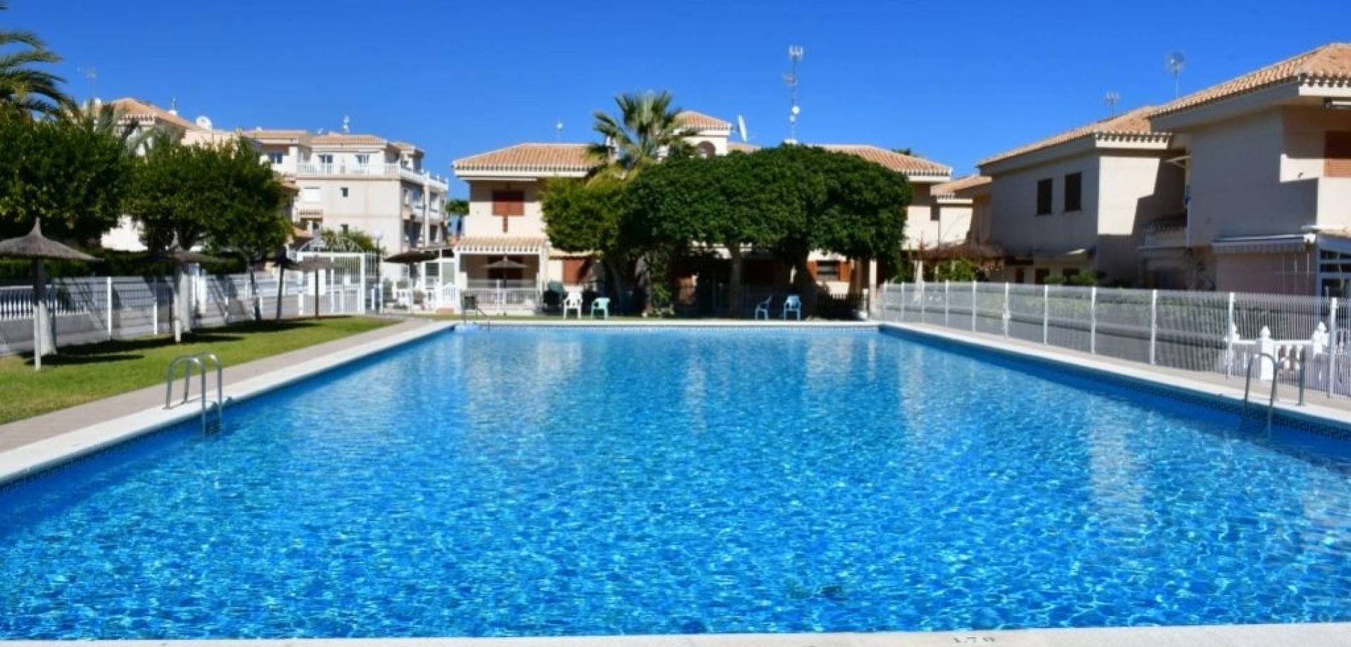 Boligen ligger i et velholdt, inngjerdet område med vakre hager og felles svømmebasseng, i en rolig men sentral beliggenhet, kun få minutter fra alle fasiliteter og det kjente La Zenia Boulevard.