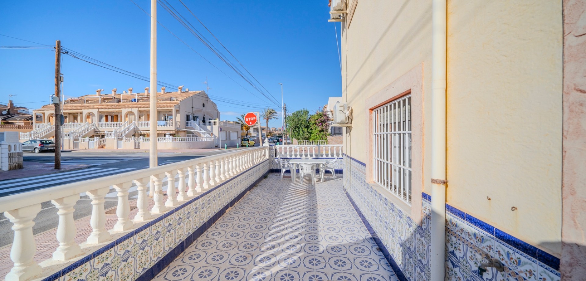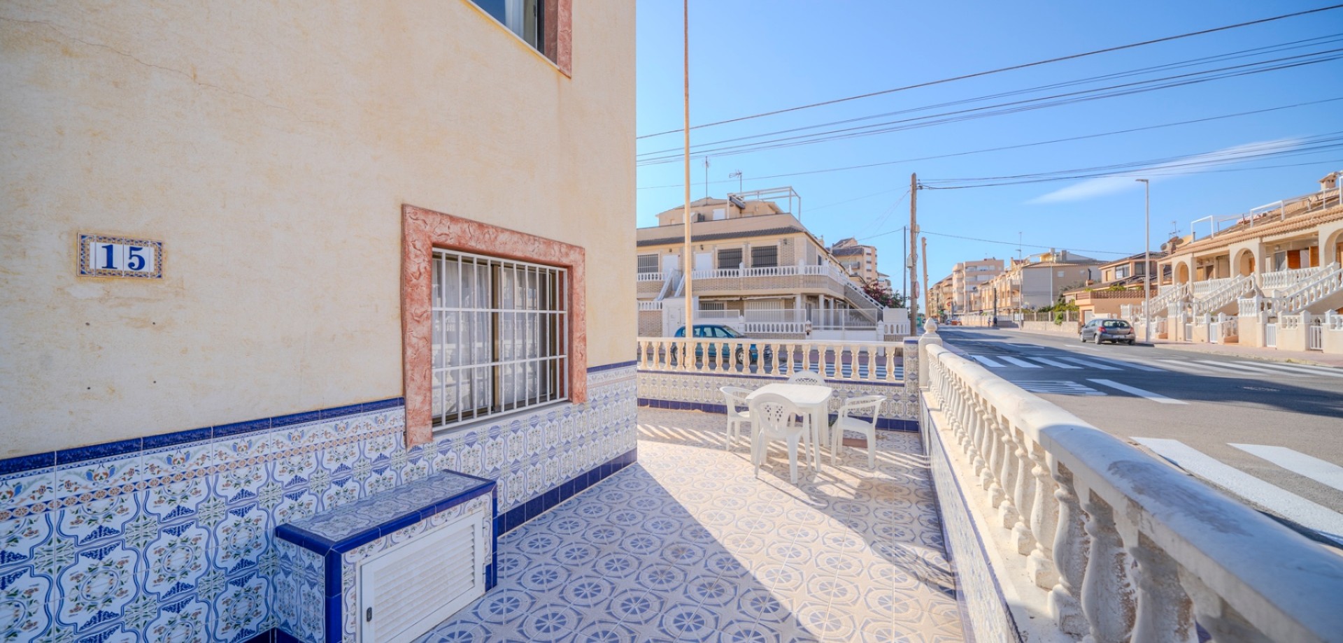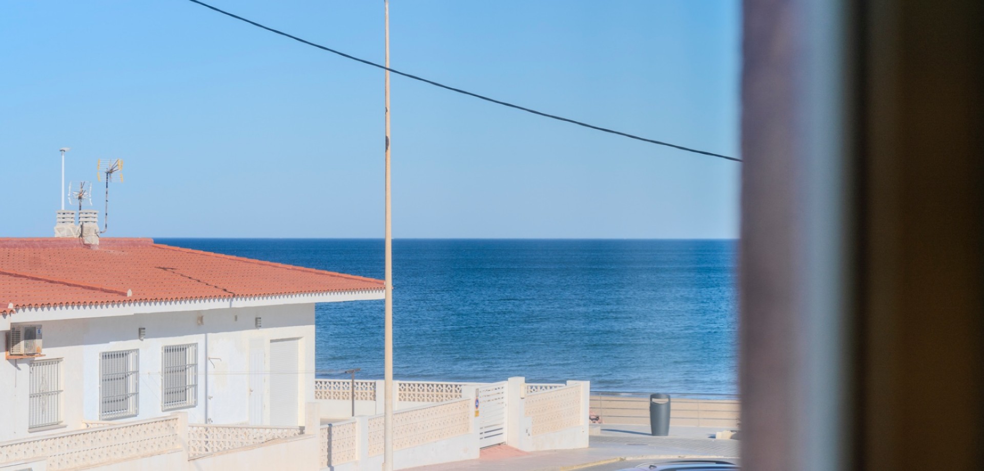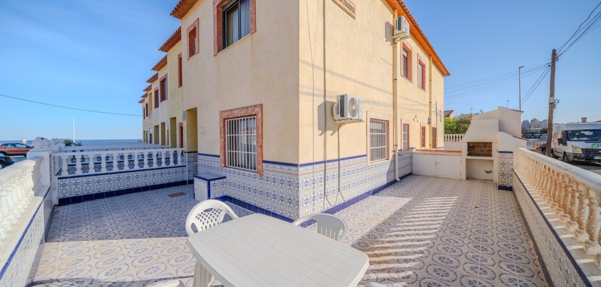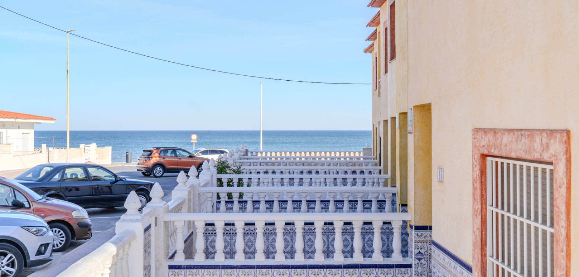 Hjørne rekkehus med havutsikt i La MataEiendommen ligger noen få meter fra La Mata-stranden. Den har 3 etasjer som er fordelt som følger. I første etasje finner vi stue og åpen kjøkkenløsning, samt bad. Huset har uteplass mot øst og nordøst som omkranser eiendommen. I første etasje finner vi to soverom, ett av dem med havutsikt, med innebygde garderober og takvifter. Det er også et bad med dusj og to vasker. I øverste etasje er det en utrolig terrasse med havutsikt.Det ligger i området La Mata, Torrevieja, som har utrolige strender med rikelig med sand og krystallklart vann, sanddyner og fantastiske landskap og naturparken Laguna Rosa de la Mata.Det er også nær alle nødvendige tjenester som busser, barer, restauranter, strender, supermarkeder, skoler, parker, etc.