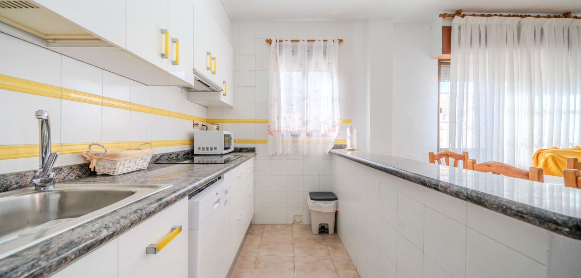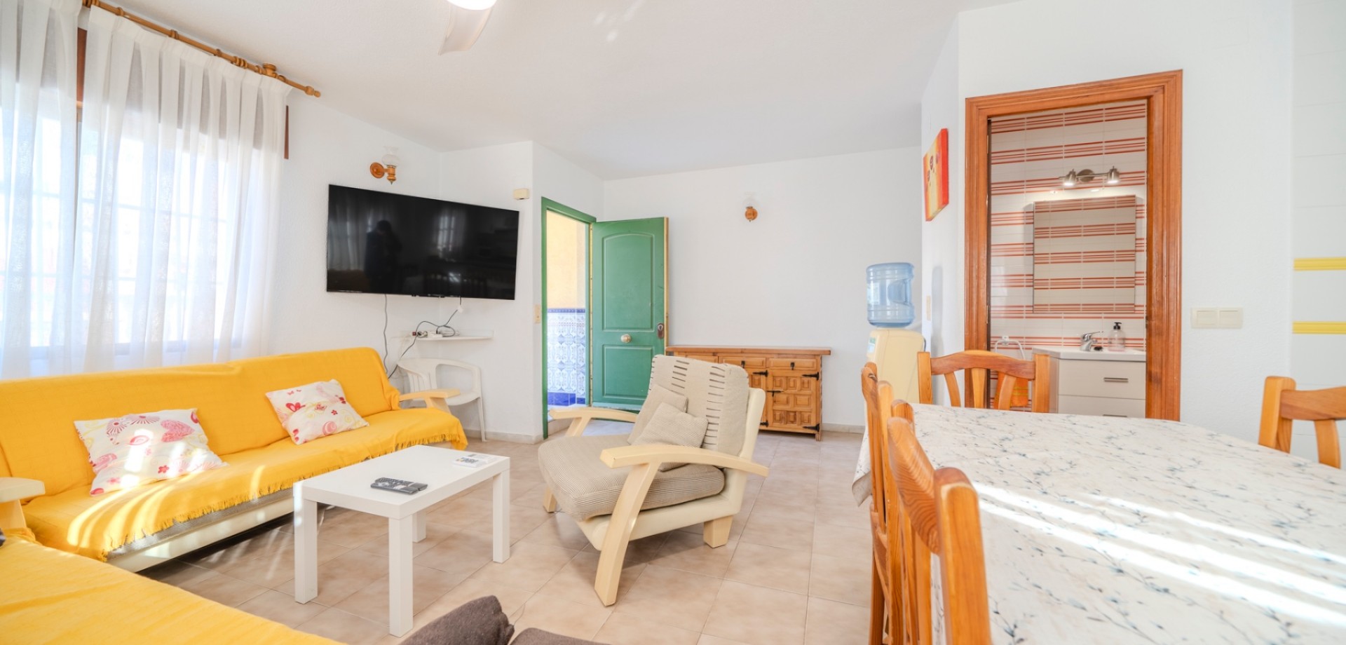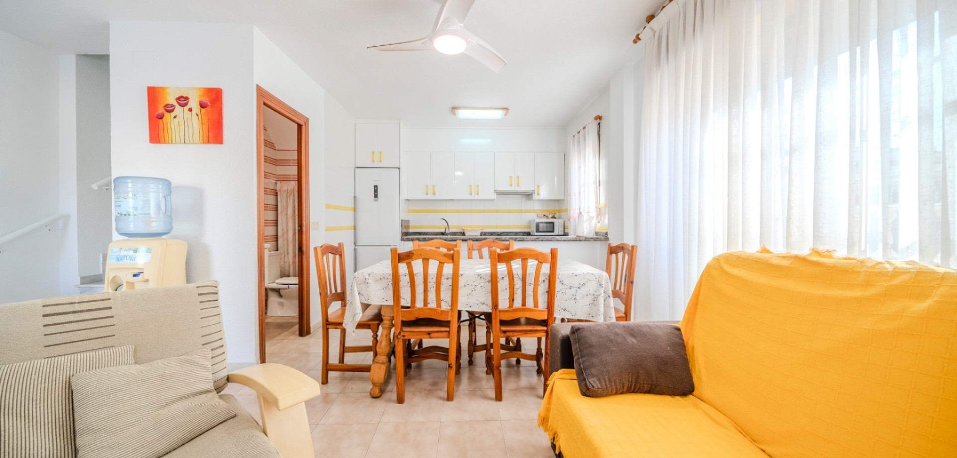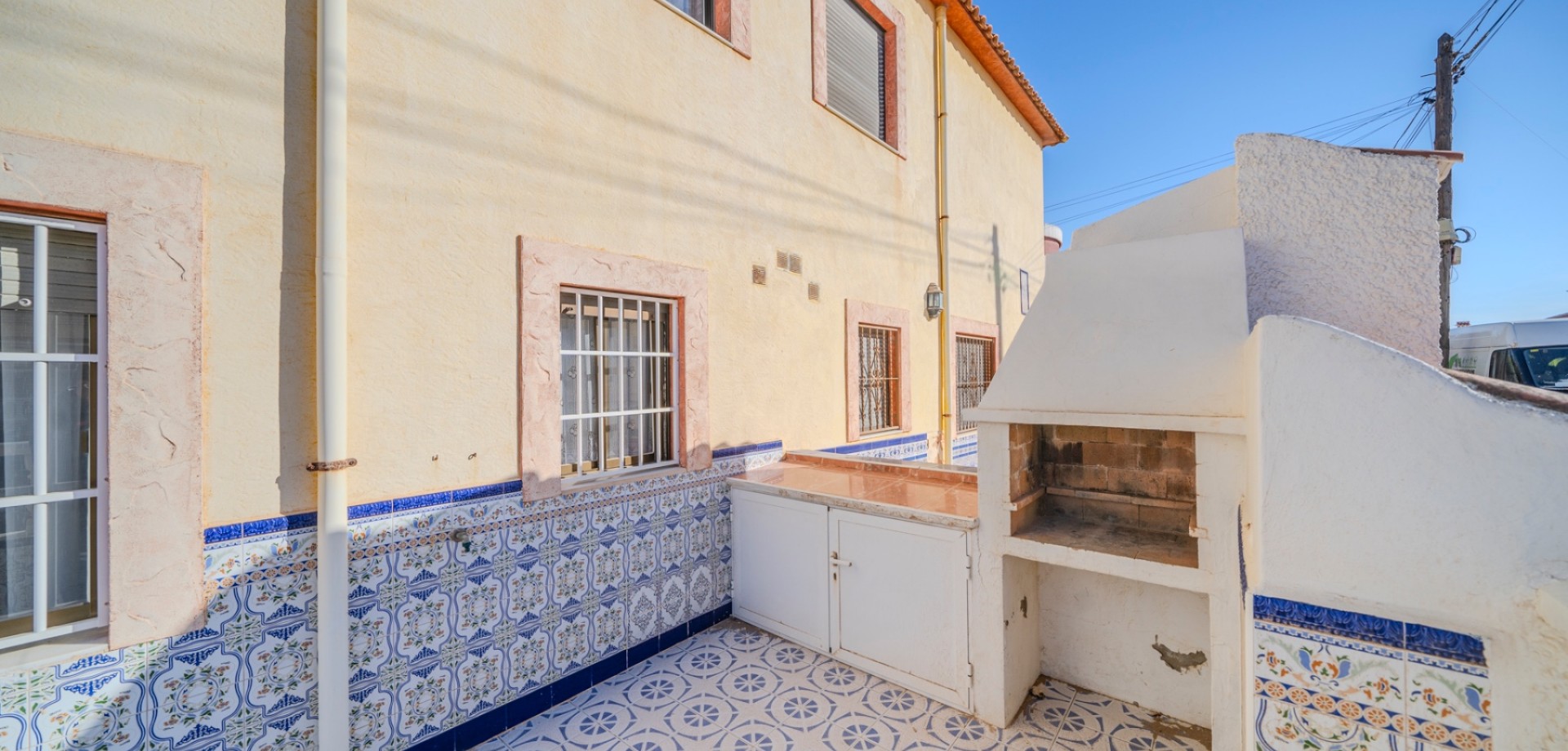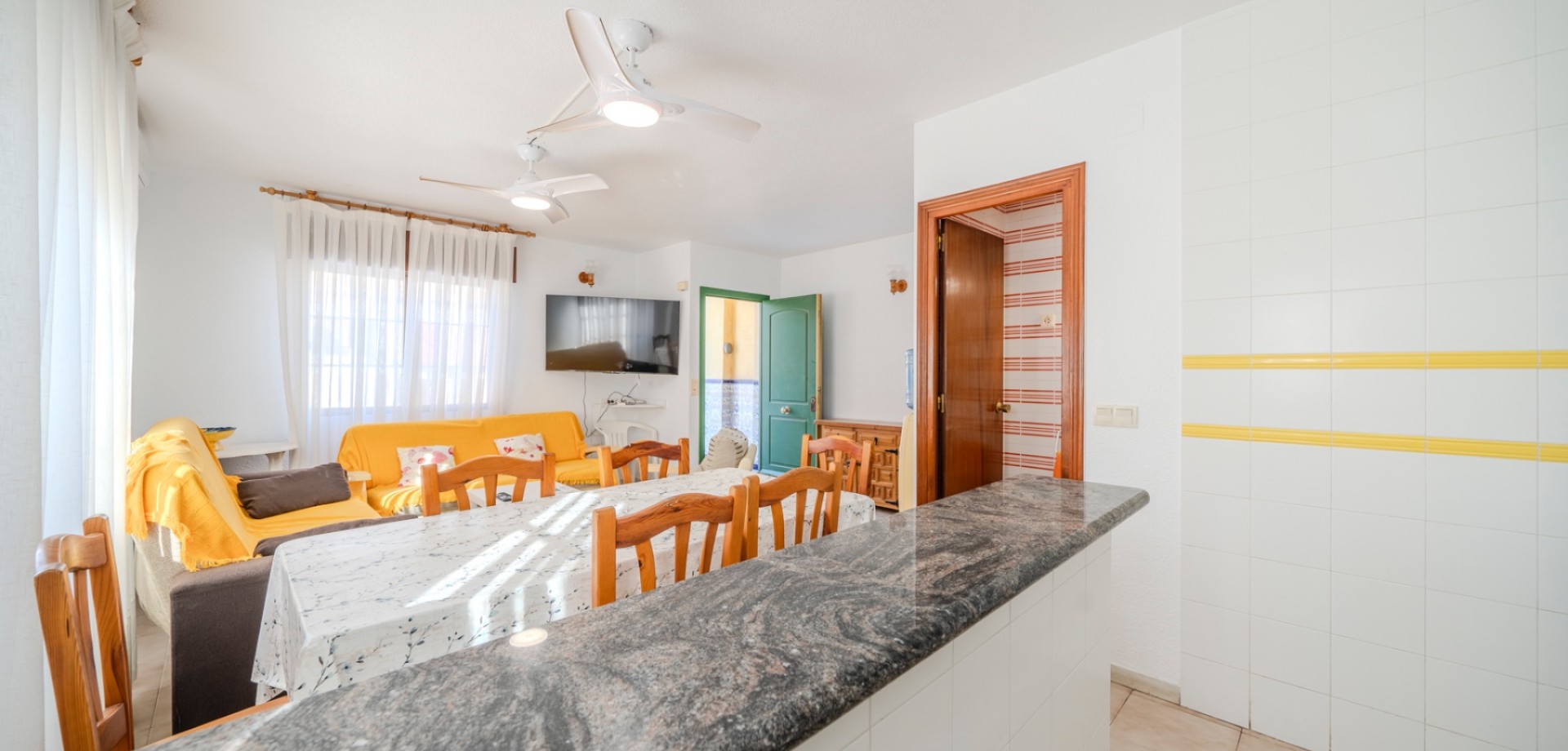 Hjørne rekkehus med havutsikt i La MataEiendommen ligger noen få meter fra La Mata-stranden. Den har 3 etasjer som er fordelt som følger. I første etasje finner vi stue og åpen kjøkkenløsning, samt bad. Huset har uteplass mot øst og nordøst som omkranser eiendommen. I første etasje finner vi to soverom, ett av dem med havutsikt, med innebygde garderober og takvifter. Det er også et bad med dusj og to vasker. I øverste etasje er det en utrolig terrasse med havutsikt.Det ligger i området La Mata, Torrevieja, som har utrolige strender med rikelig med sand og krystallklart vann, sanddyner og fantastiske landskap og naturparken Laguna Rosa de la Mata.Det er også nær alle nødvendige tjenester som busser, barer, restauranter, strender, supermarkeder, skoler, parker, etc.