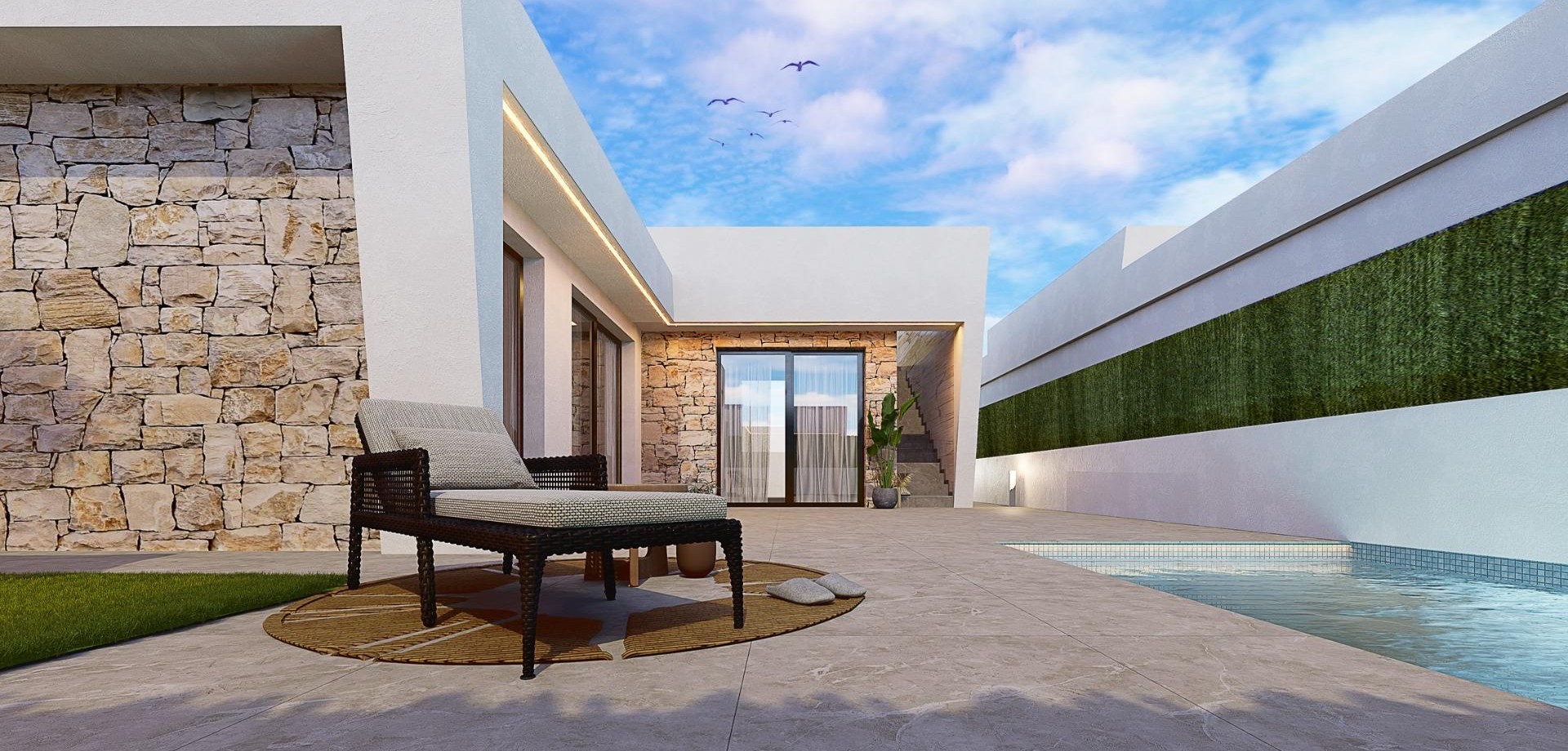 Nowe, niezależne wille z prywatnym basenem i solarium w Roldán, Torre-Pacheco Nowoczesne, parterowe wille o ekskluzywnym projekcie Te zupełnie nowe wille z 3 sypialniami i 2 łazienkami w Roldán, Torre-Pacheco, oferują nowoczesny i ekologiczny projekt, z myślą o komforcie i stylu życia. Każdy dom jest parterowy i posiada przestronny salon z jadalnią oraz w pełni wyposażoną nowoczesną kuchnią, płynnie połączoną z dużymi tarasami i solarium na dachu. Wille zostały starannie zaprojektowane, aby połączyć funkcjonalność i estetykę, z ukośnymi fasadami pokrytymi kamieniem, eleganckimi wykończeniami i dużą ilością przestrzeni zewnętrznej, aby cieszyć się śródziemnomorskim słońcem przez cały rok. Prywatna przestrzeń zewnętrzna i wyposażenie premium Każda willa posiada: Prywatny basen i prysznic na świeżym powietrzu Solarium na dachu z dużą przestrzenią do opalania lub stworzenia strefy relaksu Taras i ogród na parterze Prywatny podjazd do parkowania poza drogą publiczną Pakiet oświetlenia LED do wnętrz i na zewnątrz Wstępnie zainstalowany system klimatyzacji Główna sypialnia posiada łazienkę, a dwie dodatkowe sypialnie dzielą rodzinną łazienkę, wszystkie zaprojektowane z nowoczesnym akcentem i wysokiej jakości wykończeniem. Idealna lokalizacja blisko plaż i pól golfowych Roldán to urocze hiszpańskie miasteczko w gminie Torre-Pacheco, znane z tradycyjnej atmosfery i pełnego zakresu usług, w tym supermarketów, restauracji, placówek służby zdrowia i szkół. Lokalizacja zapewnia bliskość kilku kluczowych atrakcji: Lotnisko Corvera (RMU) – 15 km Plaże Mar Menor i Morza Śródziemnego – 20 km Pola golfowe (La Torre Golf i Las Terrazas de La Torre) – w promieniu 4 km Centrum miasta Cartagena – 32 km Centrum handlowe Zenia Boulevard – 35 km Marina w Los Alcázares – 22 km Niezależnie od tego, czy szukasz domu na wakacje, stałego miejsca zamieszkania, czy też atrakcyjnej inwestycji pod wynajem, ta lokalizacja oferuje łatwy dostęp do atrakcji wybrzeża, obiektów sportowych i udogodnień miejskich. Twoje nowe życie w słońcu czeka Nie przegap okazji, aby stać się właścicielem jednej z tych stylowych nowych willi w Roldán. Skontaktuj się z nami już dziś, aby uzyskać więcej informacji, umówić się na wizytę lub zarezerwować swój nowy dom na Costa Cálida, zanim wszystkie zostaną sprzedane.