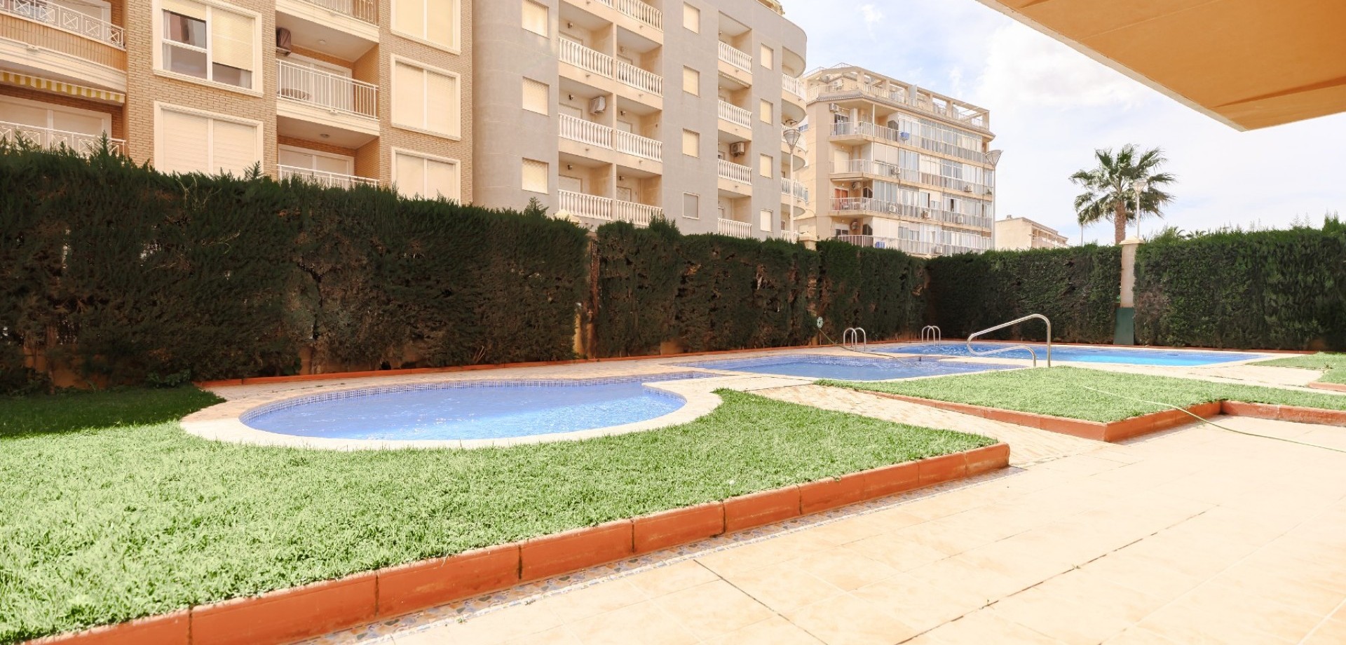 Witaj w tym pięknym budynku architektonicznym i ulicy w Torrevieja, gdzie mamy przyjemność zaprezentować trzypokojowe mieszkanie z widokiem na basen i zaledwie 150 metrów od Playa de los Locos. Główne cechy: 2 przestronne sypialnie: Jedna sypialnia główna z własną łazienką i jedna sypialnia z łóżkami piętrowymi. Kuchnia z wyposażeniem AGD. Salon: Przestronny salon z sofą, szafką RTV i telewizorem. Salon zawiera również przestronną część jadalną. Łazienki: Dwie ładne łazienki z dużą ilością miejsca, z których jedna ma wannę, a druga prysznic. WC, lustra i umywalki są wliczone. Przestrzeń na zewnątrz: Duży, dobrze utrzymany ogród z bezpośrednim dostępem do wspólnej części oraz basenu, idealny do spędzania czasu na świeżym powietrzu. Parking: Łatwe parkowanie tuż przed nieruchomością. Prywatne balkony: Piękny taras z widokiem na wspólny basen i ogród. Doskonała lokalizacja w Torrevieja: To mieszkanie znajduje się w doskonałej lokalizacji na pięknej ulicy Avenida Roentgen, oferując idealną równowagę między spokojem a wygodą. Nieruchomość znajduje się zaledwie 150 metrów od pięknej plaży Playa de los Locos i w pobliżu wielu restauracji, co ułatwia jedzenie na mieście. Niezależnie od tego, czy masz ochotę na lokalne tapas, kuchnię międzynarodową czy świeże owoce morza, każdy znajdzie coś dla siebie. Lokalne udogodnienia: Supermarket w odległości spaceru, zapewniający wszystko, co potrzebne do codziennych zakupów. Zaledwie krótki spacer od nieruchomości znajduje się wiele restauracji i sklepów. Hay muchos restaurantes y cafés populares en la zona, perfectos para disfrutar de una deliciosa comida o de una relajante taza de café. Entorno maravilloso: Torrevieja es famosa por su animado pueblo, lleno de tiendas, cafés y restaurantes, así como por su proximidad al mar y las playas. Aquí podrá disfrutar del sol y de las aguas del Mediterráneo. Hay otras playas a poca distancia en coche si quieres un cambio de aires. Compras y entretenimiento: Torrevieja ofrece muchas opciones de compras y entretenimiento, pero a pocos kilómetros se encuentra el centro comercial Habaneras , que ofrece la mayoría de las tiendas conocidas y una variedad de restaurantes y locales de comida rápida. Un corto trayecto en coche también le llevará al impresionante centro comercial La Zenia Boulevard , uno de los más grandes de la región. Hay muchas tiendas, restaurantes, cafés y atracciones, lo que lo convierte en el lugar perfecto para pasar un día de compras o salir a comer. Una comunidad costera vibrante y relajante: Torrevieja es una comunidad vibrante y amigable que ofrece una amplia gama de servicios y comodidades que hacen la vida más fácil y agradable. La zona está bien conectada con el transporte público, proporcionando fácil acceso a las ciudades y atracciones cercanas a lo largo de Orihuela Costa . Ya sea que desee relajarse en la playa, probar la cocina local o explorar los alrededores, esta propiedad está perfectamente ubicada para aprovechar al máximo todo lo que la vida mediterránea tiene para ofrecer.