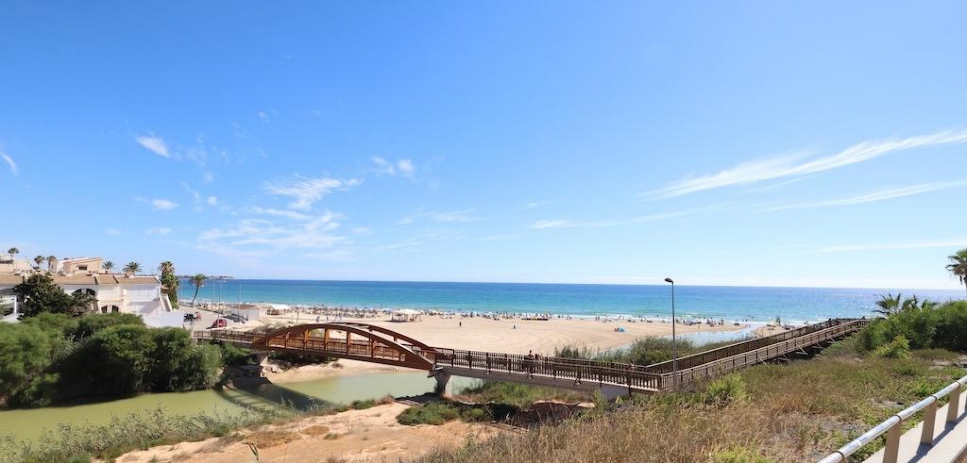 Mil Palmeras – Apartament na ostatnim piętrze z widokiem na morze, zaledwie 150 metrów od plaży. . Położony w ekskluzywnym osiedlu Río Mar XI, ten słoneczny apartament na ostatnim piętrze z ekspozycją południową oferuje uprzywilejowaną lokalizację, zaledwie 150 metrów od morza. Nieruchomość ma powierzchnię 98 m2 i składa się z 2 sypialni, kompletnej łazienki, kuchni typu open space oraz przestronnego salonu z wyjściem na taras z widokiem na morze.. . Do dyspozycji jest również spektakularne prywatne solarium o powierzchni 59 m2, wyposażone w strefę grillową, prysznic, schowek i markizy – idealne miejsce do korzystania z śródziemnomorskiego klimatu przez cały rok.. . Mieszkanie jest sprzedawane umeblowane, z klimatyzacją, dużym miejscem parkingowym w garażu i komórką lokatorską w cenie.. . Osiedle oferuje rozległe tereny zielone, plac zabaw, kort tenisowy oraz piękny basen wspólny z bezpośrednim wyjściem na plażę.. . Świetna okazja jako dom całoroczny, wakacyjny lub inwestycja w jednej z najbardziej pożądanych lokalizacji na Costa Blanca.