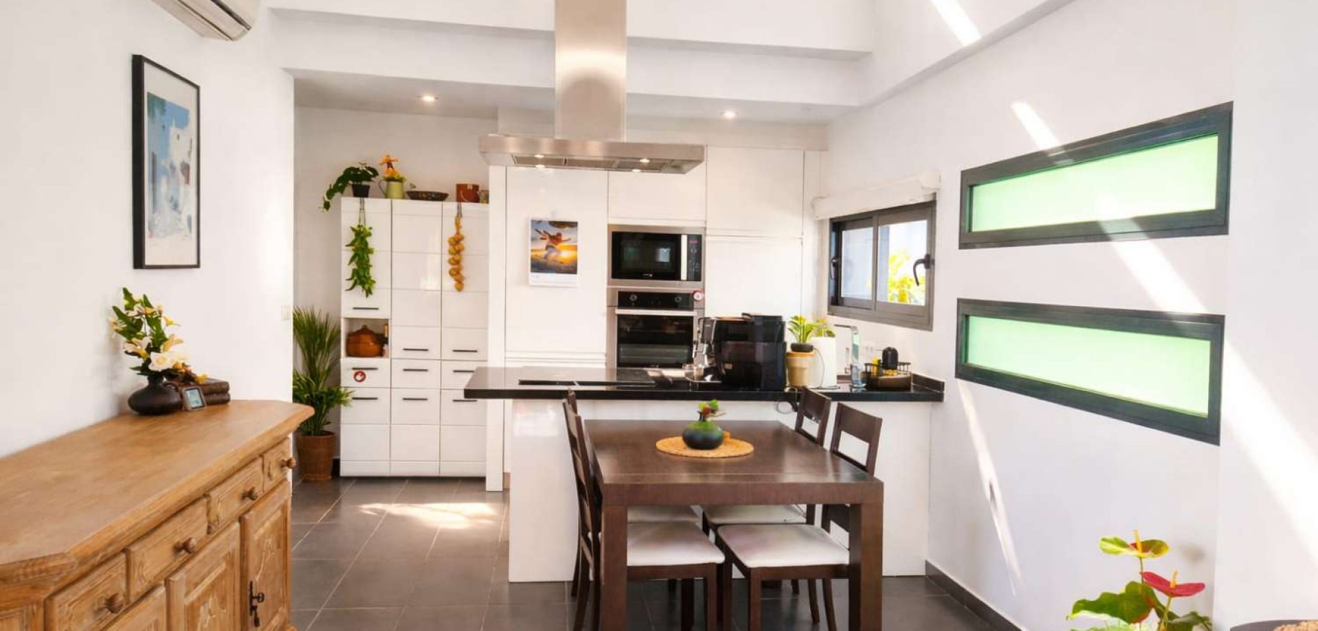 Piękny, narożny dom z 2 sypialniami na cichym, strzeżonym osiedlu w Lomas de Campoamor. Urokiem nieruchomości jest wyjątkowy „domek plażowy” na dachu z bioklimatyczną pergolą i szklanymi zasłonami – do użytku przez cały rok, otwarty latem i przytulny zimą. Jasny salon z widokiem na basen, kilka słonecznych tarasów, w pełni odnowione łazienki i prywatny parking oraz dodatkowa przestrzeń do przechowywania. Wyjątkowy dom o silnym charakterze lifestylowym – niestandardowa nieruchomość. Daj mi znać, jeśli masz klientów poszukujących czegoś wyjątkowego.