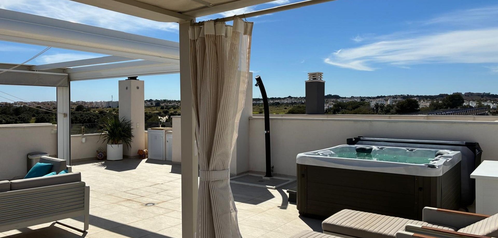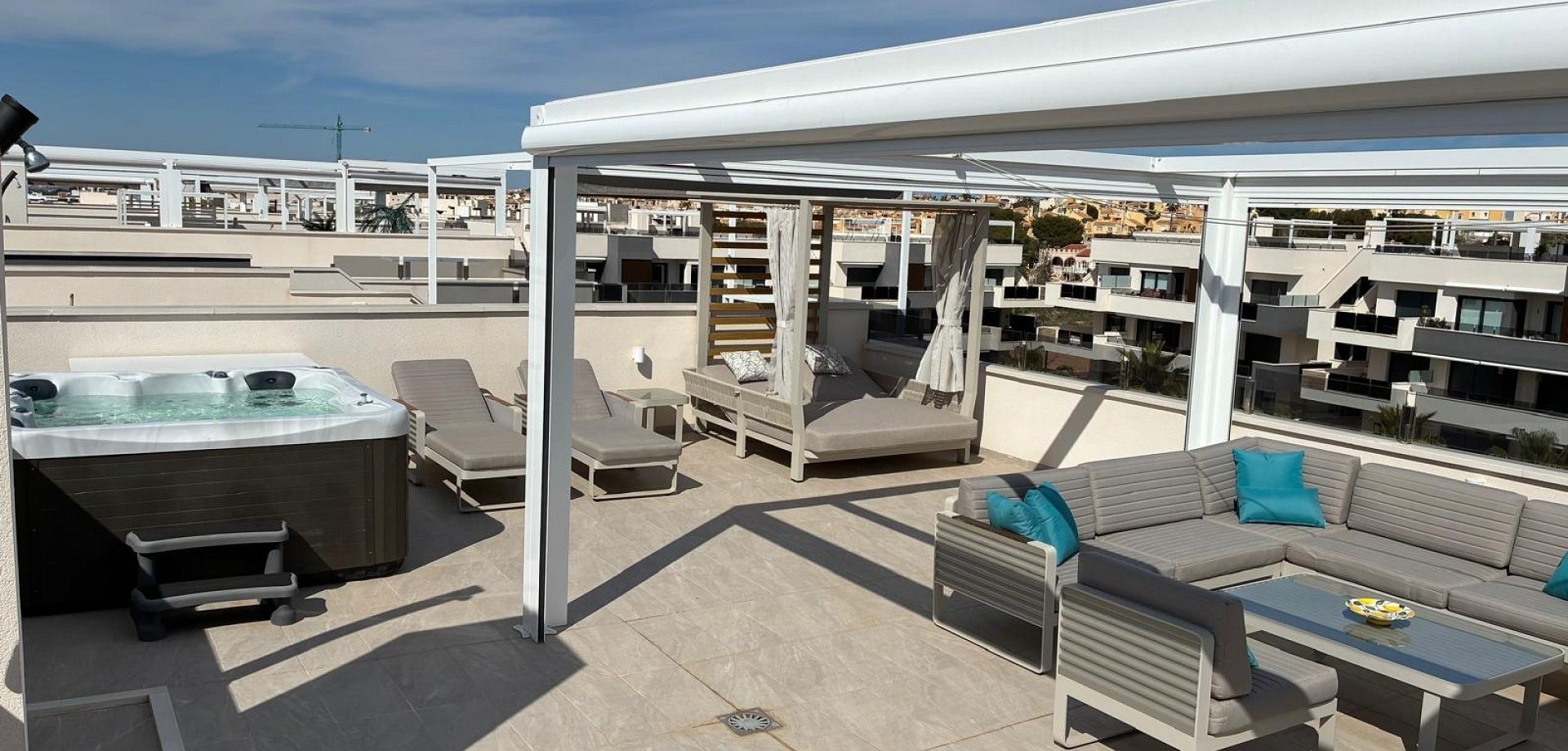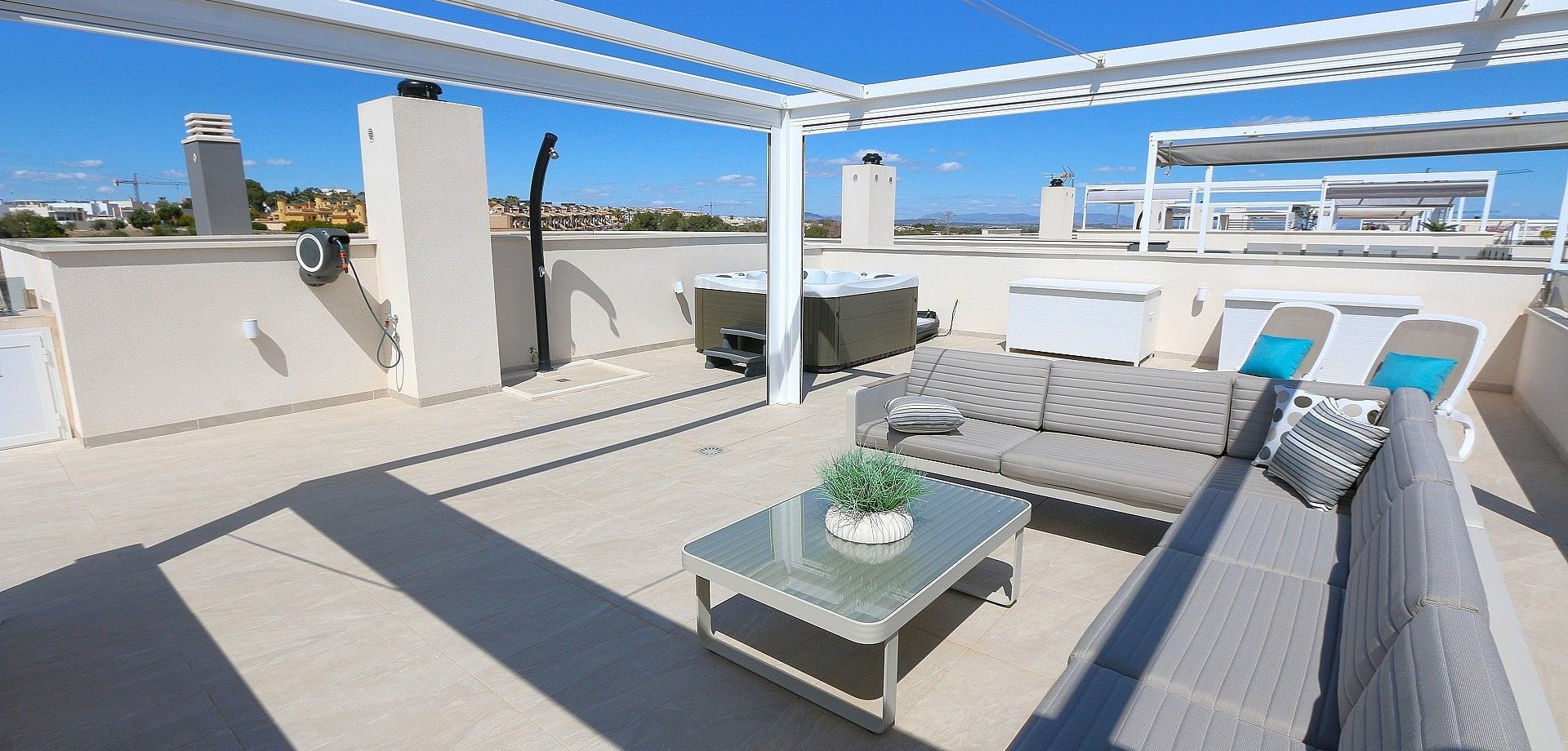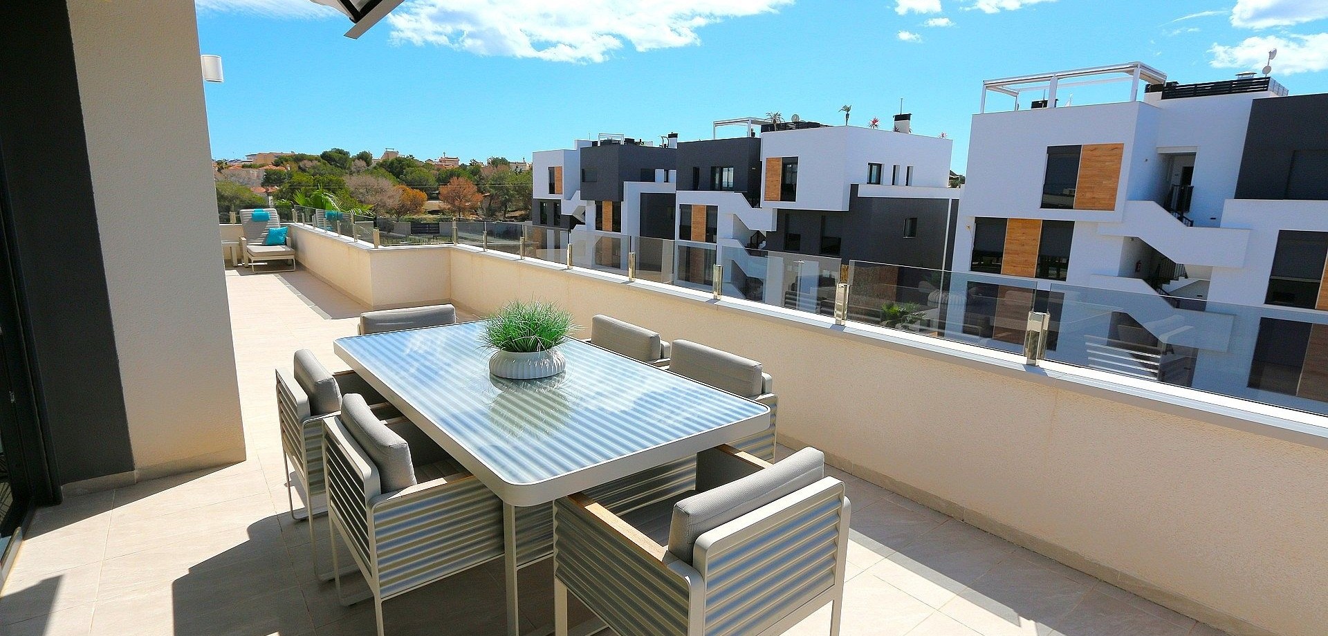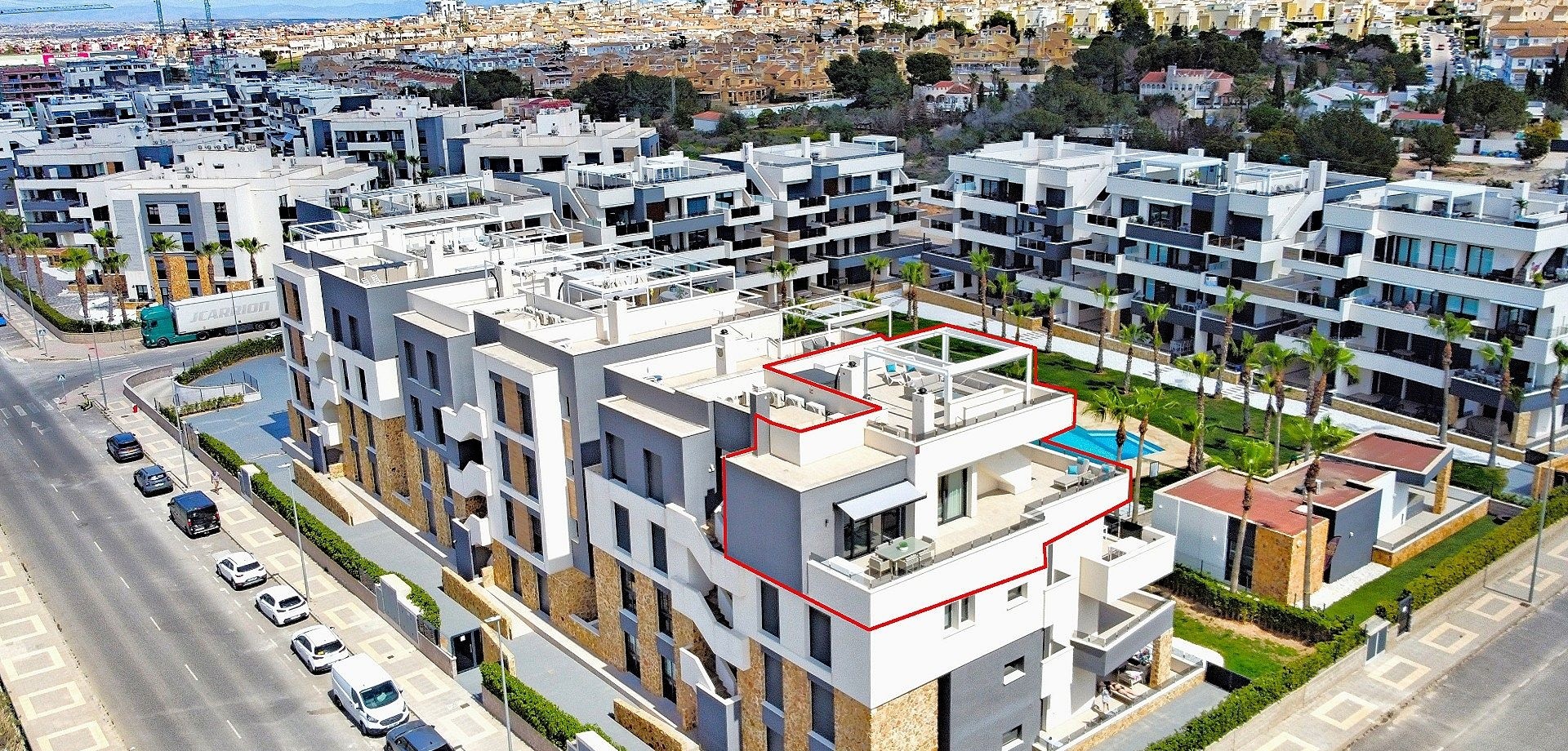 Odkryj ten wyjątkowo jasny penthouse na najwyższym piętrze nowoczesnego kompleksu w Los Altos (Orihuela-Costa) . Tutaj doświadczysz przestrzeni, prywatności i czystego luksusu .