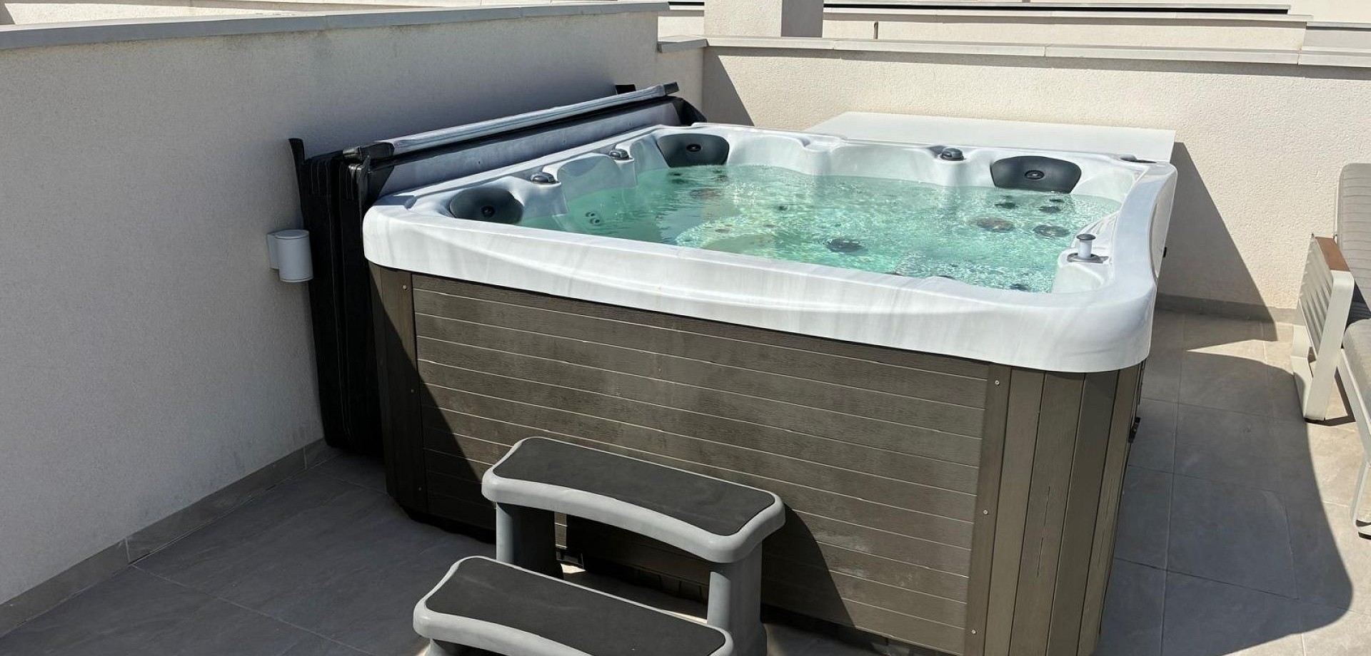 Największą atrakcją jest taras na dachu o powierzchni 91 m², skierowany na południe , częściowo zadaszony i wyposażony w parasole. Ciesz się słońcem przez cały rok, zapierającymi dech w piersiach widokami i własnym jacuzzi !