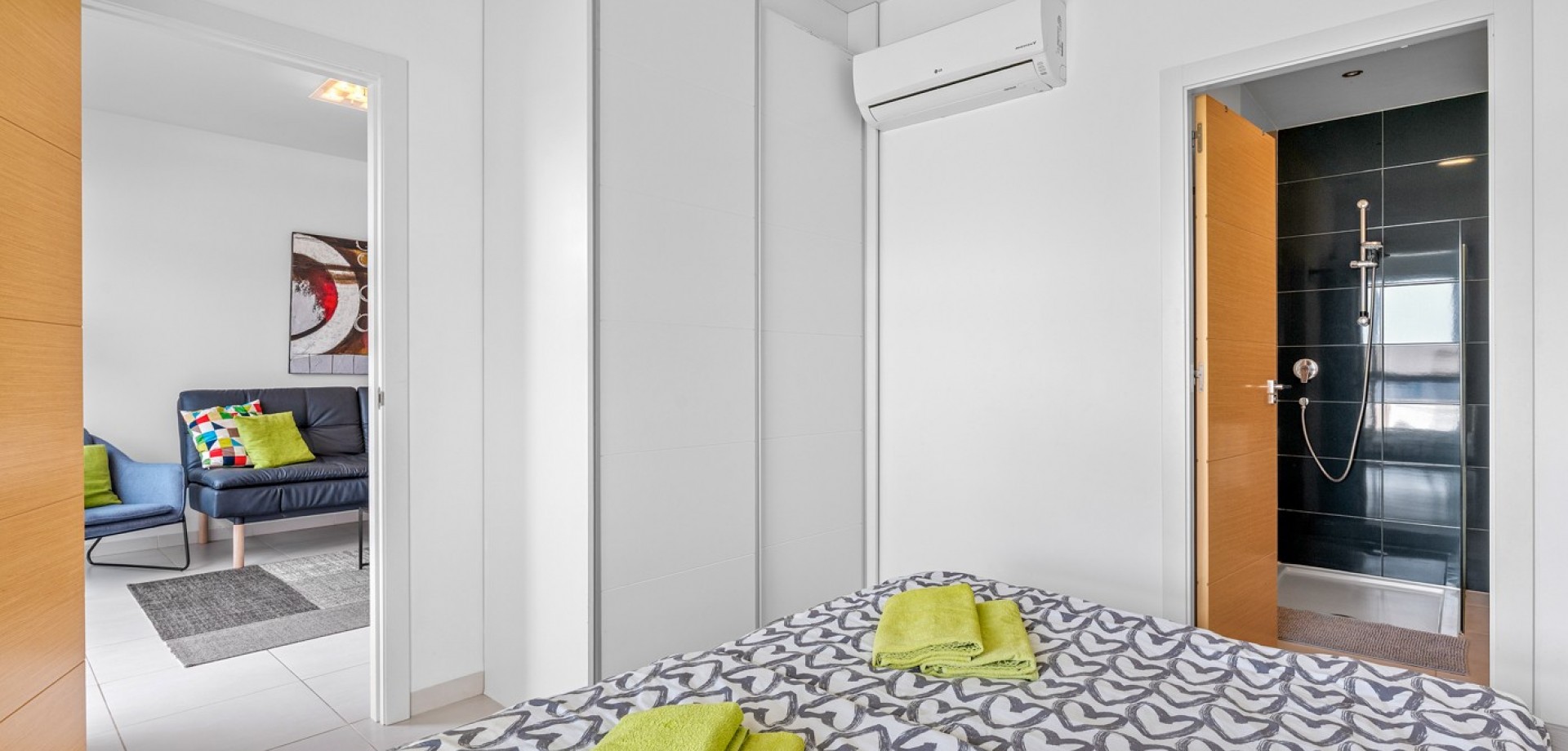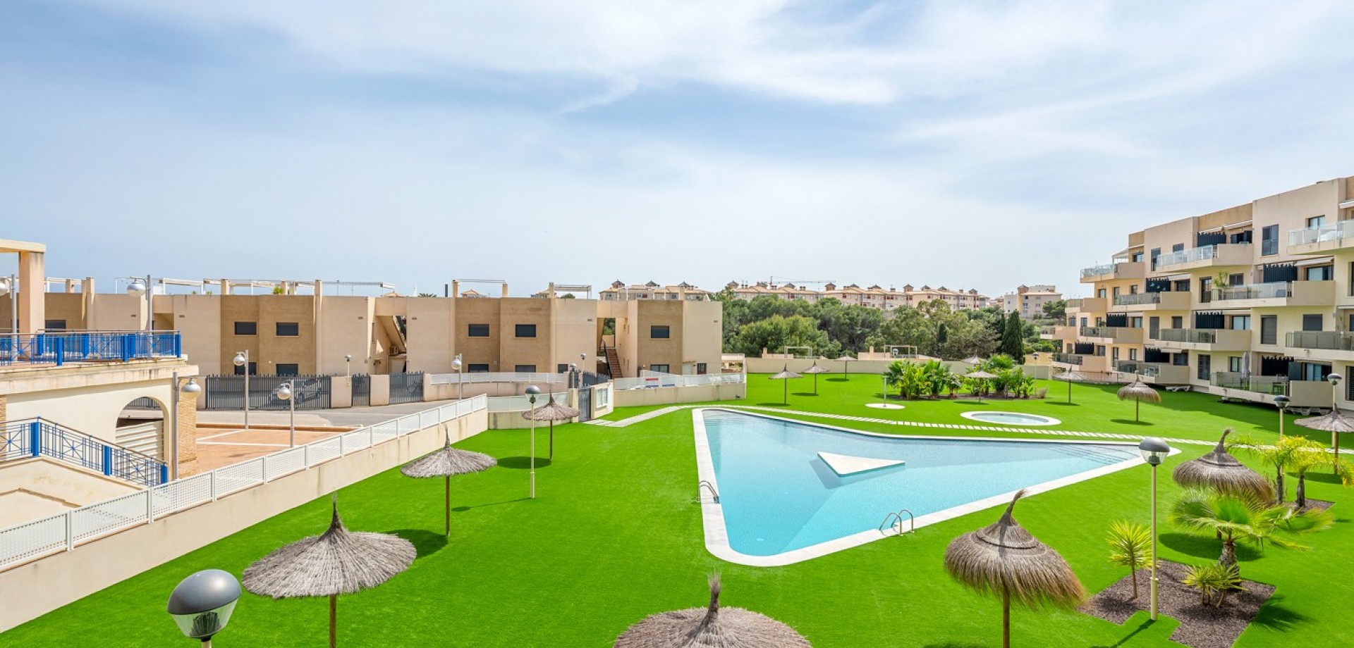 Położony w popularnej dzielnicy La Zenia, ten jasny apartament znajduje się w ekskluzywnym kompleksie Residencial Sabrina, zadbanej rezydencji z wspólnym basenem. Dzięki południowej orientacji nieruchomość cieszy się słońcem i naturalnym światłem przez cały dzień. Apartament (66 m²) oferuje dwie sypialnie i dwie łazienki, w tym jedną typu en suite. Otwarta przestrzeń dzienna z zintegrowaną kuchnią tworzy nowoczesne i komfortowe miejsce do życia. Z salonu wychodzi się na przytulny taras, idealny do korzystania z klimatu śródziemnomorskiego. Nieruchomość sprzedawana jest w pełni umeblowana i wyposażona w klimatyzację, co oznacza, że jest gotowa do zamieszkania. W cenie zawarte jest również miejsce parkingowe oraz praktyczna komórka lokatorska. Dużym atutem jest licencja turystyczna, która obecnie generuje atrakcyjne dochody—idealna jako inwestycja lub drugi dom. Dzięki doskonałej lokalizacji plaże, sklepy i restauracje znajdują się w niewielkiej odległości. Gotowy do zamieszkania apartament oferujący słońce, komfort i wysoki potencjał inwestycyjny.