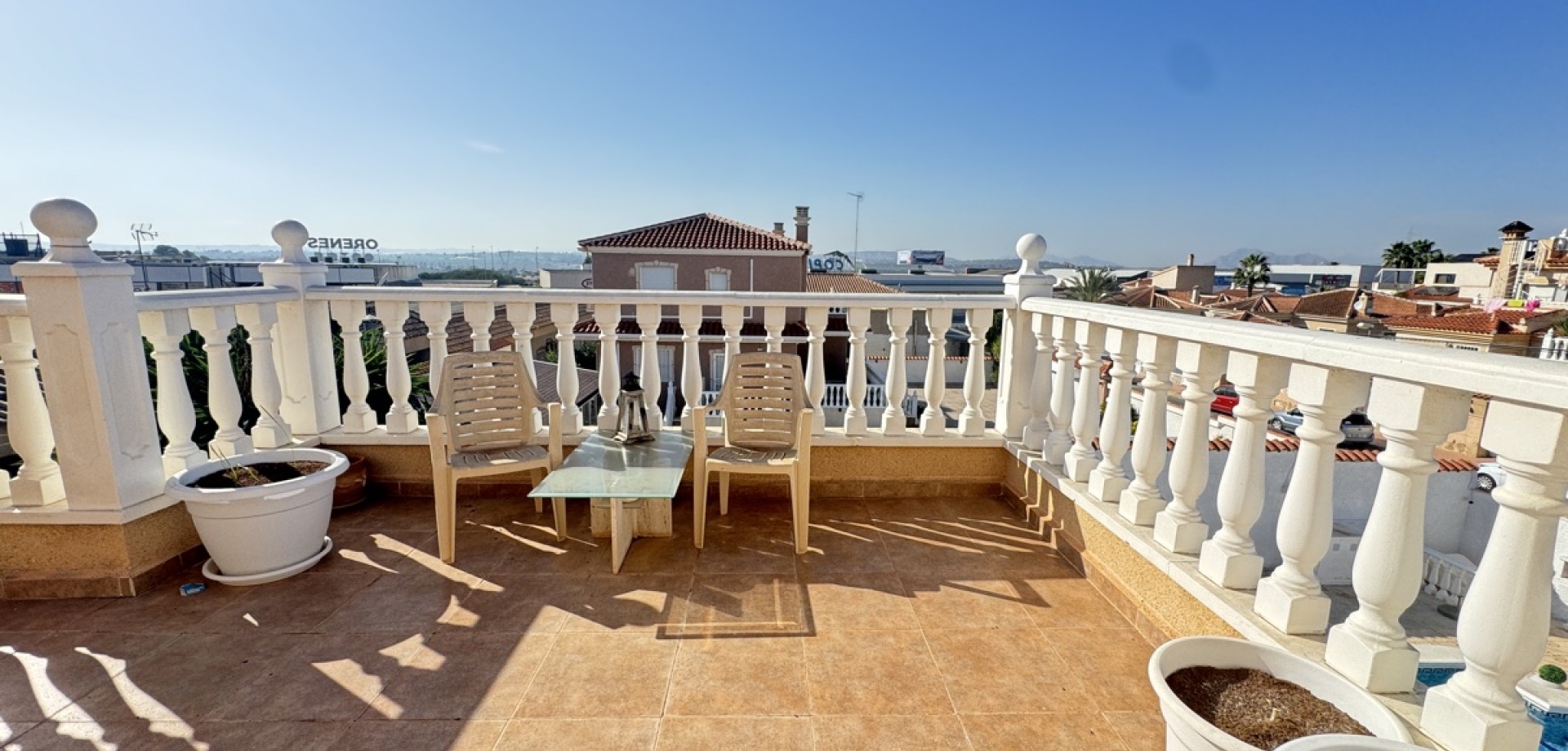 This Large 4 Bedroom Detached Villa spans over 256m2 and is situated on a 625m2 plot. Situated in the centre of Ciudad Quesada you are less than 1min walk to the main high street where you a wide variety of amenities. Entering the grounds of the property you are greeted with a large spacious garden with separate pool and bbq area. A large front terrace offers the option to relax and dine on with then direct access into the front hallway of the house. Once inside you have a wide entrance hall which leads to a spacious modern kitchen with all appliances, on the opposite side you have a separate lounge with seating and dining area. Additional to this there is the 4th bedroom and downstairs bathroom. The 2nd floor houses another 2 bedrooms and large family sized bathroom. Each bedroom offers large terraces ideal for relaxing on. The property then has a large spacious under build which has many options to convert to (once been used as an art gallery). Within the under build is the 4th bedroom and a selection of alternative rooms. To fully appreciate the property we recommend viewings. Extras include - Oil central heating system, and air conditioning throughout. For more information or to arrange a viewing Contact us today!