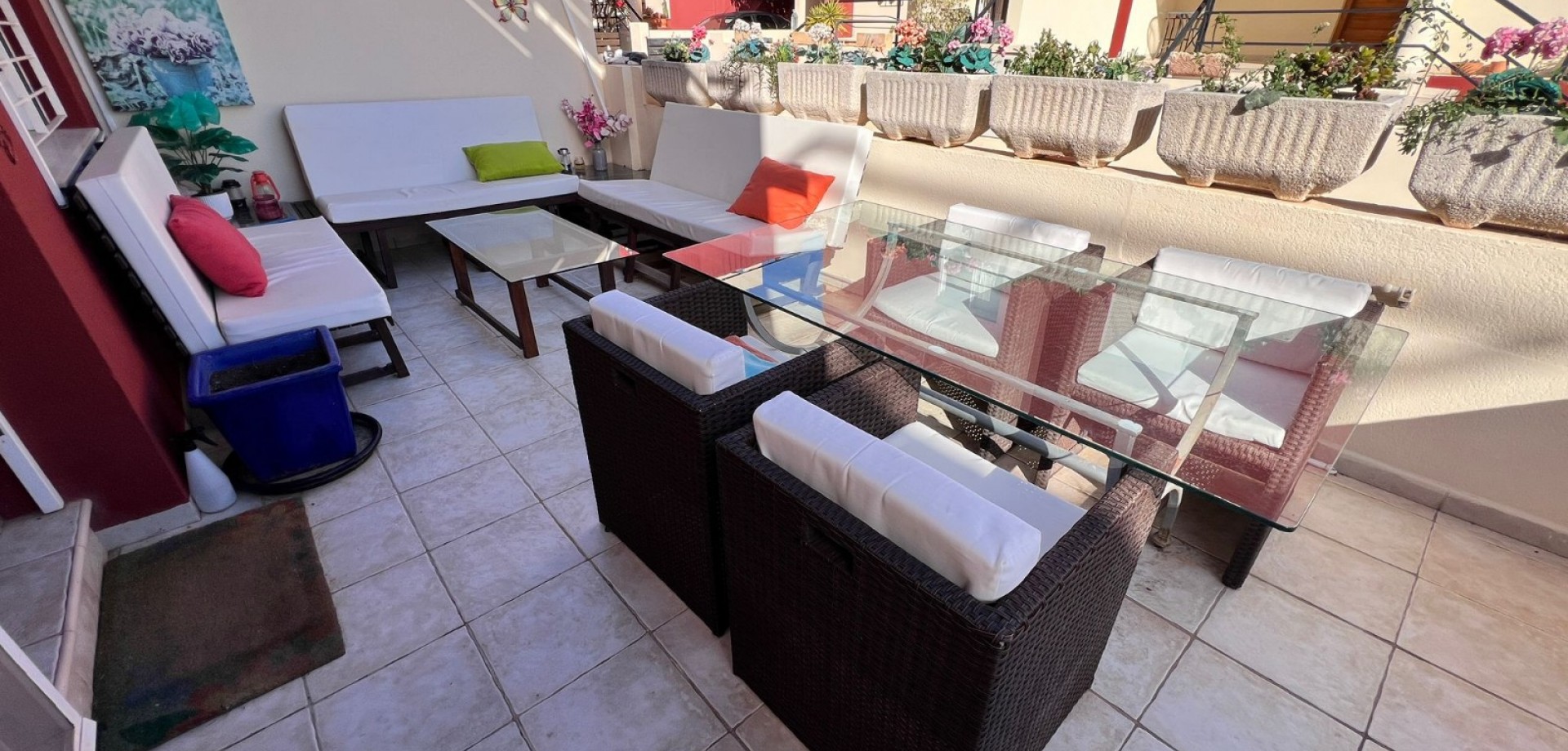 The property is part of a community, where you can enjoy access to a communal swimming pool. The kitchen is independent, and there is ample storage space, including a separate storage room. For added comfort, the house is equipped with air conditioning and has a laundry area.