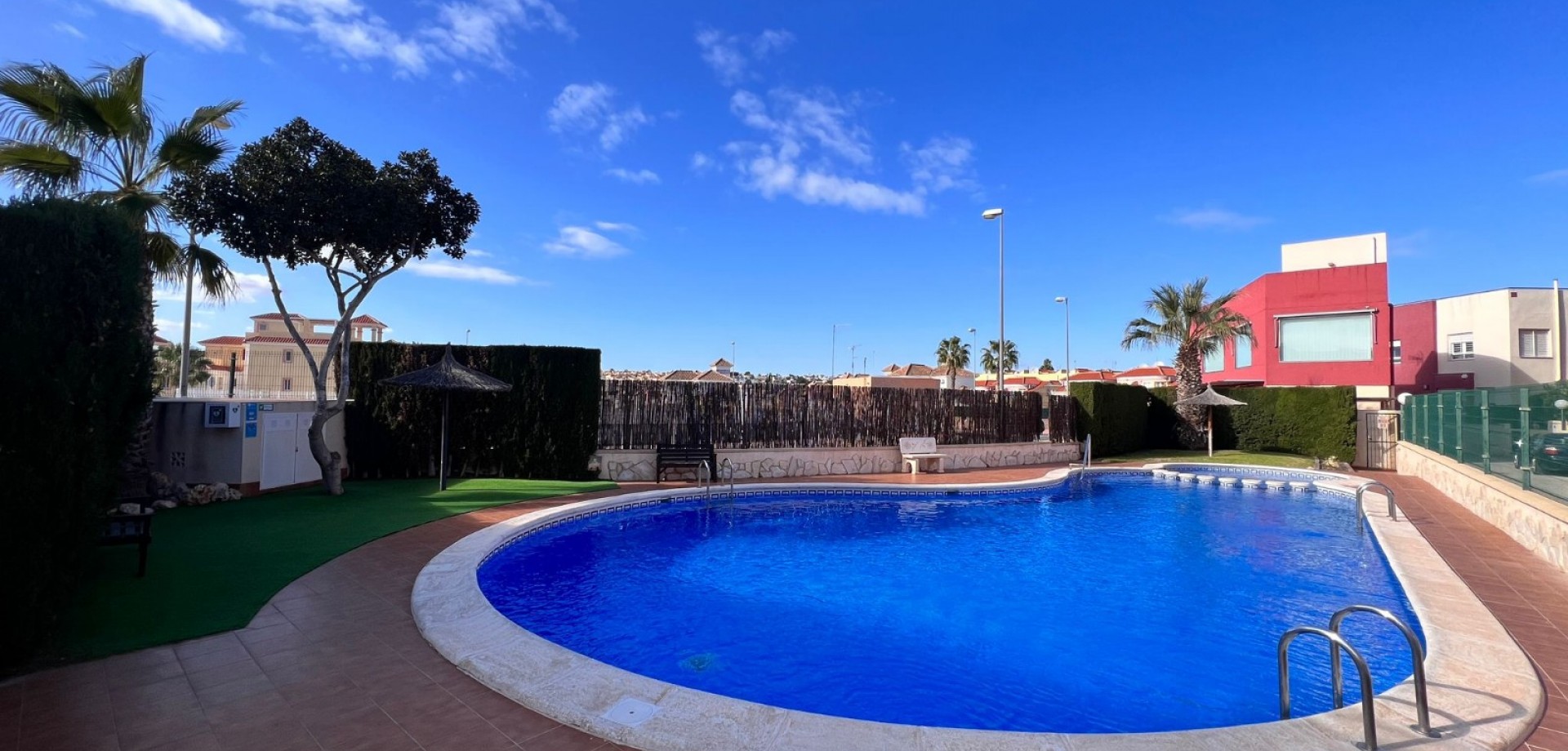 This semi-detached house is located in Orihuela Costa, offering a comfortable and convenient living space. With two bedrooms and two bathrooms, it provides a functional layout across 77.94 square meters of built area. Additionally, there is the option to create a third bedroom, adding even more flexibility to the space. The house is in overall good condition and is oriented to the east, ensuring plenty of natural light throughout the day.