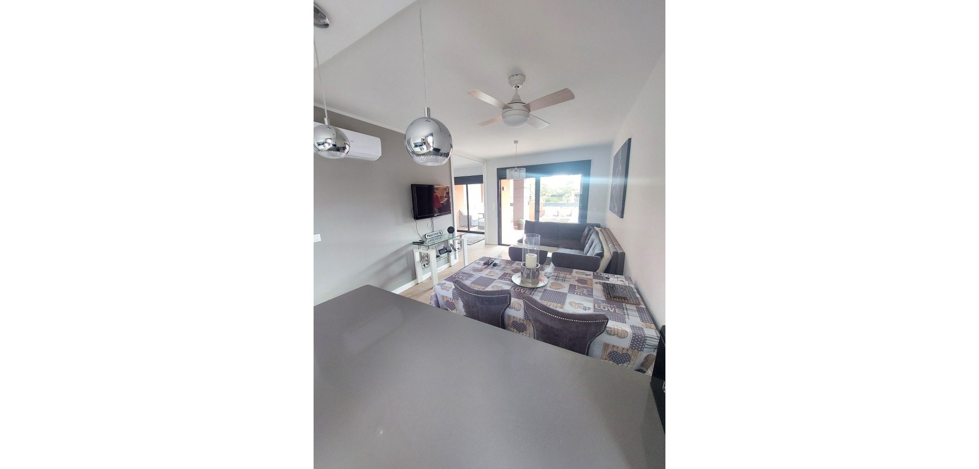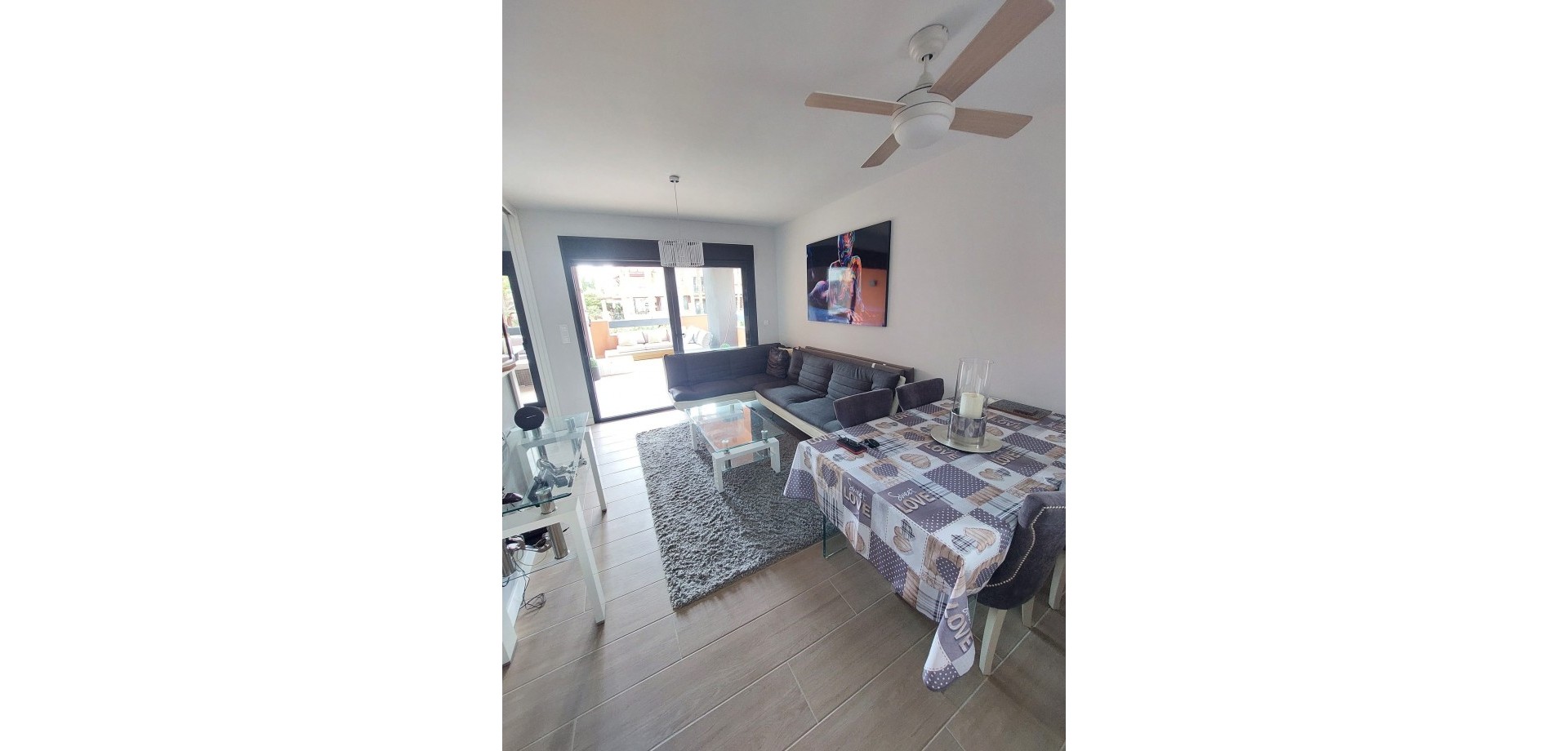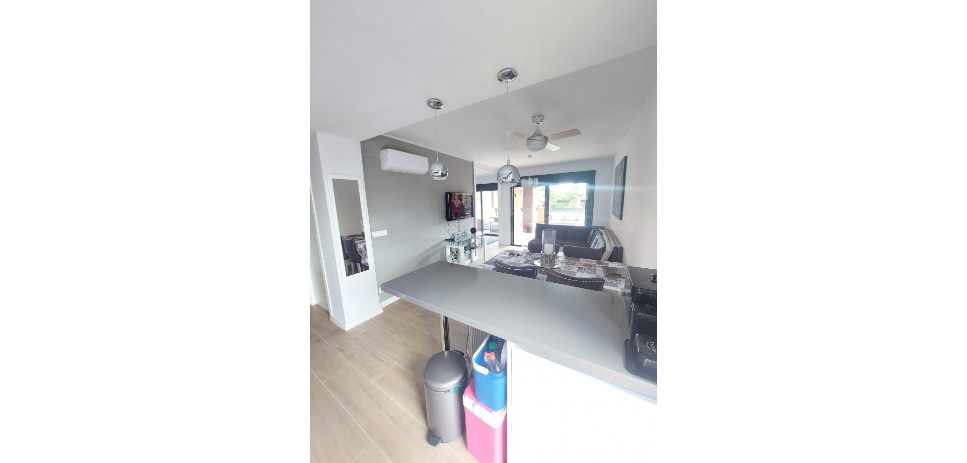 We are delighted to present to the sales market this almost new, resale, modern apartment located just a short walk from Villamartin Plaza, in the beautiful complex ‘Palapa Golf’. This attractive development, painted in a distinctive orange hue, is ideally situated beside Villamartin Golf Course, making it perfect for golf enthusiasts, while still offering easy access to the shops, restaurants, and amenities of the plaza. The complex offers residents a large communal swimming pool, private gated parking, and the convenience of a lift, ensuring easy access to all floors. The communal areas are well-maintained, creating a welcoming and secure environment. Inside, the apartment features two double bedrooms, one of which includes an en-suite shower room leading directly to a practical utility/storage room. There is also a family bathroom, both equipped with underfloor heating for added comfort. The spacious open-plan living, dining, and kitchen area opens onto a remarkably large terrace, perfect for relaxing, entertaining, or enjoying the sunny Costa Blanca climate. The property also benefits from air-conditioning throughout, ensuring comfort all year round. Sold partly furnished, this apartment is in pristine condition, having seen very little use since construction. Its excellent condition makes it an ideal holiday home, permanent residence, or rental investment, with strong potential for return given its location near Villamartin Plaza and the popular golf course. If you are searching for a modern, stylish apartment close to Villamartin Plaza, look no further. This property combines comfort, convenience, and style in one of Costa Blanca South’s most sought-after locations, offering an exceptional lifestyle opportunity or investment potential.