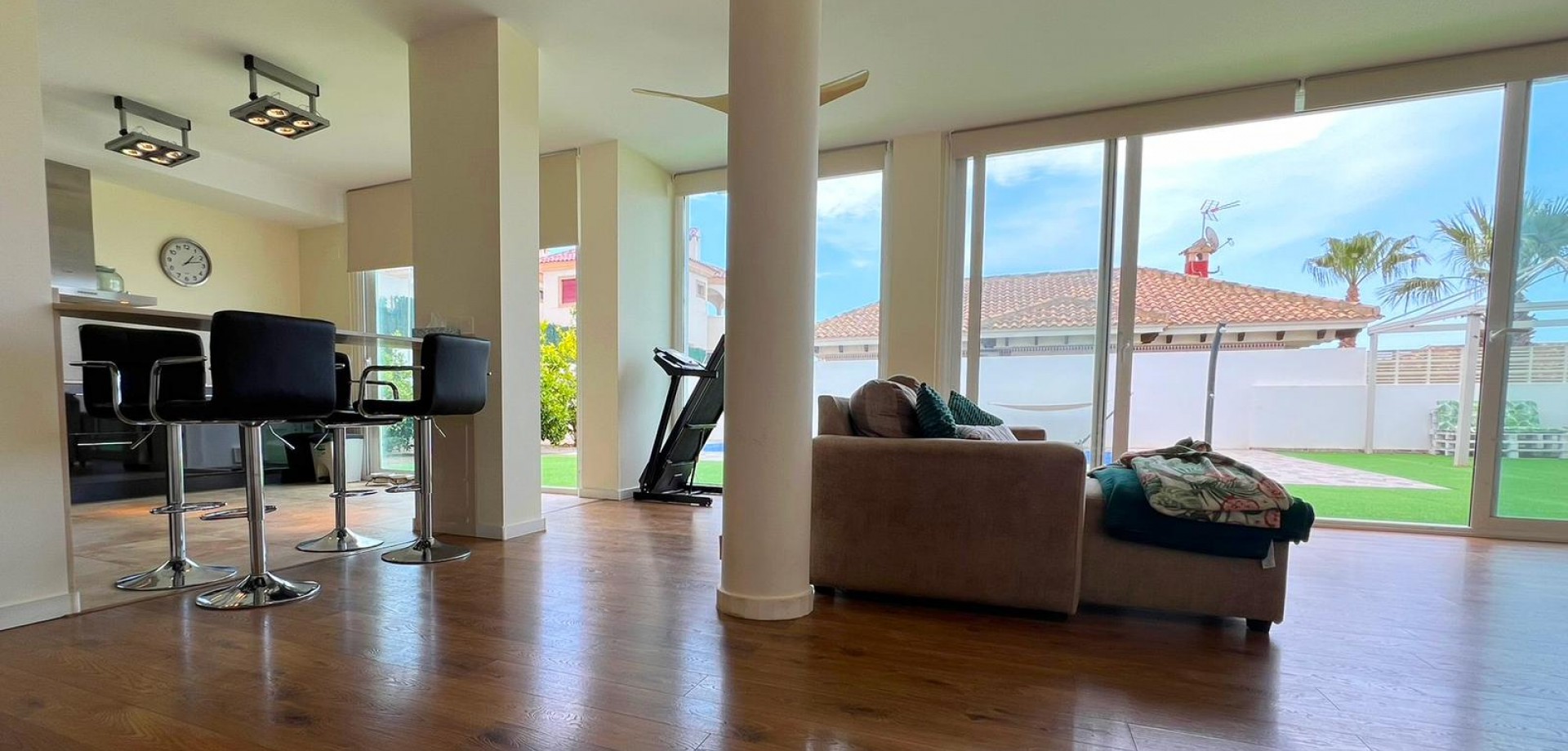 Modern Detached Villa in La Marina, San Fulgencio This contemporary villa, with a modern design, boasts 322 m² of built area on a 585 m² plot. Spread across two floors plus a basement, this property provides everything needed to enjoy an exclusive lifestyle. On the main floor, you'll find an elegant entrance hall, a spacious living-dining area with direct access to the private 32 m² pool, an open-plan kitchen with a breakfast bar, 1 bedroom, and 1 bathroom. The upper floor offers 3 bedrooms, 2 bathrooms, and a large 24 m² terrace, perfect for relaxing or soaking up the sun. The basement includes 3 additional bedrooms, 1 bathroom, a laundry room, and a multifunctional space adaptable to your needs. The property also features an underground garage, ideal for multiple vehicles. Key Features: 7 bedrooms and 4 bathrooms across 3 floors 585 m² plot with a private 32 m² pool East-south orientation 24 m² upper-floor terrace Underground garage 111 m² basement Expenses: IBI: €1,135/year An exceptional villa designed for comfort and luxury.