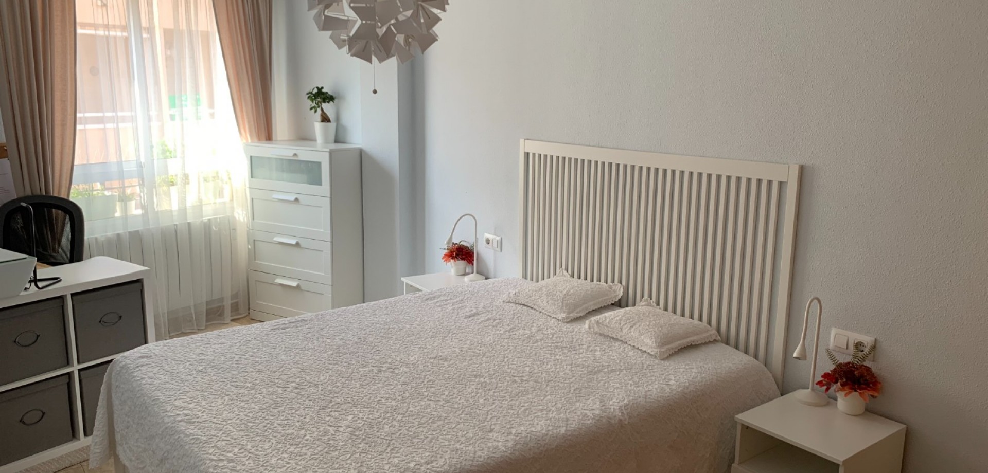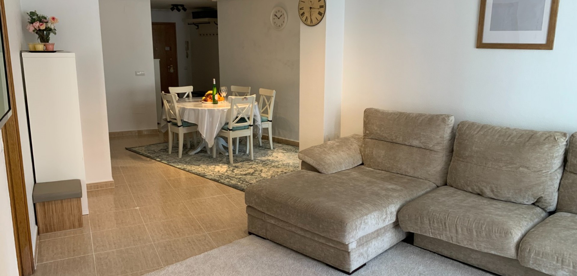 For sale apartment of three bedrooms and two bathrooms. Very sunny and cozy, good condition. It is delivered with everything that completely furnished, independent kitchen, equipped with appliances. Installed air conditioning (hot/cold), heating radiators. A spacious living room with access to the terrace. All bedrooms have large size.Double bedroom has its own bathroom, built-in wardrobe and an office-corner creating a comfortable area to work from home.Building well maintained, has several elevators, common areas in very good condition, well maintained by the community of neighbors.Located in a central area, with all services next door. Beach about 900 m. It is a recommended house to live both on holidays and throughout the year.