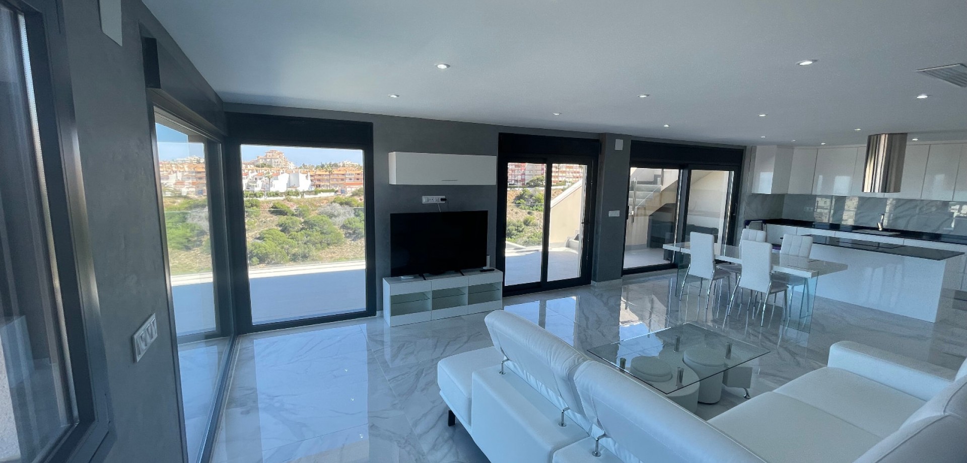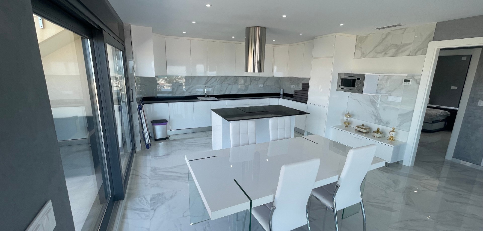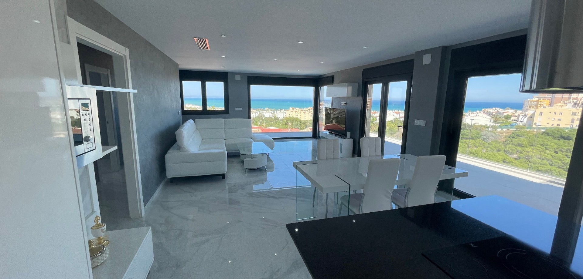 A semi-detached house with a private pool, all nearly new, recently built, stunning views, near La Mata beach in Torrevieja, independent access to the first-floor house. The house has two separate units. 2 fully equipped kitchens, sold furnished, has a spacious garage.