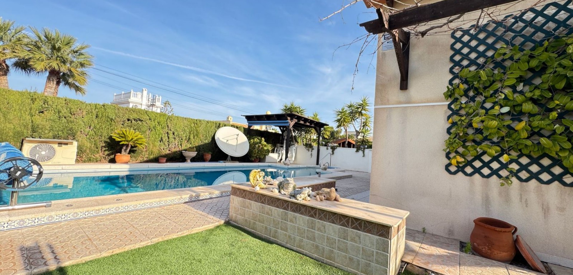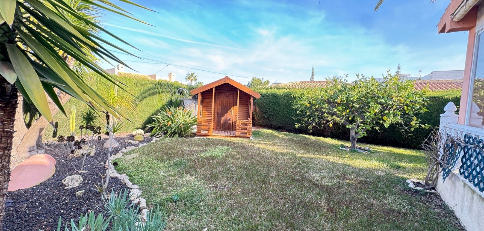 This impressive 3 Bedrooms,2 Bathrooms Detached Villa is located in the sought after area of Cabo Roig. Just minutes walk from the sandy beaches and endless amenities. The property is situated on a 804m2 plot and offers a 178m2 build all on one level. With mature gardens surrounding the property, a drive way, garage and large heated private pool. The property is in its original condition and ready to move into. For more information or to arrange a viewing Contact us today!