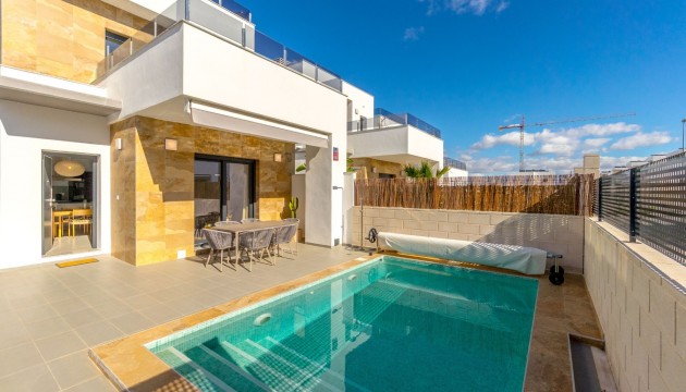 This stunning villa is in perfect condition and offers a contemporary design that prioritizes comfort and style. The open-concept living and dining area, along with a modern kitchen, creates a welcoming space that's ideal for both everyday living and entertaining guests.On the ground floor, you'll find a spacious bedroom with built-in wardrobes, accompanied by a full bathroom for added convenience. Upstairs, a charming landing leads out to a small terrace, an ideal spot to enjoy your morning coffee or relax in peace.The second bedroom is generously sized and comes with its own elegant en-suite bathroom. At the end of the hallway, the master bedroom provides a luxurious retreat, complete with an en-suite bathroom and direct access to a private terrace. This sun-filled space is perfect for unwinding and soaking up the beautiful Mediterranean climate.The villa is equipped with air conditioning and is move-in ready, ensuring you can enjoy comfort and quality from day one.Nestled in the heart of the Costa Blanca, Benijófar is a charming and well-connected town in the province of Alicante. With its laid-back Mediterranean atmosphere, Benijófar strikes the perfect balance between traditional Spanish character and modern amenities. Just a short drive from the stunning beaches of Guardamar and Torrevieja, and with all essential services—such as supermarkets, restaurants, cafés, and pharmacies—within walking distance, it's an ideal destination for both year-round living and holiday getaways.