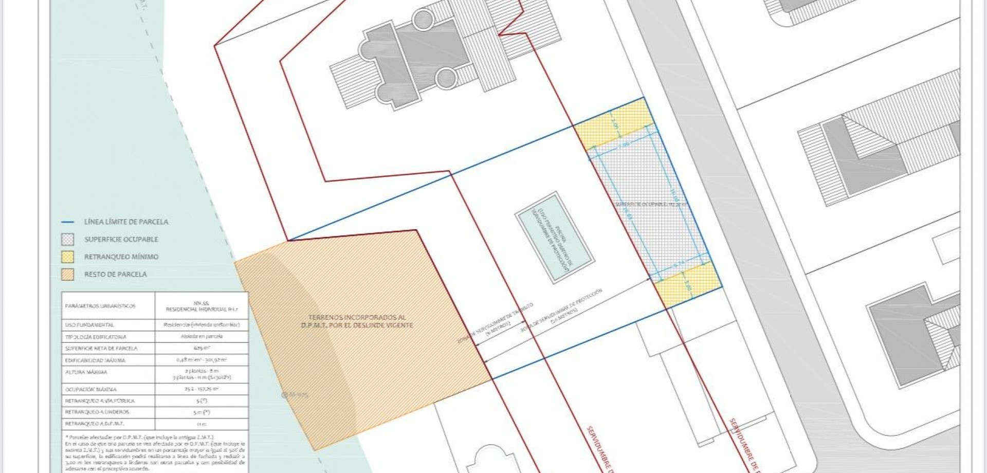 La Manga del Mar Menor, a 629 m2 plot facing the sea with its own beach, is suitable for the construction of a single-family home with a 157 m2 two-story house.