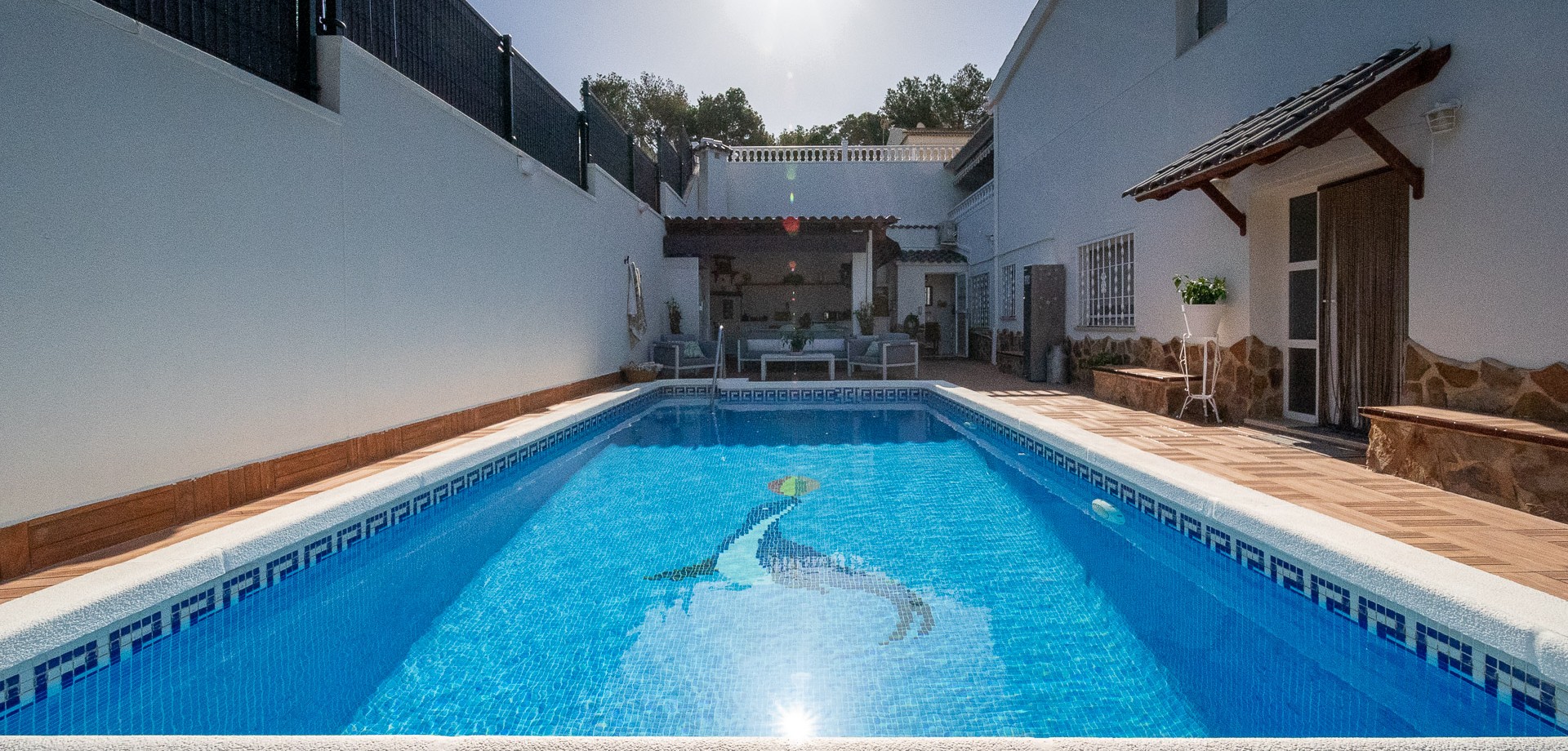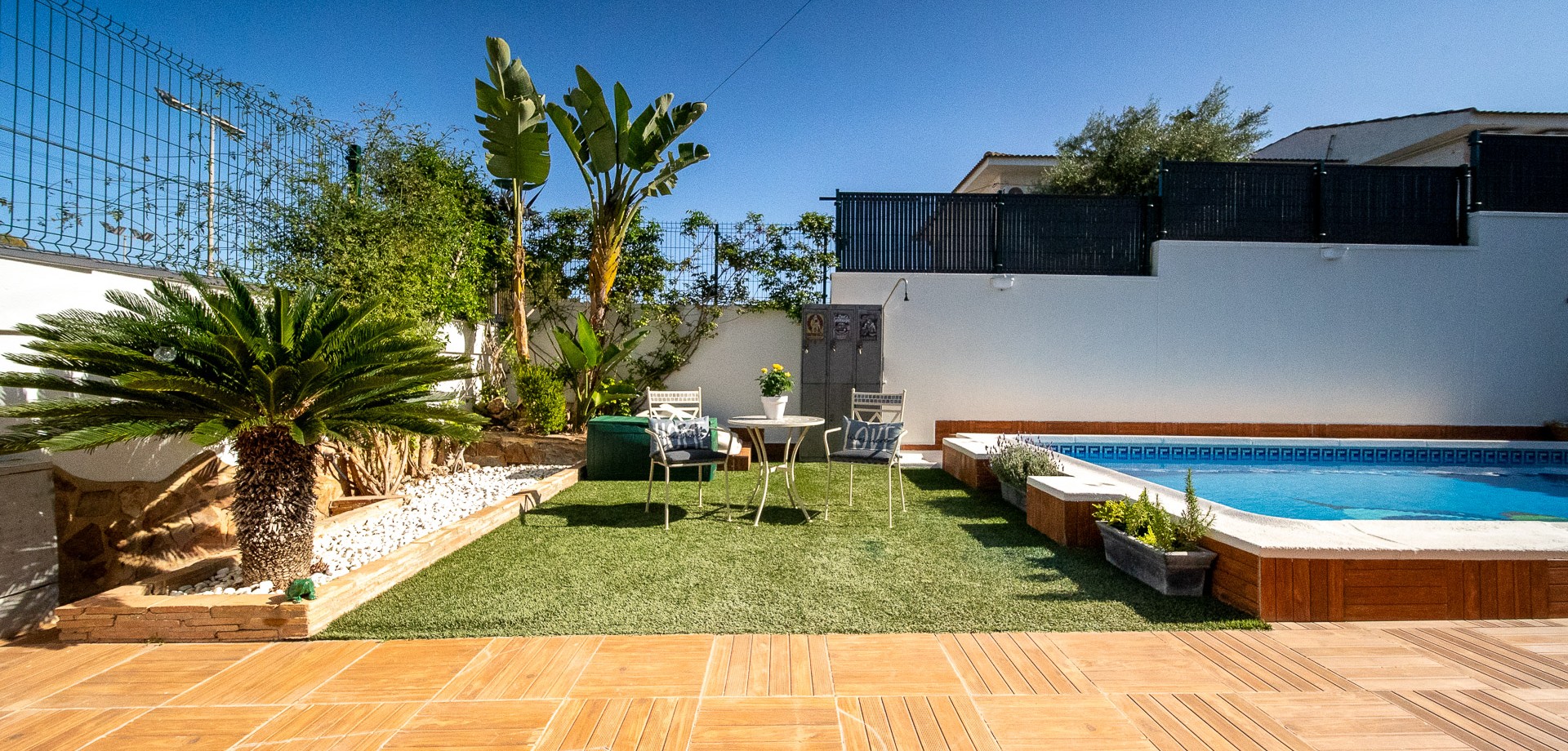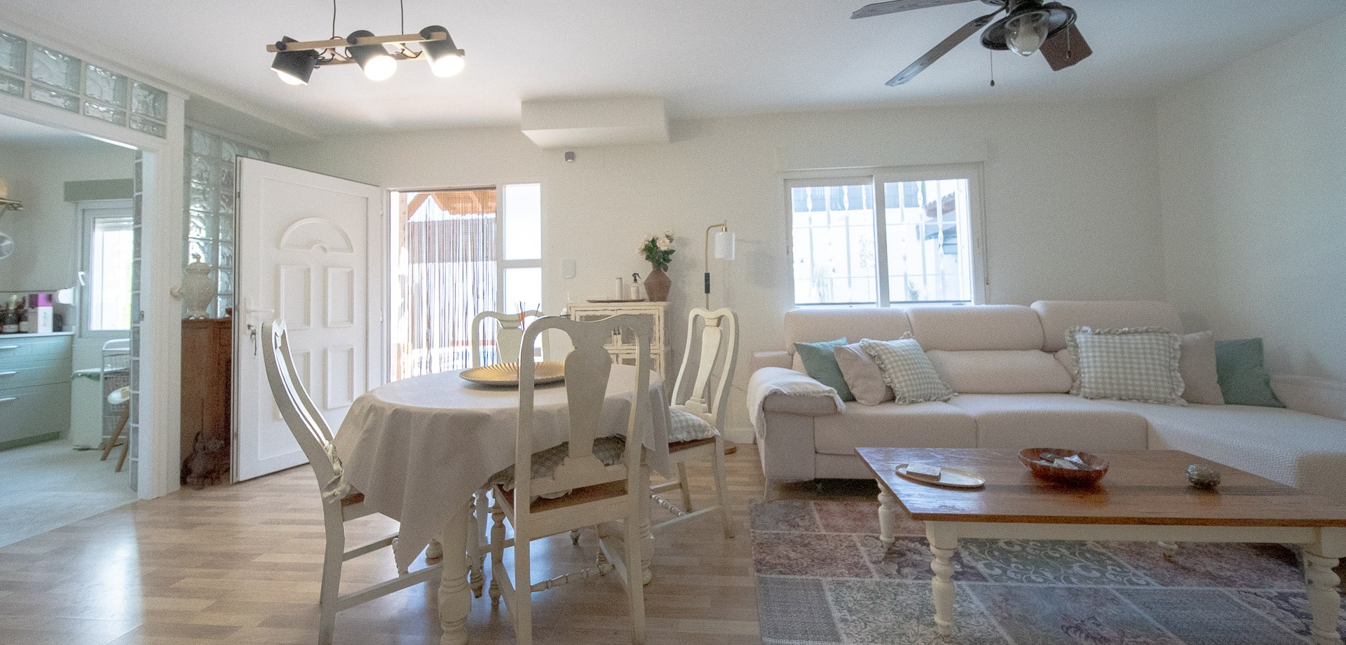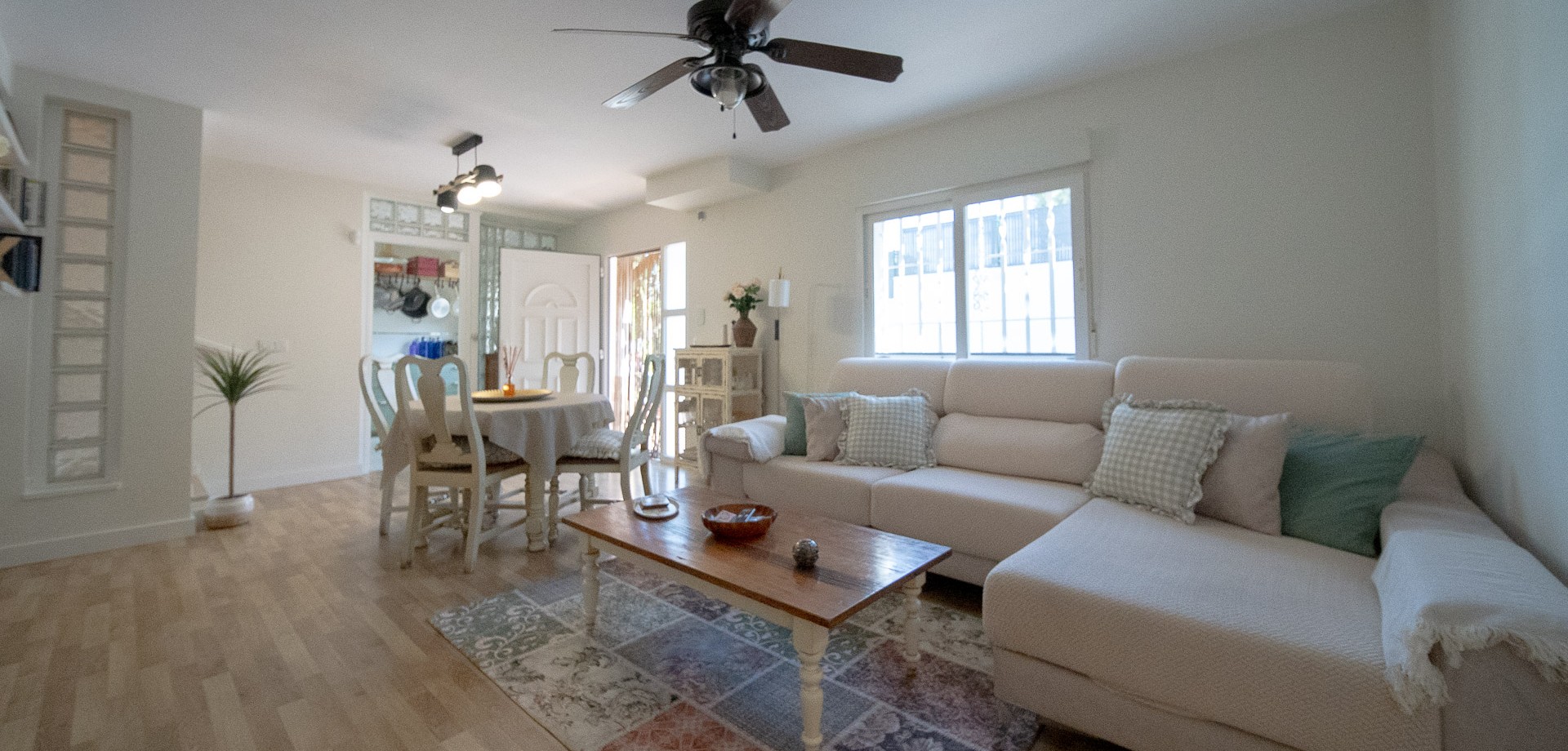 Semi-detached Villa with 4 Bedrooms in Los Balcones, Torrevieja. Semi-detached property located in one of Torrevieja’s most exclusive neighbourhoods: Los Balcones. The home offers 130 m² built over two floors. The ground floor includes a living-dining room, an independent kitchen, one bedroom and one bathroom. Upstairs, you'll find three bedrooms, one bathroom and a glazed terrace. It also features a 161 m² garden with a covered summer kitchen, a guest toilet, chill-out area and private pool. Prime location, right across from the Torrevieja Tennis Club, which offers tennis and padel courts, gym, swimming pool and a multi-purpose room. Within walking distance you’ll find bars, restaurants and shops. The Torrevieja University Hospital is less than five minutes away by car, and Zenia Boulevard shopping centre is just 10 minutes away. Key features: 4 bedrooms, 2 bathrooms and 1 guest toilet Independent kitchen Renovated Furnished Summer kitchen Chill-out area Private pool