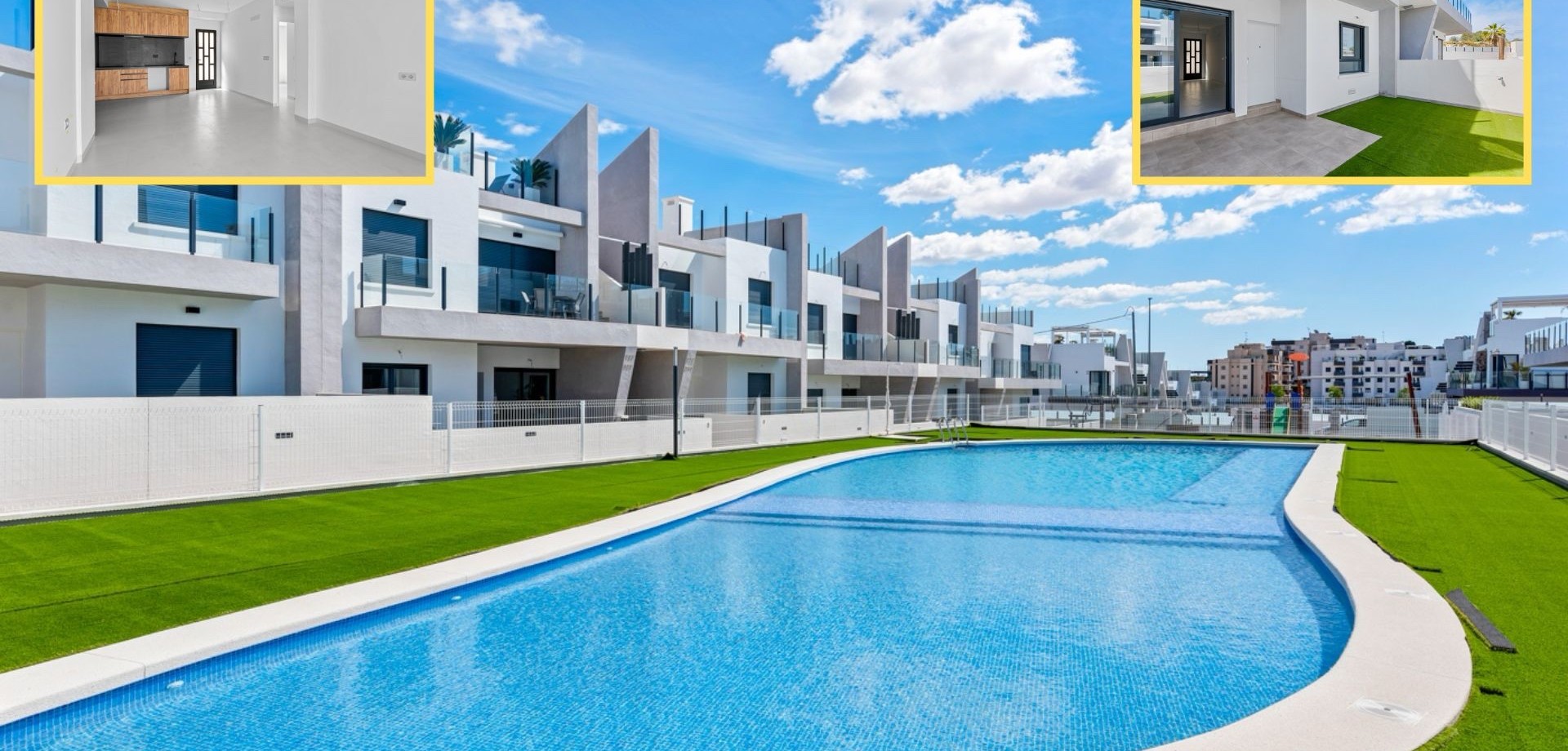 Discover this beautiful ground floor apartment in the new residential complex Saoco in the charming town of San Miguel de Salinas . With a living area of 65 m² and a total area of 115 m², the property offers the perfect combination of modern comfort and Mediterranean outdoor living. The apartment has 2 spacious bedrooms and 2 elegant bathrooms , making it ideal for permanent residence or for vacation. The open space of the living room and dining room connects seamlessly to the exterior space, providing natural light and a feeling of spaciousness. Benefit from two private terraces , one at the front and one at the back, perfect for sunbathing, dining al fresco or relaxing on the artificial grass . Residents have access to a large communal swimming pool surrounded by beautifully landscaped green areas where you can relax and enjoy the Spanish sun. Just minutes from the coast, San Miguel de Salinas offers a combination of traditional charm and modern comfort. Local shops, restaurants, golf courses and beaches are within easy reach. Whether you are looking for a holiday home, an investment opportunity or a new home in the sun, this apartment will meet all your expectations.