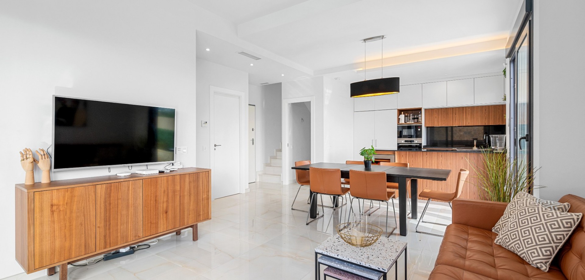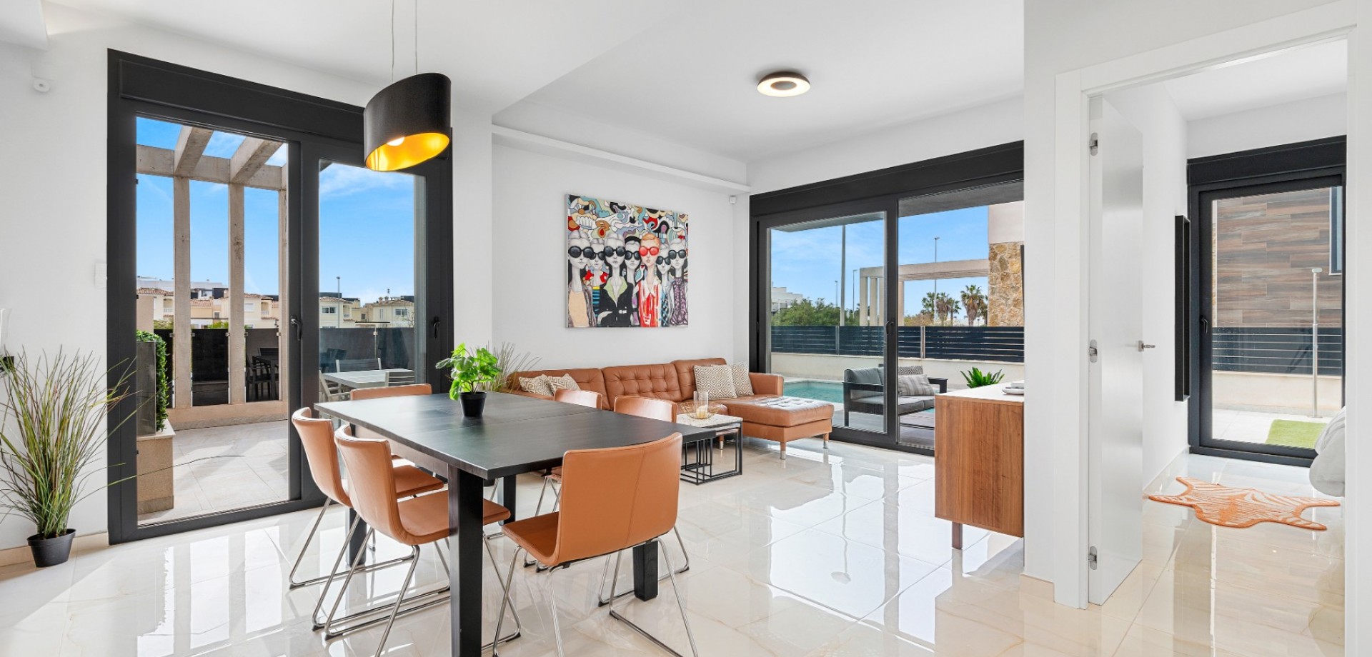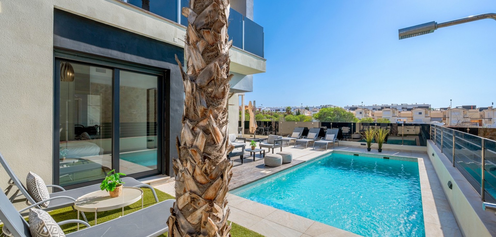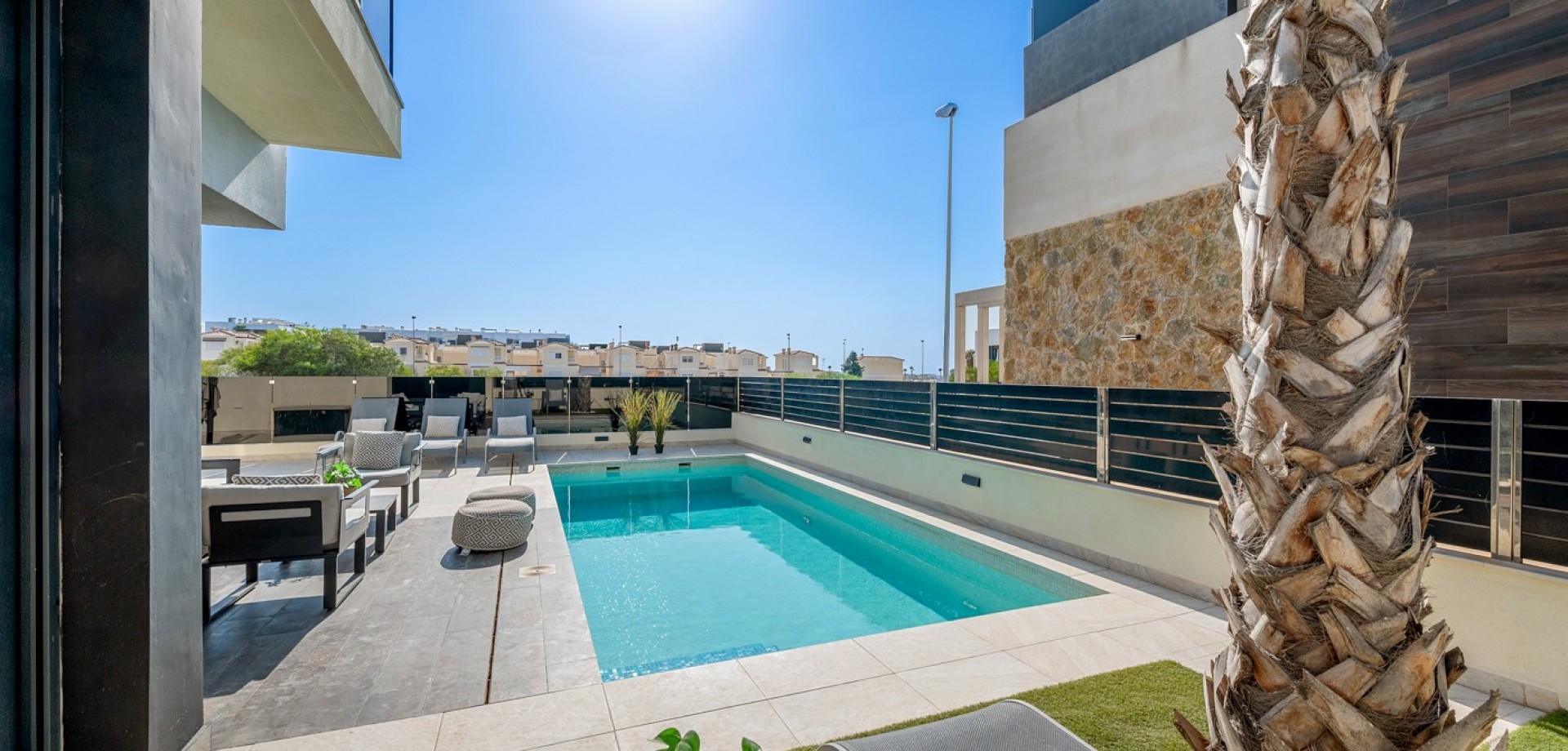 Exclusive 4-bedroom villa, ideally located in the highly sought-after area of Lomas de Cabo Roig - just moments from the beach, renowned golf courses, and a wide selection of local amenities.This stylish property boasts a sleek and spacious design, offering four generously proportioned bedrooms, each with its own en-suite bathroom and high ceilings. The villa also features a private swimming pool, a rooftop solarium with panoramic sea views, and a large basement that can be adapted for fitness, entertainment, or extra storage. Designed for open-plan living, it includes high-quality finishes, plenty of natural light, and generous outdoor space – making it an ideal choice for both permanent residence and luxury holiday living. Property Highlights ✔ 4 Bedrooms | 4 En-Suite Bathrooms ✔ Private Swimming Pool ✔ Rooftop Solarium with Sea Views ✔ Large Versatile Basement ✔ Walking Distance to Shops, Restaurants & Beaches Location – Lomas de Cabo Roig Lomas de Cabo Roig is one of the most desirable neighbourhoods on the Orihuela Costa, celebrated for its laid-back atmosphere, modern infrastructure, and close proximity to Blue Flag beaches. The area offers convenient access to international schools, prestigious golf courses, marinas, and a wide range of dining and shopping options – all within a short distance. Whether you're searching for a stylish coastal residence or a sound investment property with strong rental potential, this villa delivers the perfect combination of comfort, location, and refined living. Get in touch today to arrange a private viewing or receive more information about this exclusive opportunity.