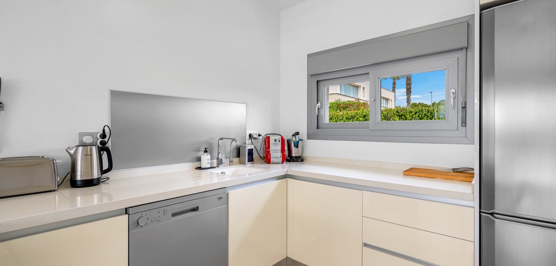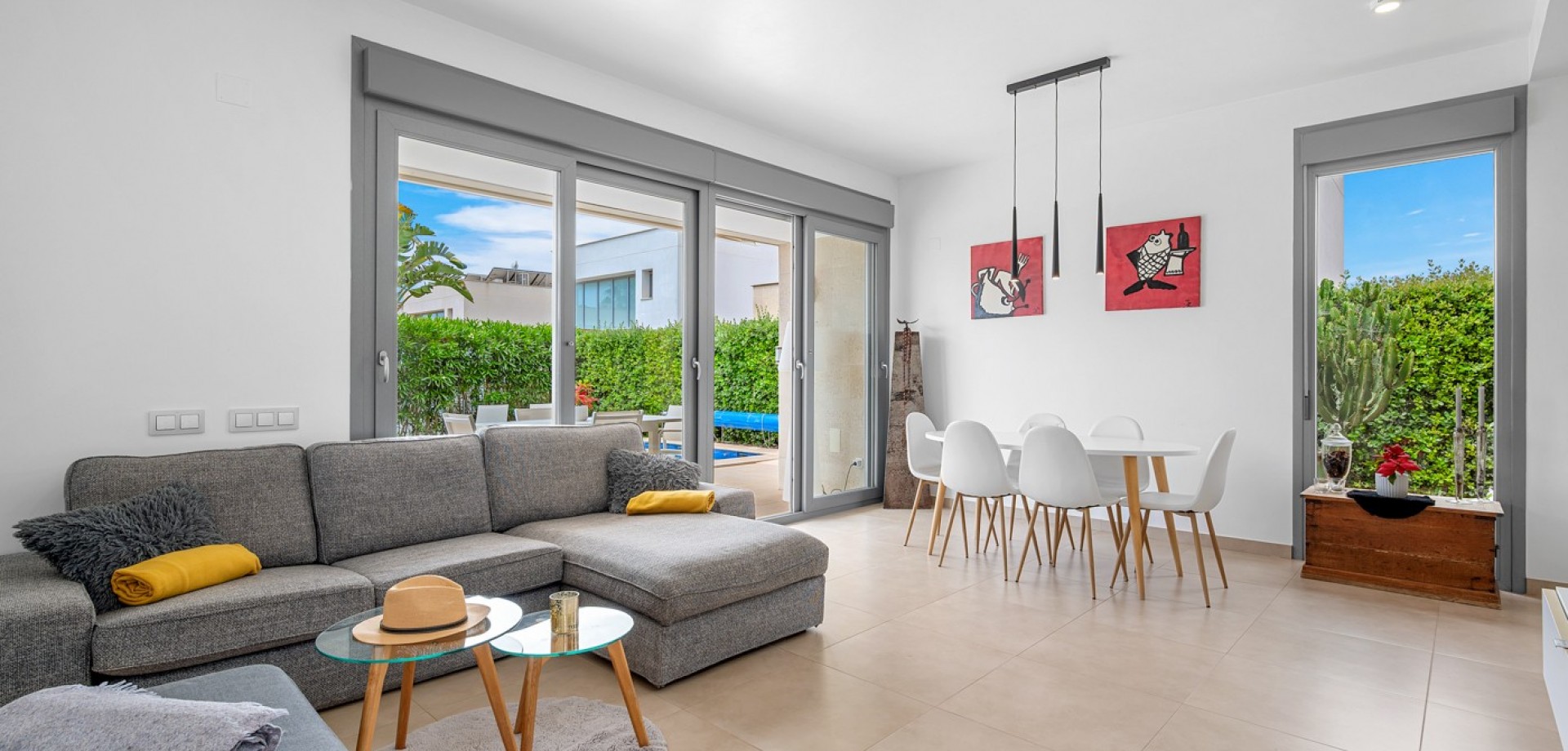 This recently refreshed villa offers everything you’re looking for in a comfortable and stylish home under the sun. The property features 3 spacious bedrooms and 2 modern bathrooms, one of which includes a separate laundry area. The bright and spacious living room flows seamlessly into the open kitchen, which is equipped with additional built-in cabinets along the entire wall – perfect for extra storage and a sleek finish. The entire interior has been recently repainted and regrouted, making the home move-in ready. Enjoy outdoor living all year round thanks to the heated private pool, surrounded by a beautifully landscaped garden with real grass and decorative plants. A high-quality 12m² wooden garden house provides extra storage or can serve as a hobby space. A unique feature of this home is the osmosis water system that provides purified water throughout the entire house – a real added value for comfort and health. In addition, all windows are extra secured for your peace of mind. The location is ideal: just a 5-minute walk to the golf course and the cozy clubhouse. Whether you're an avid golfer or simply looking for peace and luxury close to all amenities – this villa has it all.