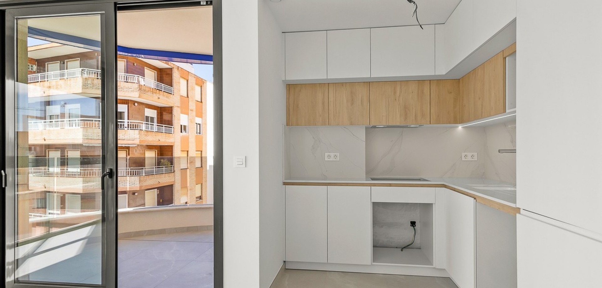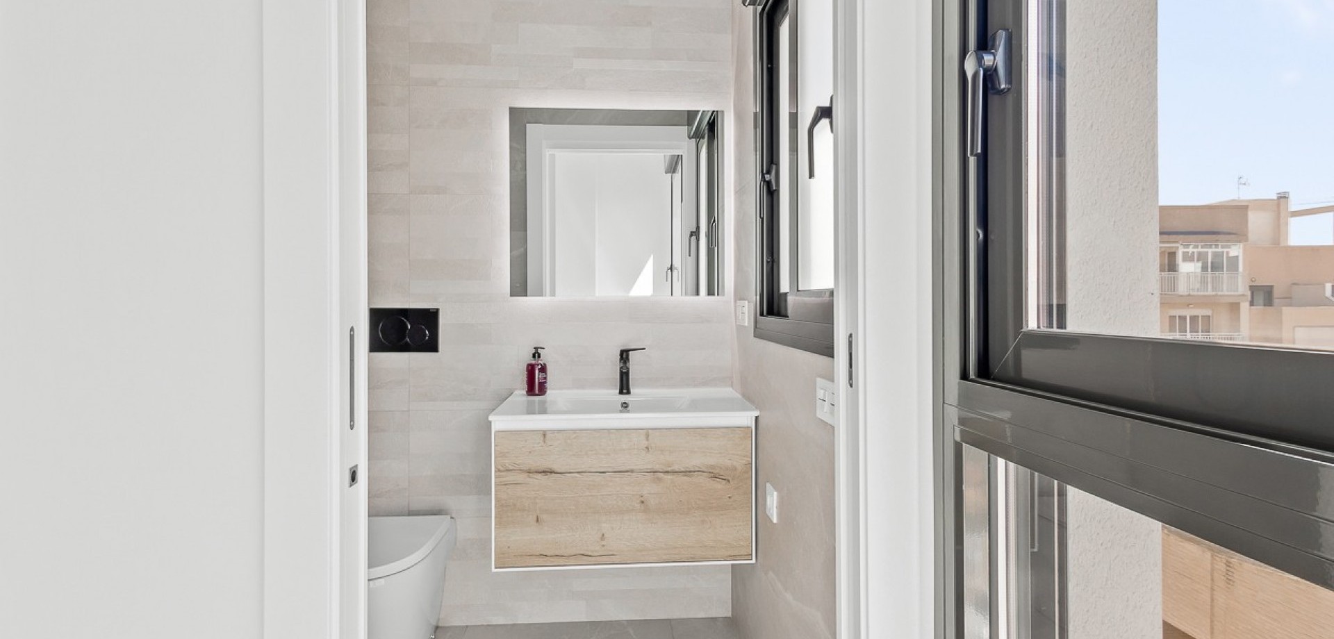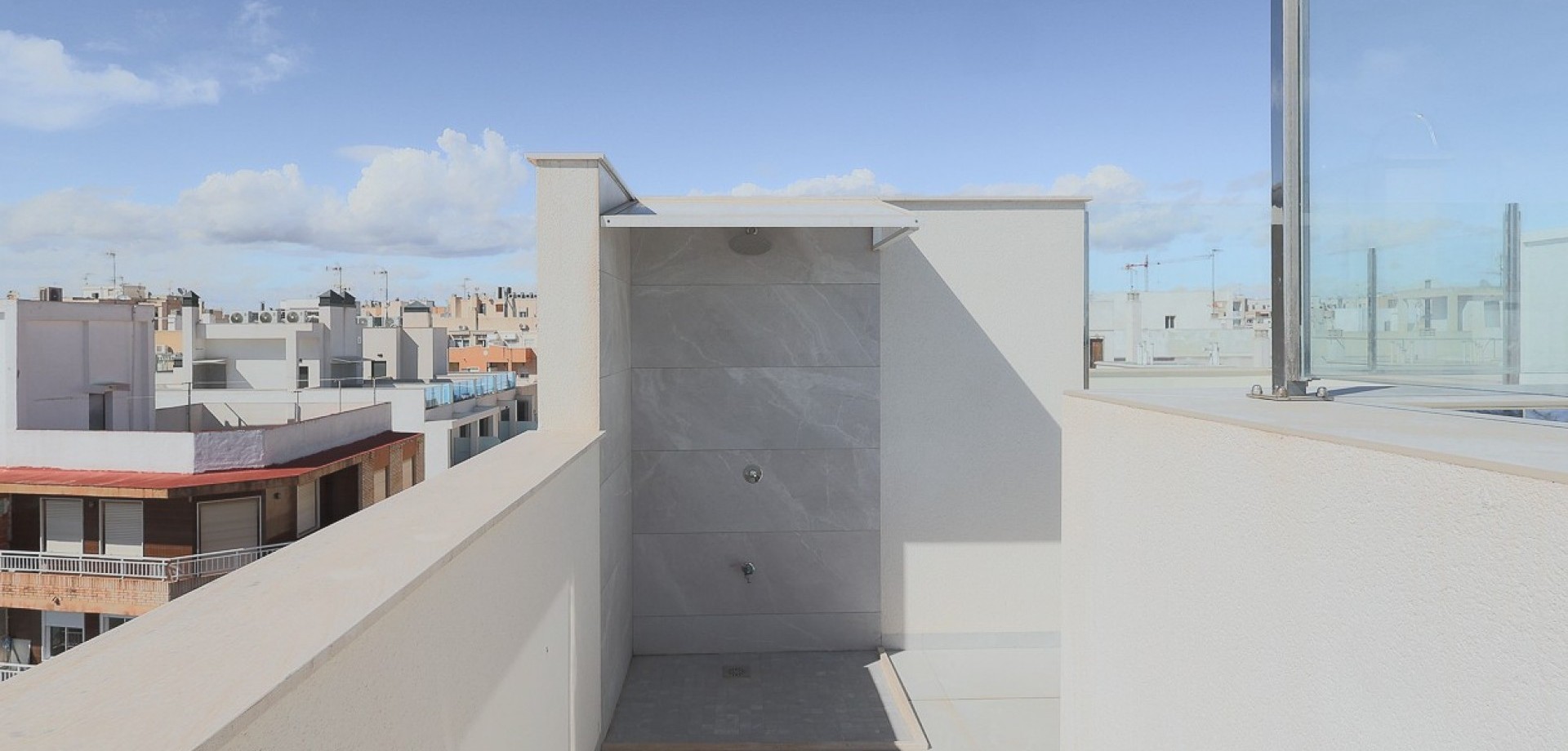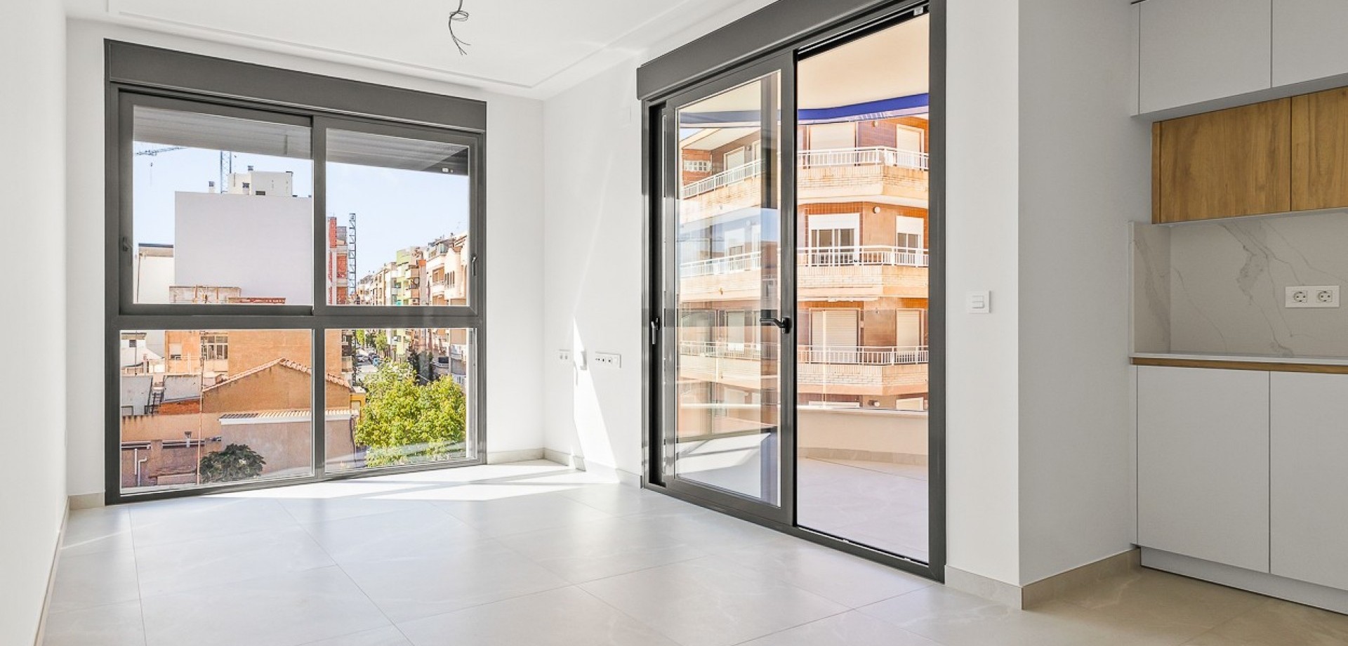 Step into contemporary luxury with this brand-new 2-bedroom, 2-bathroom apartment, never before occupied and awaiting its first residents. Situated on the 3rd floor and south-facing, this exquisite home is bathed in sunlight thanks to floor-to-ceiling windows throughout. The spacious main bedroom features an en-suite bathroom, while both street-facing bedrooms offer lovely urban views. The two full bathrooms are equipped with sleek, modern showers for ultimate relaxation. The open-plan kitchen seamlessly connects with the spacious lounge, creating an inviting and contemporary living area. From here, step onto the generous-sized balcony, where you can take in the vibrant urban surroundings and enjoy the fresh Mediterranean breeze. A standout feature of this development is the stunning rooftop community pool, where its residents can enjoy the mesmerising views of the Mediterranean Sea right over the roof tops - the perfect place to relax and take in the coastal beauty. Located at less than 200 meters from the sea, this property is situated at a short distance walk from Torrevieja’s most exciting La Lonja Commercial Centre. This major project will introduce a modern marina with over 600 berths, an extended boardwalk, and a lively mix of boutiques, restaurants, and cafés. A striking new lighthouse will provide sweeping views of the Mediterranean, making this a prime investment opportunity and a dream coastal retreat. With Torrevieja’s booming real estate market and the upcoming infrastructure developments, this is an outstanding investment opportunity. Book a viewing today and see why this property is a smart addition to your portfolio!