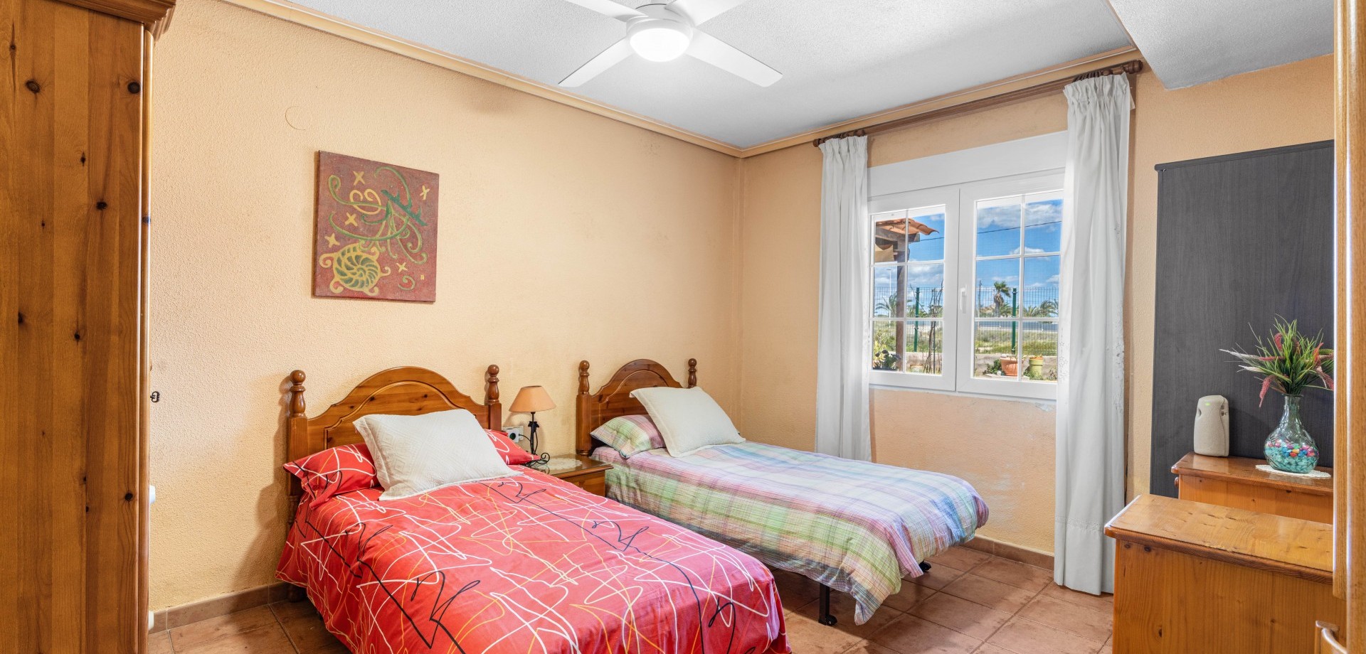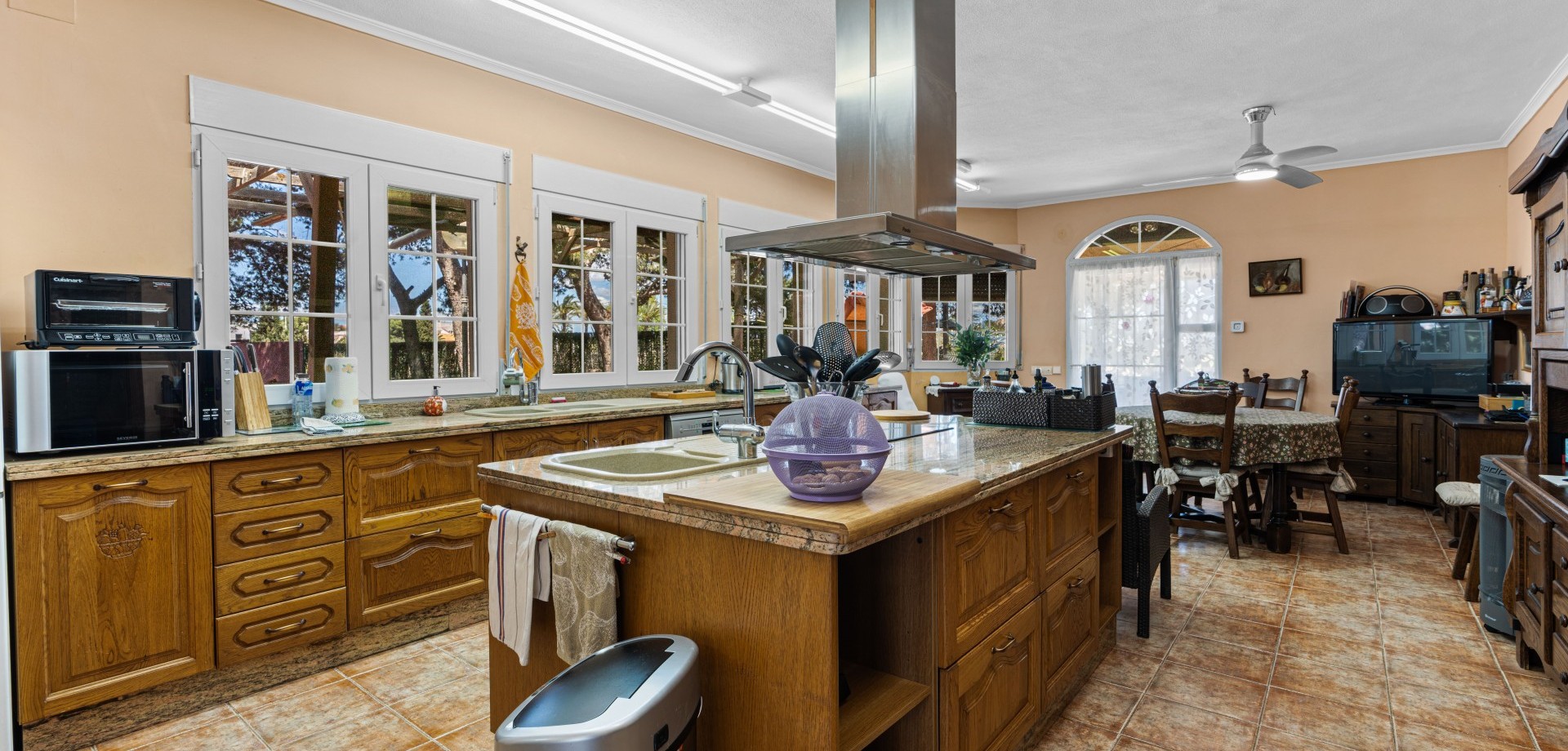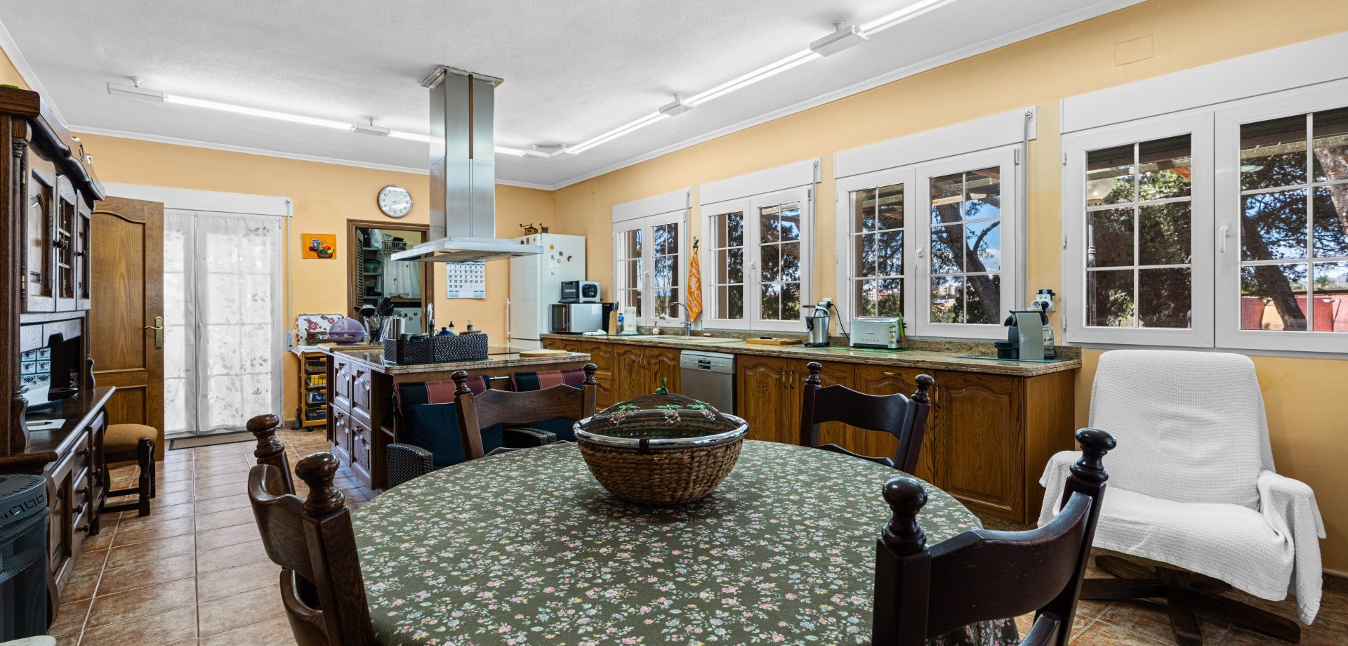 Costa Blanca Eiendom presents this magnificent detached villa in El Altet. Situated on a large plot of 1,700 m², this property offers a private and serene residential environment just 600 meters from the beach, close to the renowned Arenales del Sol and Urbanova beaches, and with excellent access to Alicante International Airport. The house, distributed over two floors, offers approximately 243 m² of built space. On the ground floor, there are two spacious living-dining rooms, one with a fireplace, a modern fully equipped independent kitchen with extractor hood and direct access to the exterior, four double bedrooms with built-in wardrobes, a laundry room, and two complete bathrooms. The upper floor features three additional bedrooms, a utility room, a home office, and two additional bathrooms. This level also provides access to a generous terrace, ideal for enjoying the Mediterranean climate year-round. The outdoor areas include two garages: a closed one with capacity for two vehicles and another covered one with capacity for six vehicles, as well as a large barbecue area and consolidated wooded gardens. The property is in excellent condition, equipped with air conditioning, aluminum exterior carpentry with double glazing, and security bars. El Altet is known for its peaceful surroundings, proximity to fine sandy beaches, and excellent service infrastructure, including shops, schools, public transport, and a varied gastronomic offering. Its strategic location allows residents to enjoy the tranquility of a residential area while being just minutes from Elche, Alicante, and the airport. Contact us for more information or join one of our no-obligation tours to visit this magnificent property.