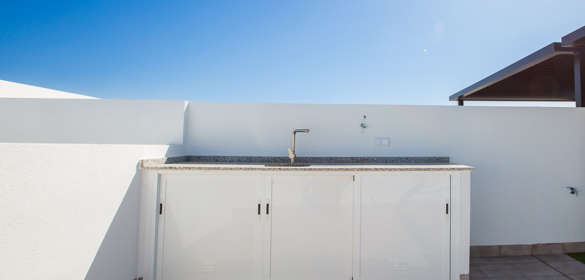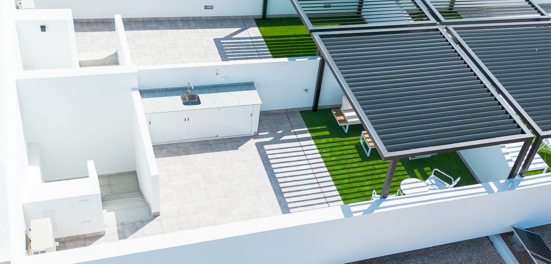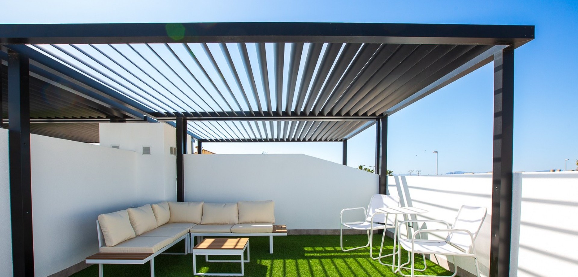 This stunning newly built villa (2024) is a perfect blend of modern architecture and Mediterranean lifestyle. Located in the peaceful town of Roldán, in the heart of Murcia, this property offers a high standard of living for those seeking comfort, privacy, and convenience in a warm, sunny climate. With 3 bedrooms and 2 stylish bathrooms, the villa provides a light-filled and functional interior layout. The open-plan living and dining area seamlessly connects to a sleek, fully fitted kitchen—ideal for family life or entertaining guests. Quality materials and finishes are evident throughout the home, from ceramic flooring to double-glazed windows and energy-efficient systems. Step outside into your private garden, where a sparkling pool awaits—perfect for refreshing dips on hot summer days. Upstairs, the highlight of the home is the expansive 39 m² rooftop solarium, complete with a pergola and a fully equipped outdoor kitchen, offering a spectacular setting for dining, relaxing, or enjoying the region’s 300+ days of sunshine per year. The property sits on a 155 m² private plot and includes gated off-street parking, making it as practical as it is beautiful. Key Features: * 3 Double Bedrooms with natural light and built-in wardrobes * 2 Fully Fitted Bathrooms with contemporary design * Private Pool with surrounding terrace area * Large Rooftop Solarium (39 m²) with pergola and outdoor kitchen * Private Driveway within the gated plot * Low-maintenance Garden with space for outdoor seating and sun loungers * New Build (2024) – Built with modern construction standards and energy-efficient materials * Air conditioning and double glazing throughout * Sold fully furnished About the Location – Roldán, Murcia: Roldán is a charming and secure town in the Murcia region of southeastern Spain, known for its laid-back atmosphere, sunny climate, and access to world-class golf and coastal attractions. The villa is ideally located just a few minutes from the town center, where you’ll find a variety of shops, restaurants, cafés, banks, and essential services. Nature lovers and beachgoers will appreciate the short 20-minute drive to the beautiful beaches of the Costa Cálida, while golfers will enjoy easy access to several renowned golf resorts, including La Torre Golf Resort and Terraza de la Torre. The property also benefits from excellent transport links: * Murcia International Airport: only 15 minutes away * Access to the AP-7 and RM-19 motorways for easy travel to Cartagena, Murcia City, and Alicante * Close to shopping centers, healthcare services, and international schools Whether you’re seeking a permanent residence, holiday home, or a high-potential rental investment, this villa ticks all the boxes.