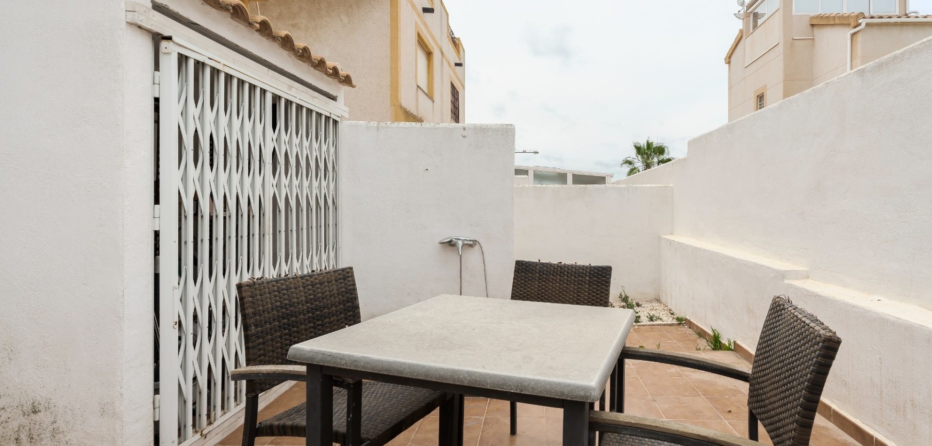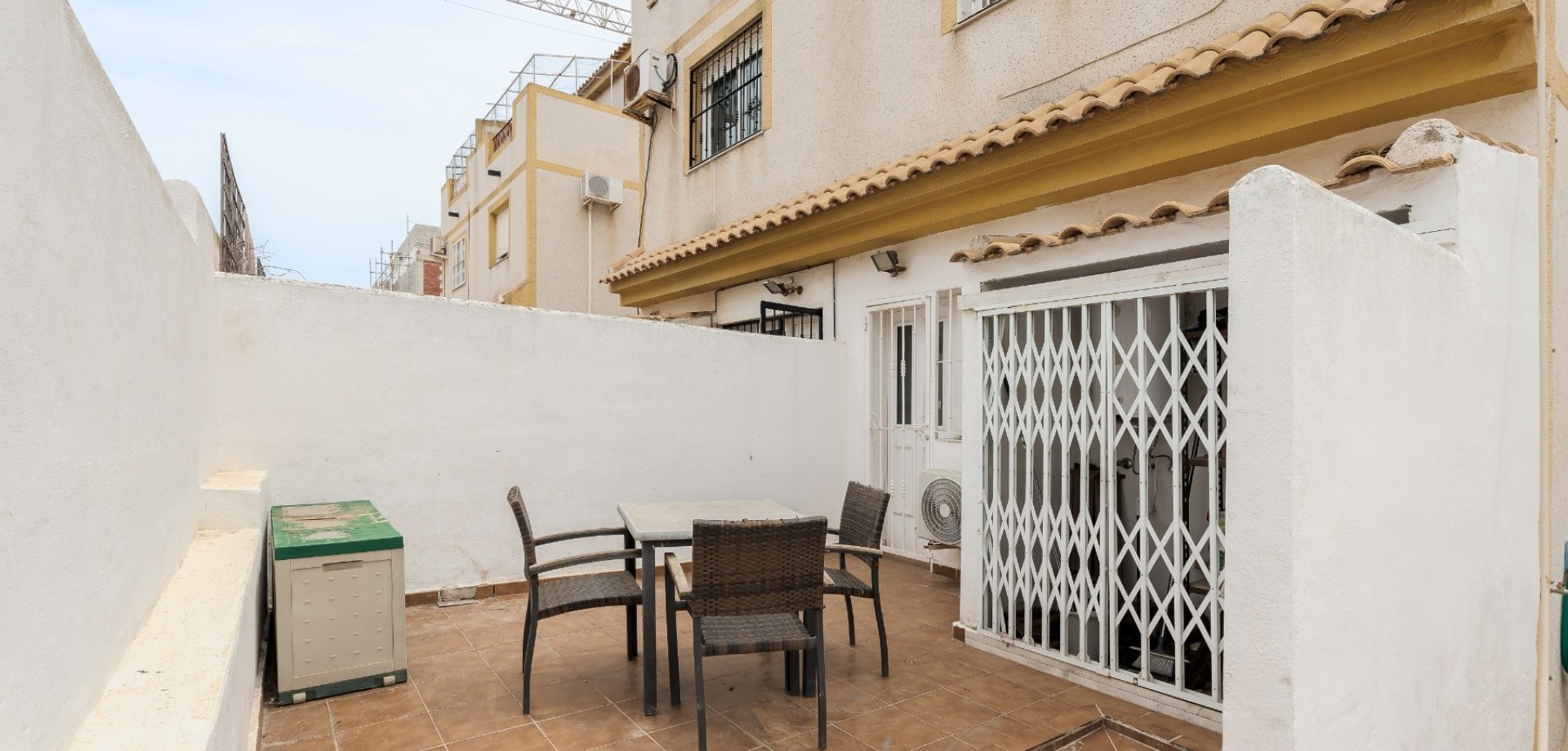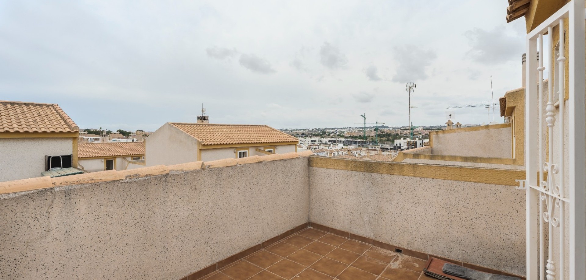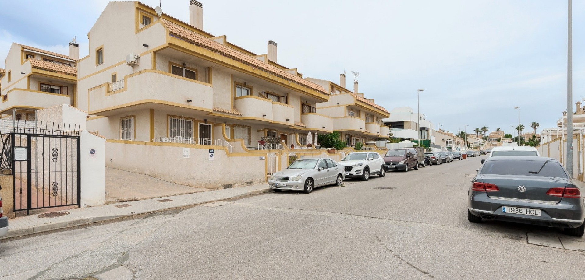 Located in the sought-after area of Los Altos on the Costa Blanca South, this beautifully presented south-facing 3-bedroom, 3-bathroom semidetached villa offers the perfect blend of comfort, space, and convenience. Situated within a secure gated urbanisation, the property is just a 5-minute walk to local supermarkets, the JYSK furniture store, and a range of café bars. The renowned La Zenia Boulevard shopping centre is only a short drive away, with several stunning beaches and top golf courses reachable in around 10 minutes. Set across three levels, this bright and spacious home is ideal for permanent living or as a holiday retreat. The ground floor features a welcoming open-plan living and dining area with air conditioning and a charming feature fireplace. The separate fitted kitchen includes modern appliances and leads to a useful utility area. A guest cloakroom completes this level. On the first floor, you’ll find two generously sized double bedrooms with built-in wardrobes and air conditioning, one of which opens onto a private terrace with lovely views. A full family bathroom with a bath and shower serves this floor. The top level hosts a spacious third double bedroom with an en-suite shower room and two private terraces—perfect for soaking up the sun or enjoying peaceful evenings. Outside, the home boasts a low-maintenance tiled garden, offering multiple terraced areas for relaxing, dining, or entertaining. Residents also benefit from access to a well-maintained communal pool, ideal for cooling off on warm days. This home is perfectly positioned to enjoy all the benefits of Costa Blanca living, with amenities, leisure, and lifestyle all on your doorstep.