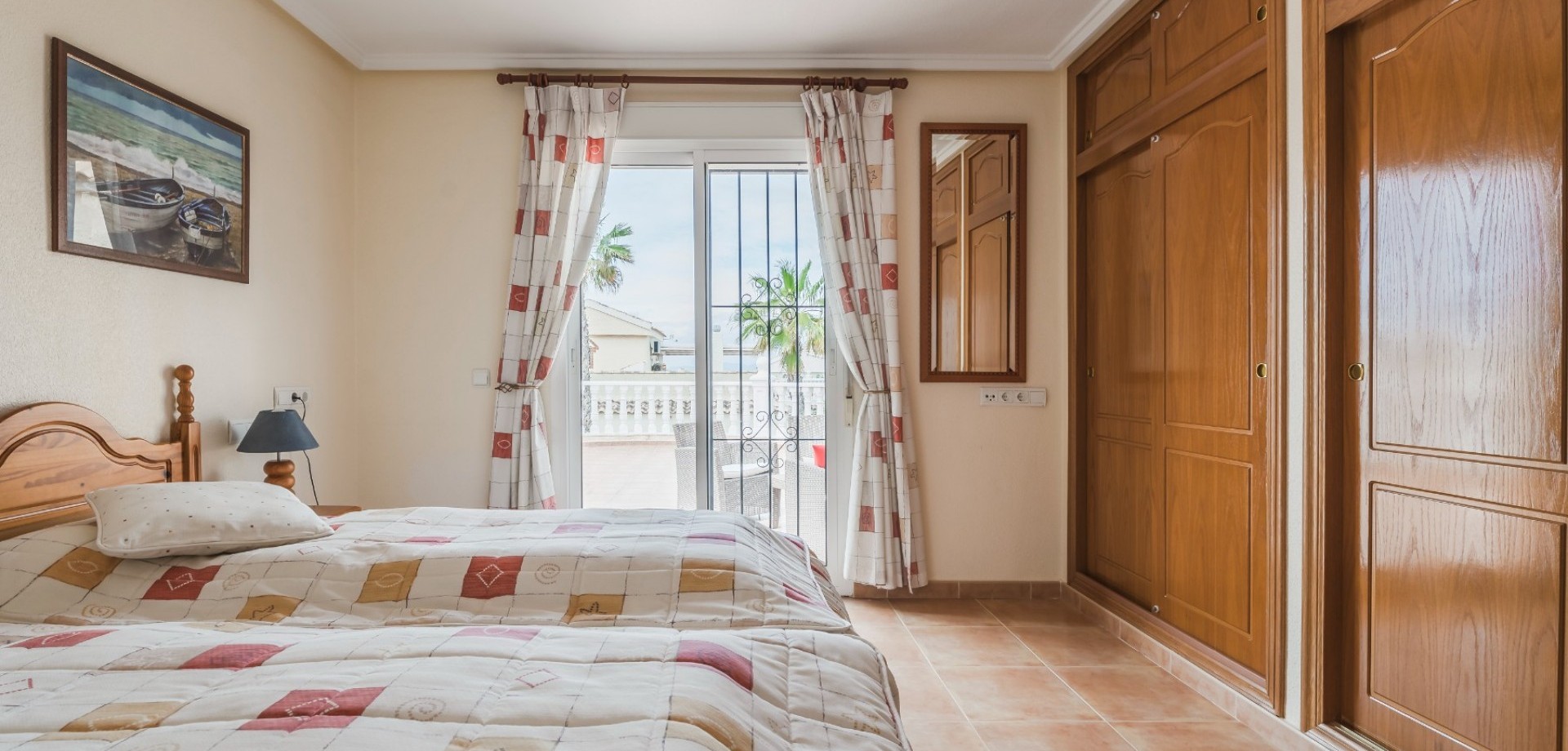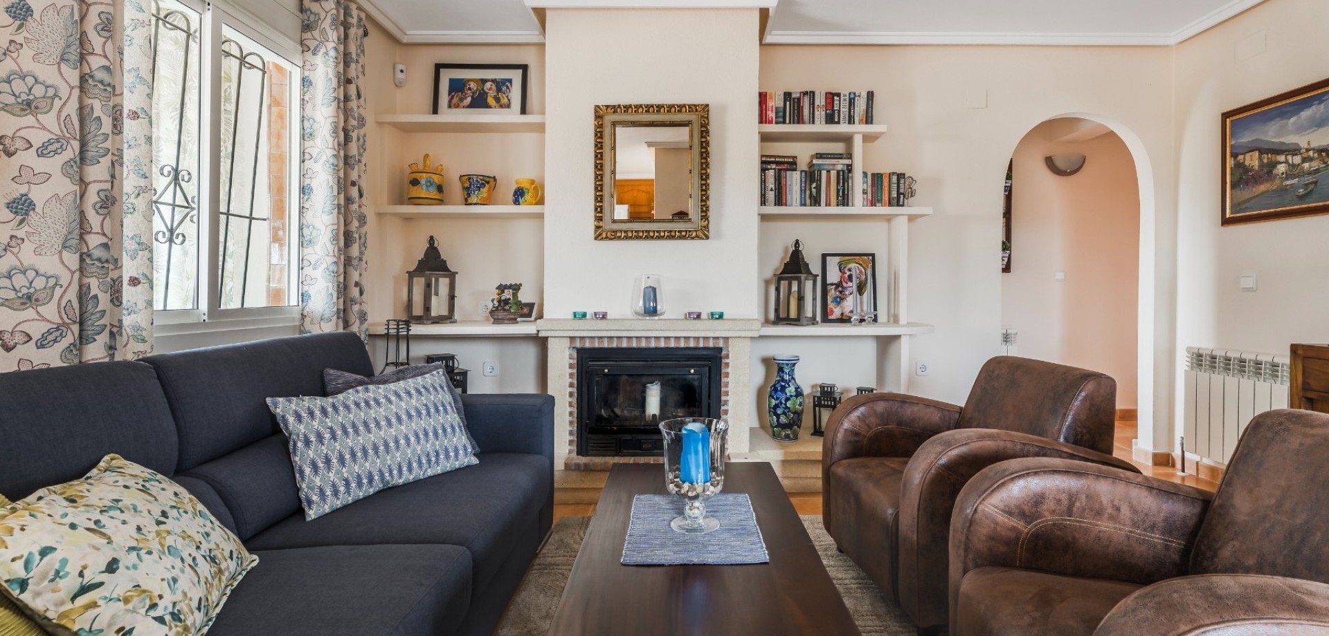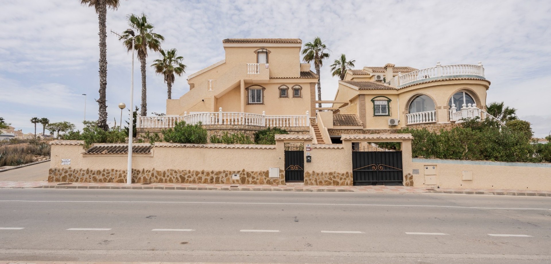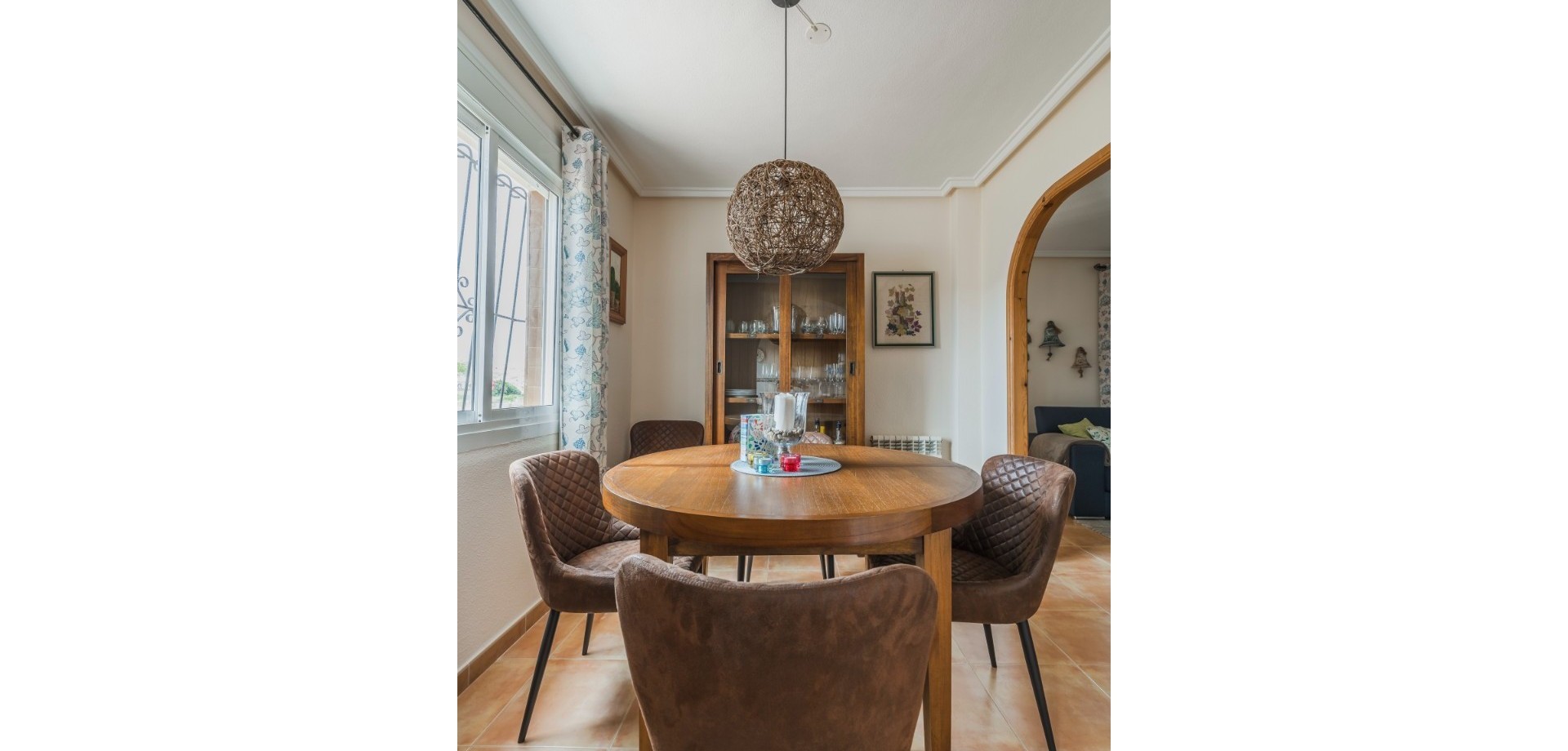 Costa Blanca Eiendom presents this spacious detached villa situated on a desirable corner plot in the heart of Gran Alacant, just a short walk from the sea. Combining privacy, comfort, and generous outdoor space, it’s ideal for families or anyone seeking a relaxed Mediterranean lifestyle close to all amenities. Upon entering the plot, you're welcomed by a wide open area, a generous private swimming pool, and a built-in outdoor kitchen with gas barbecue. You can walk all the way around the villa, with every corner thoughtfully arranged as a seating area, dining space, or practical storage. The outdoor space features plenty of greenery, natural palm trees, and carefully designed lighting. Key Features Entrance Area: The main entrance leads up a few steps to a bright glazed terrace (wintergarden), which serves as a cozy winter lounge or a sun-filled entryway year-round. Stylish Living Room: This classically furnished and well-maintained living room is spacious and filled with natural light. It features a built-in wood-burning fireplace and connects openly with the dining area and kitchen. The furniture is in immaculate condition, showing no signs of wear, and the atmosphere is both elegant and welcoming. Kitchen: Fully equipped with quality appliances, including a washing machine, dishwasher, fridge, oven, and microwave. The kitchen offers plenty of counter space, along with ample cabinetry for storage, and has direct access to the outdoor area. 3 Spacious Bedrooms and 3 Private Bathrooms Bedroom 1 (Ground Floor – Master): Features a double bed, a ceiling fan, and a walk-through dressing area with built-in wardrobes, leading to a private en-suite bathroom with a bathtub. Bedroom 2 (Ground Floor): Features twin bed setup, full wall of wardrobes, and en-suite bathroom with a shower. Bedroom 3 (Upper Floor – Guest Suite): Has a private entrance and features a double bed with access to an en-suite bathroom with a bathtub. From the room, you can step out onto a large rounded terrace with views of the mountains and Clot de Galvany. Parking & Storage: The villa includes a spacious private garage with a driveway, offering secure parking and additional room for storage. Outside, you’ll also find several enclosed storage units—ideal for keeping bicycles, garden tools, or outdoor furniture neatly organized. Community Features: In addition to the private pool, residents also have access to a large communal swimming pool, available exclusively to homeowners in the area. This shared space is surrounded by grass, palm trees, and natural vegetation—offering a peaceful and refreshing setting to enjoy with neighbors or guests. Other Features: Central heating throughout the villa Two gated entrances to the property Sold furnished and in move-in condition Location Highlights: Prime location, just a 3-minute drive to the sandy Carabassi Beach, a Blue Flag beach known for its crystal-clear waters, natural dunes, and wide coastline Only 8 minutes by car to Alicante Airport Close to supermarkets, restaurants, cafés, and essential daily services About Gran Alacant: Incredible Surroundings: Gran Alacant offers a stunning natural setting with Blue Flag beaches like Carabassi, known for its clean waters, golden sand, and protected dunes. A scenic seaside promenade stretches for around 5 km, perfect for walking, jogging, or enjoying the views—just minutes from the Mediterranean Sea. Convenient Shopping and Entertainment: The area has everything you need: supermarkets, restaurants, cafés, and a local market. Alicante city is only 20 minutes away by car, and Santa Pola is even closer, offering more shops, services, and dining options. A Vibrant and Relaxing Coastal Community: This international community is well-connected, peaceful, and surrounded by nature. From nearby Santa Pola, you can also take a boat to the island of Tabarca—a great spot for day trips and snorkeling. Don’t miss your chance to view this wonderful home!